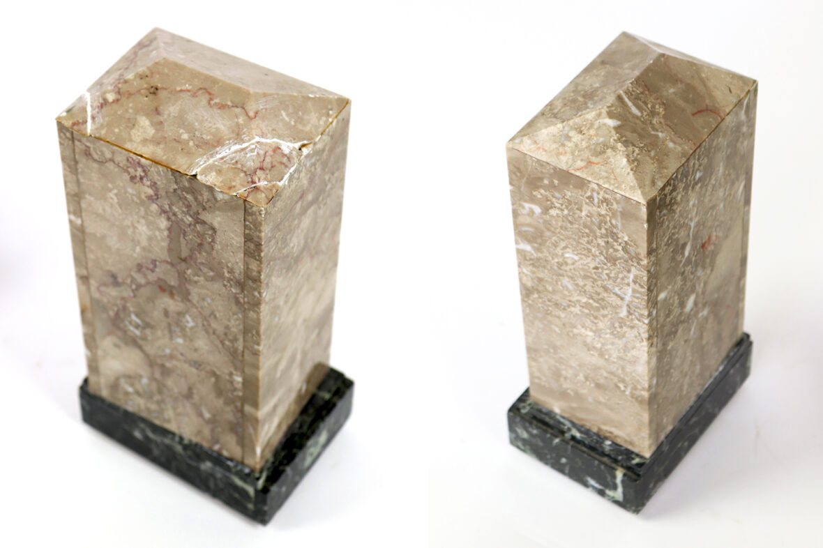 Haut. : 35,5 cm et 23 cm – Larg. : 24,5 et 11,5 cm – Prof. : 11,7 et 8,3 cm