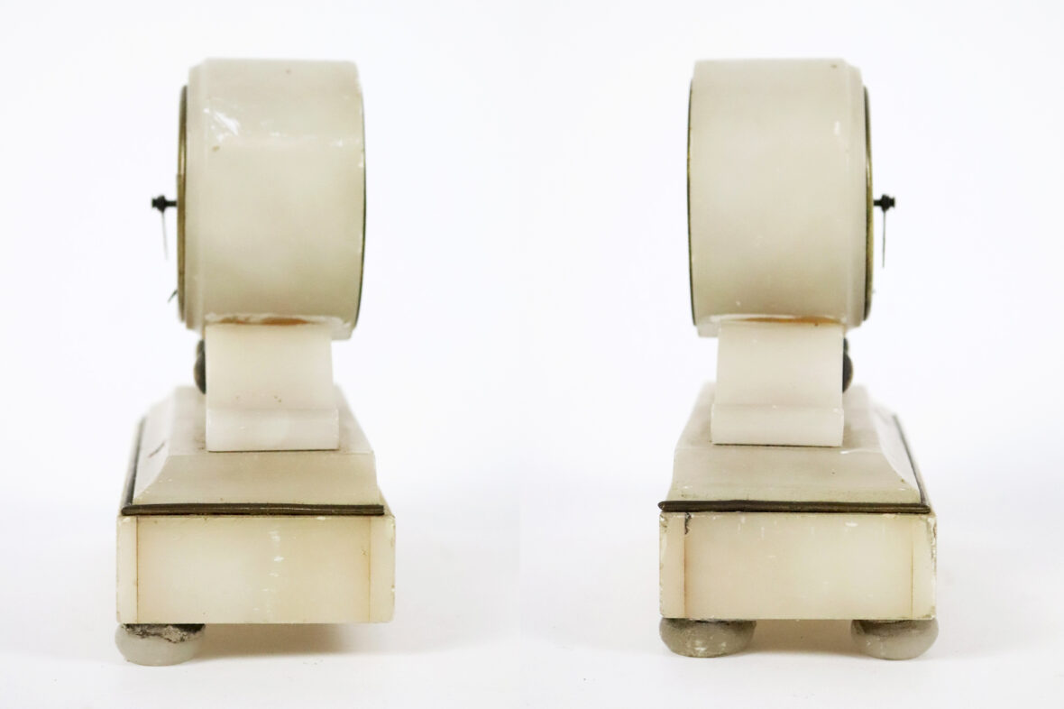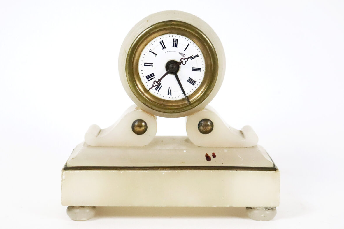 (Manque un pied au socle de la pendule).