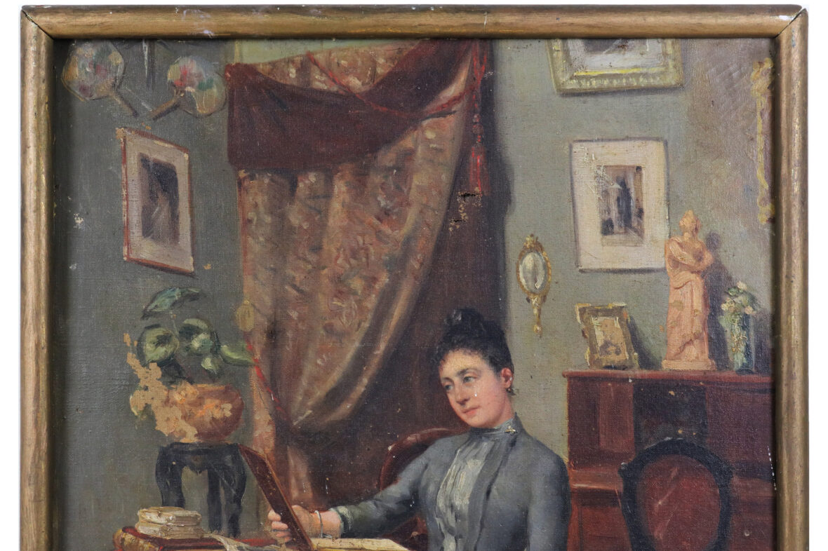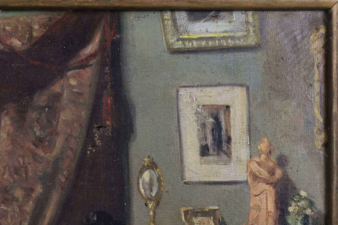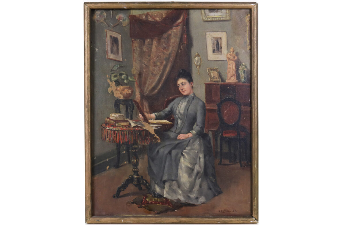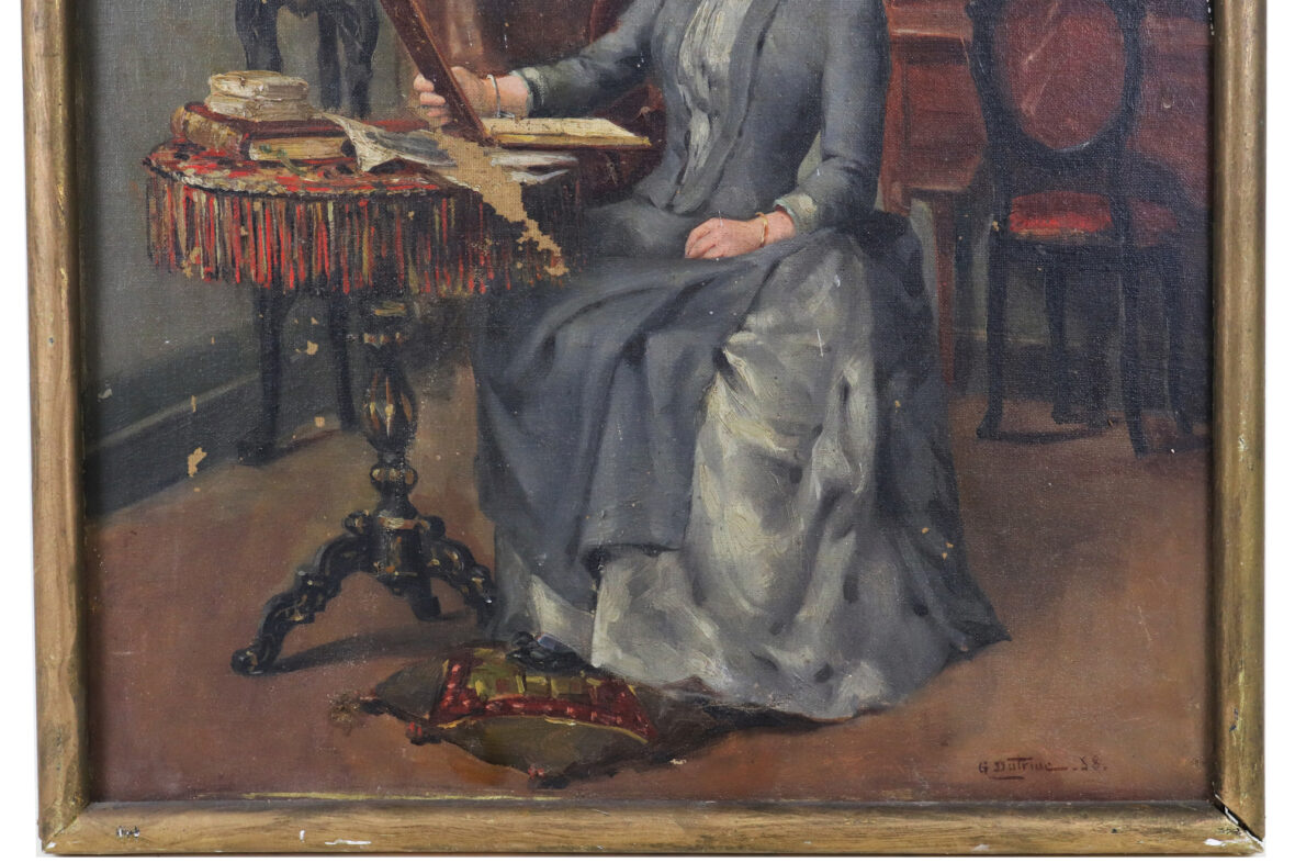 Georges DUTRIAC (1866-1958) Portrait de femme dans son intérieur Huile sur toile….