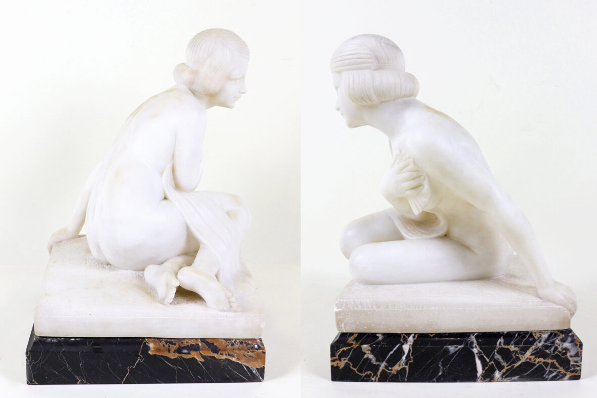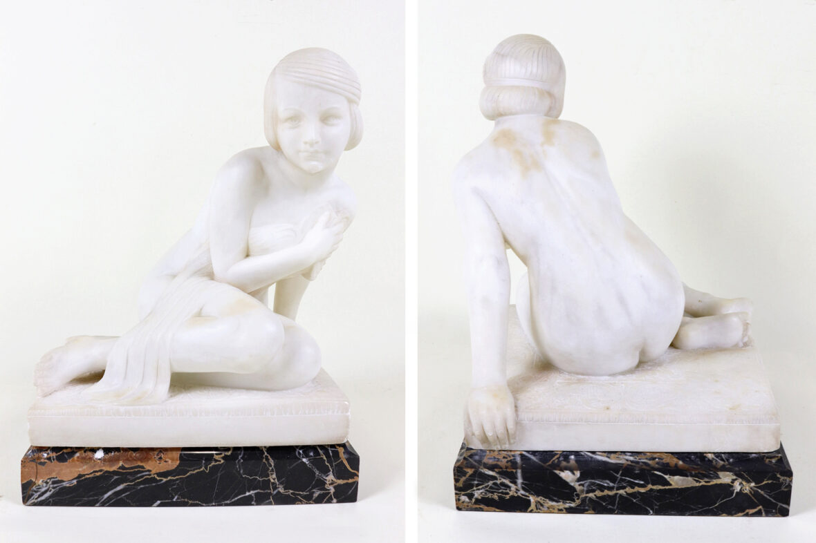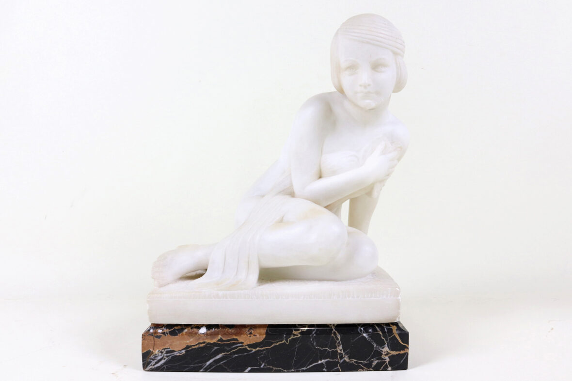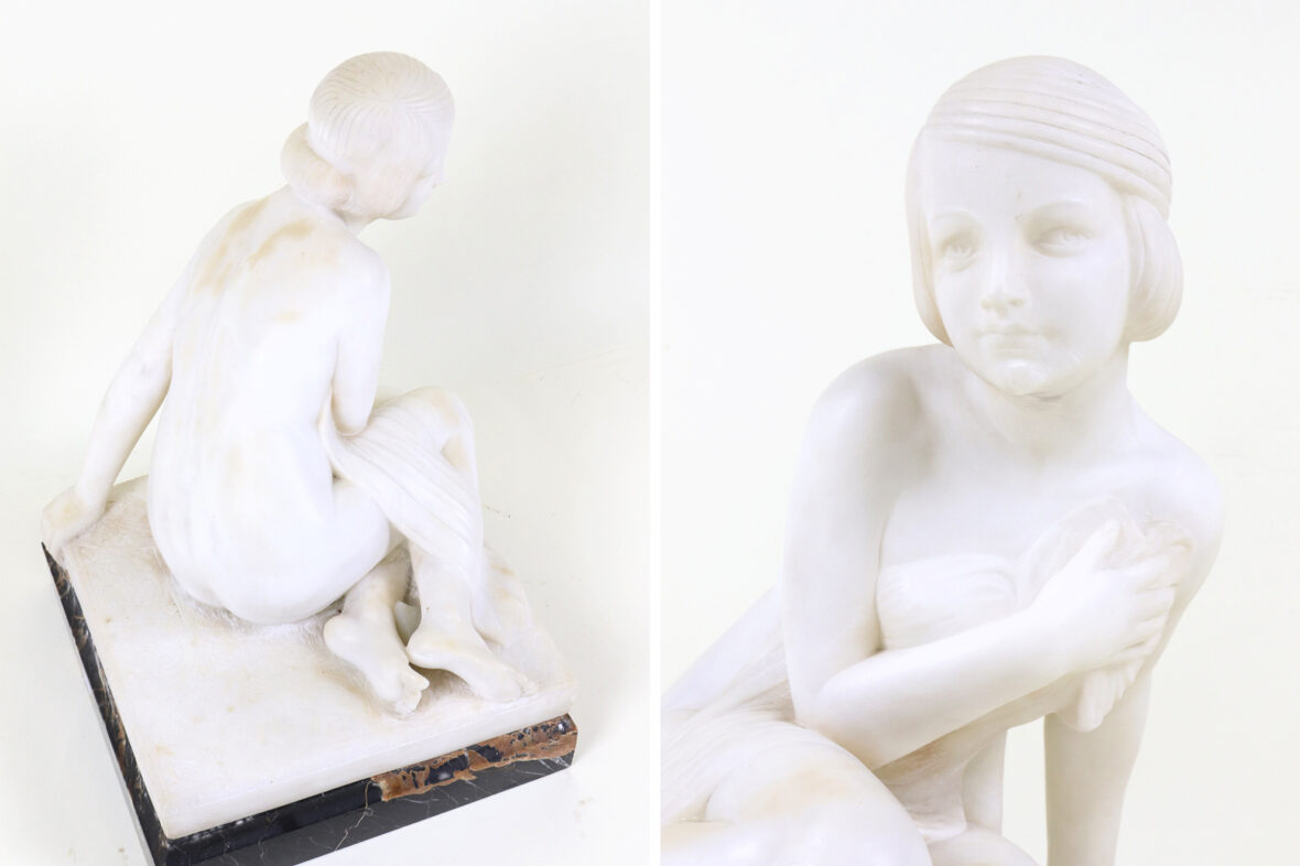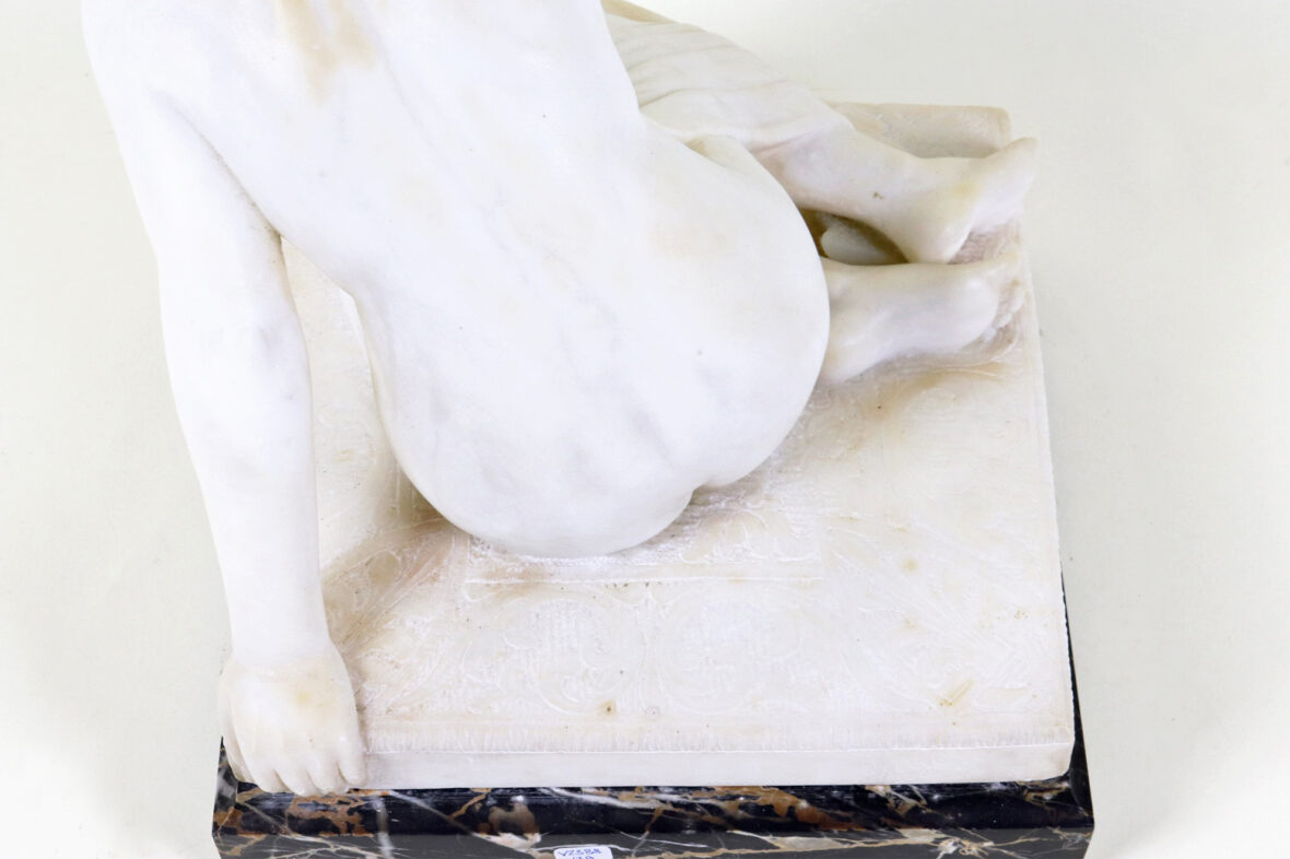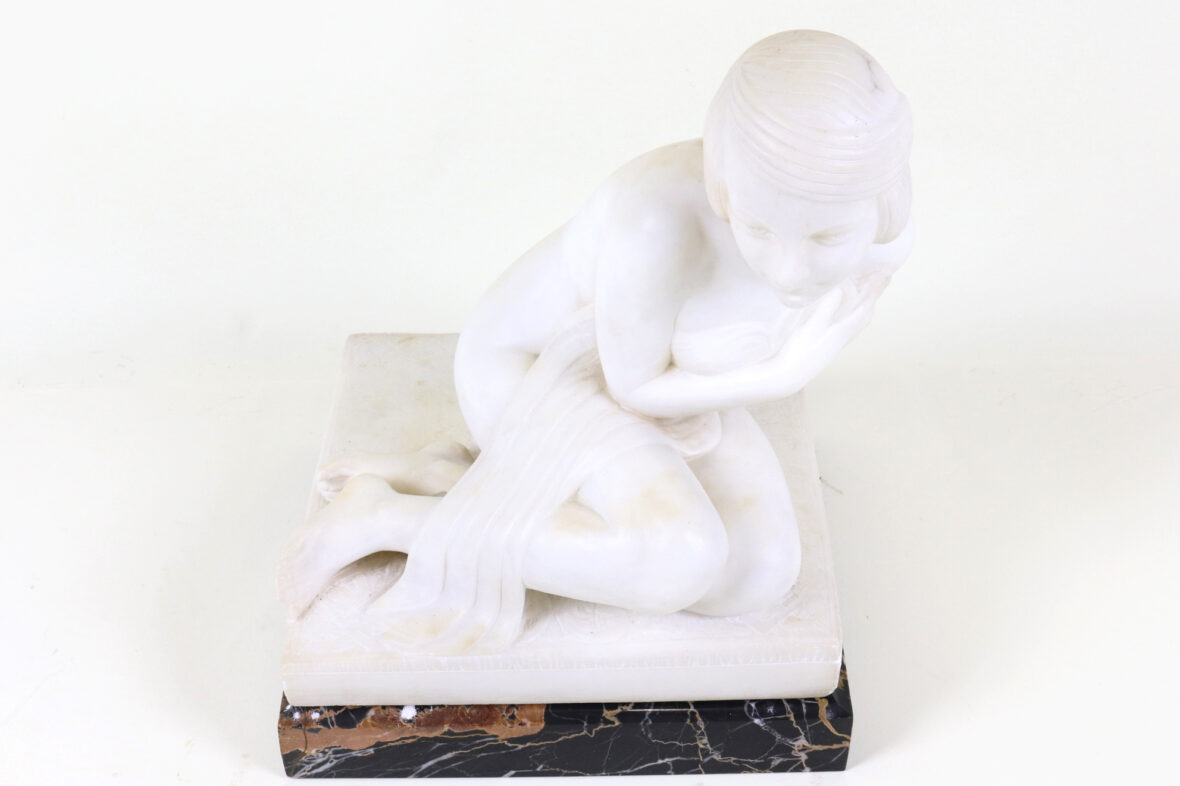Sculpture en marbre blanc sur un socle en marbre brèche.