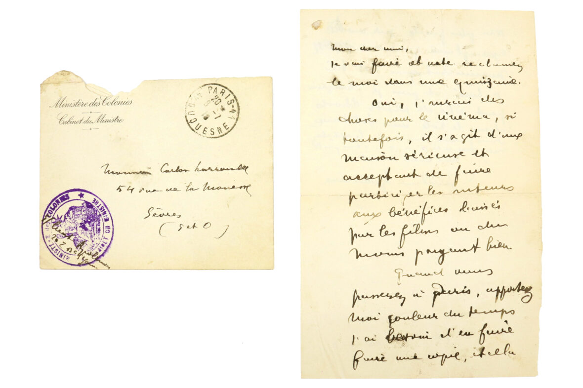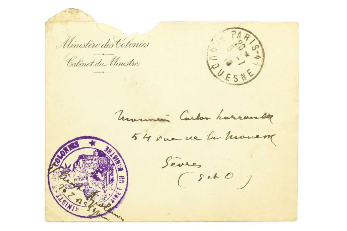 Enveloppe autographe avec cachet et en-tête du ministères des Colonies.