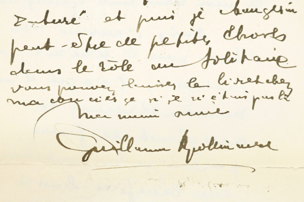 Guillaume APOLLINAIRE Lettre autographe signée à Carlos Larronde. Une page ½ in-8°….