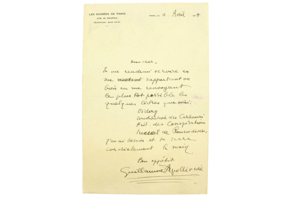 Apollinaire réclame ses livres.