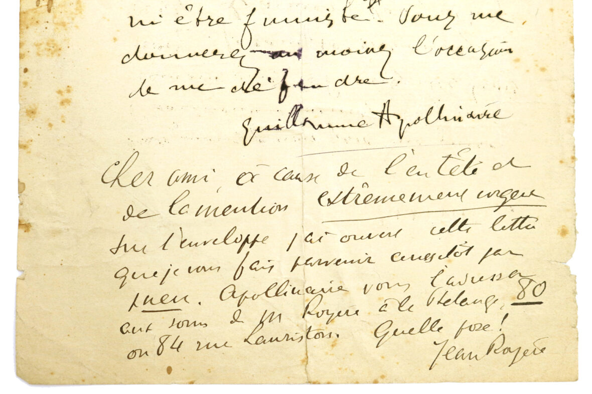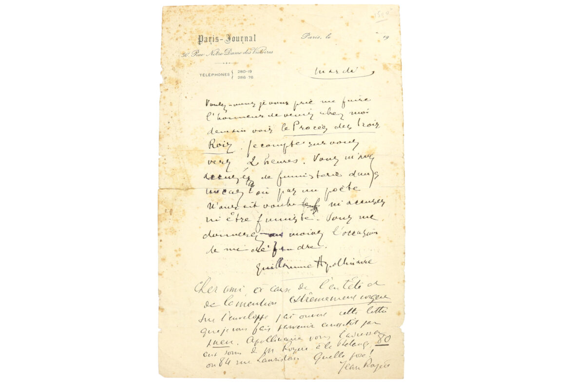 Apollinaire invite son correspondant à venir le lendemain chez lui voir le Procès des trois rois. Il compte sur lui : Vous m’avez accusé de fumisterie dans un cas où pas un poète n’aurait voulu ni accuser ni être un fumiste. Vous me donnerez au moins l’occasion de me défendre.
