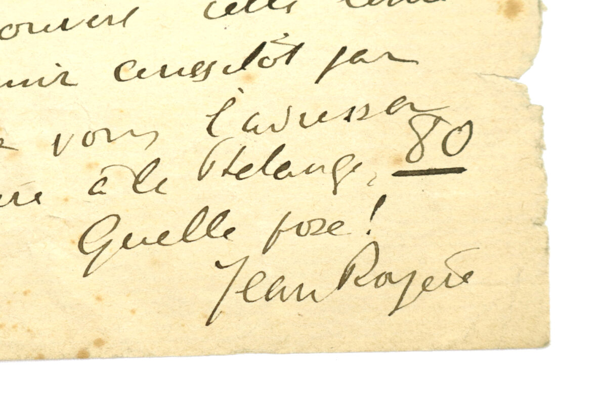 En bas de page, sept lignes de Jean Royère transmettant cette missive ouverte par lui par erreur.