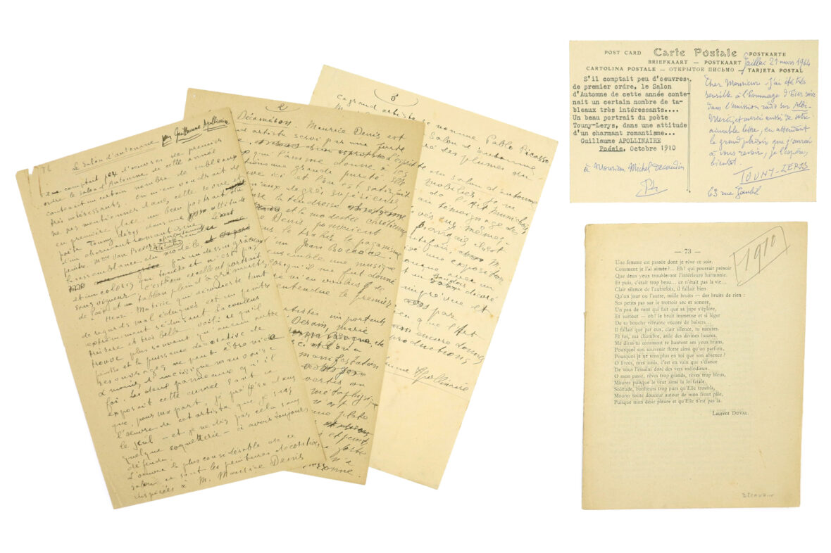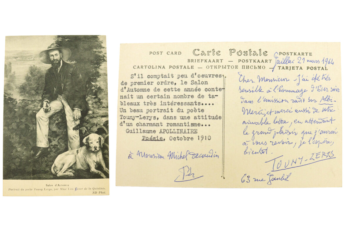 Nous joignons également une carte autographe signée de Marcel Marchandeau, dit Touny-Lérys, adressée en mars 1964 à Michel Décaudin et relative au texte d’Apollinaire.