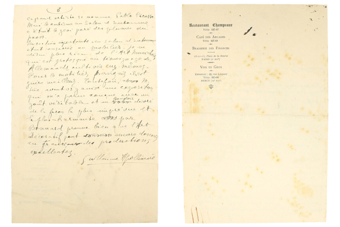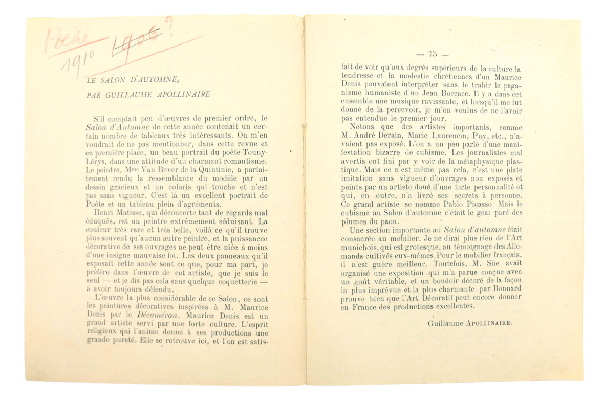 Manuscrit autographe signé – Le Salon d’automne par Guillaume Apollinaire.
