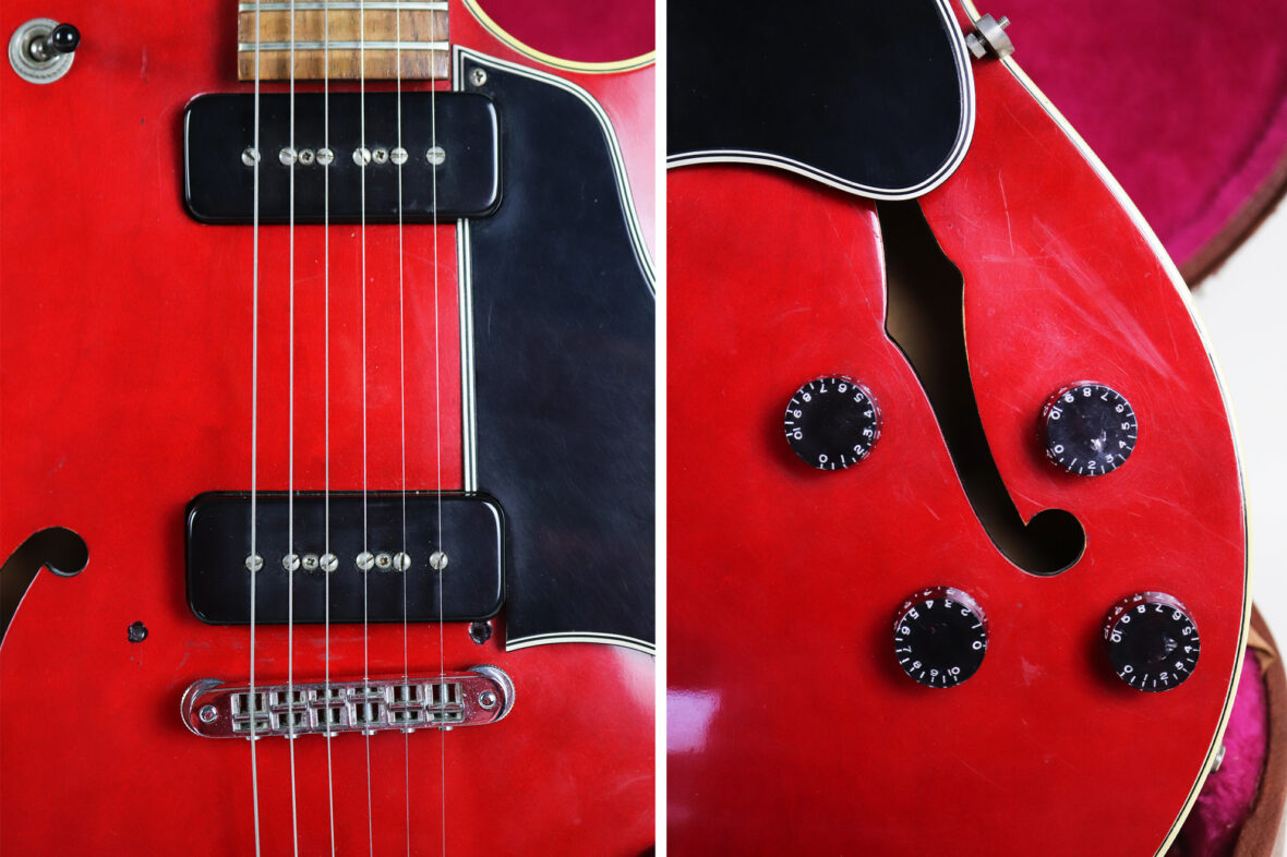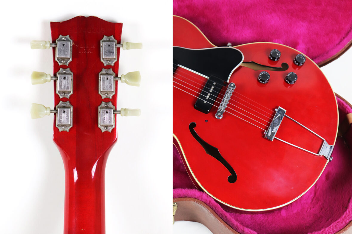 Guitare électrique modèle GIBSON ES 135 finition rouge. Made in USA en mars 1993. N° de série 90753308.