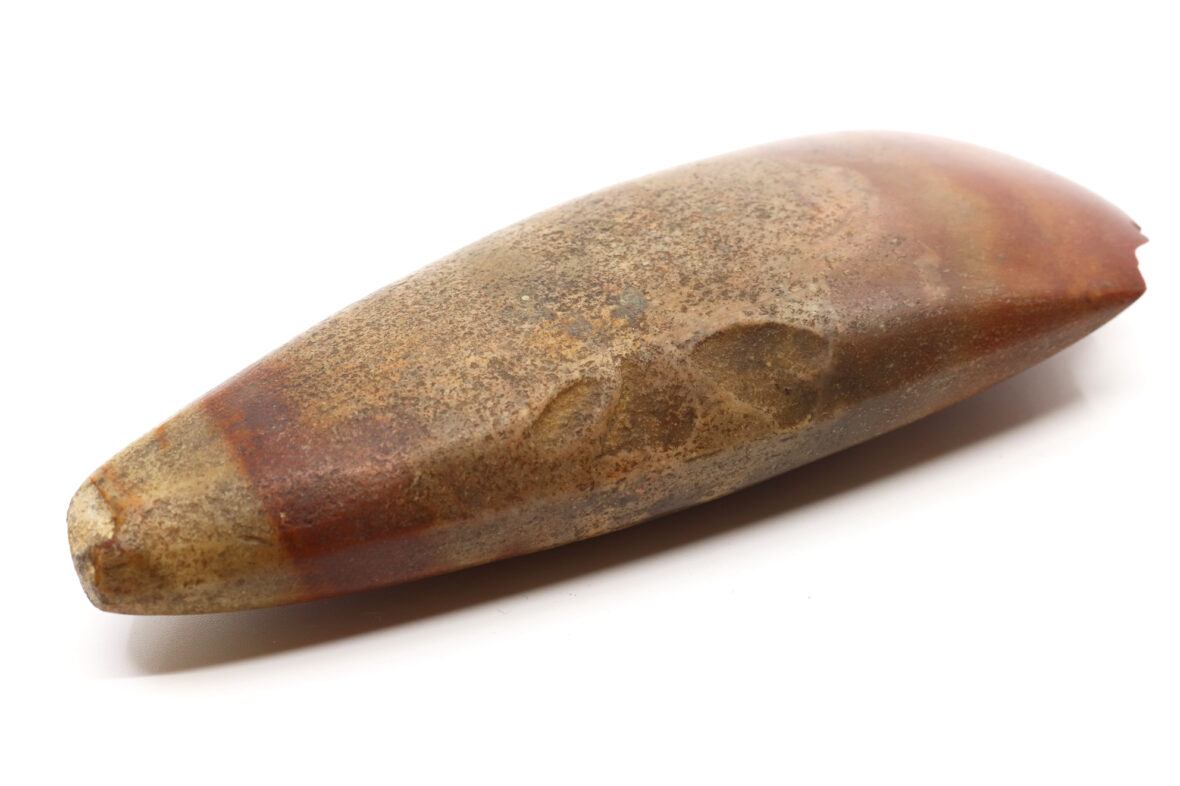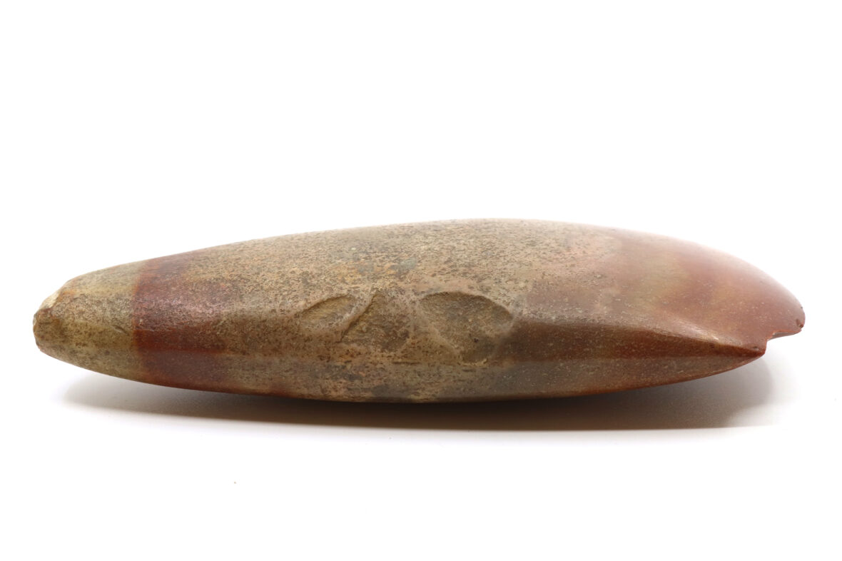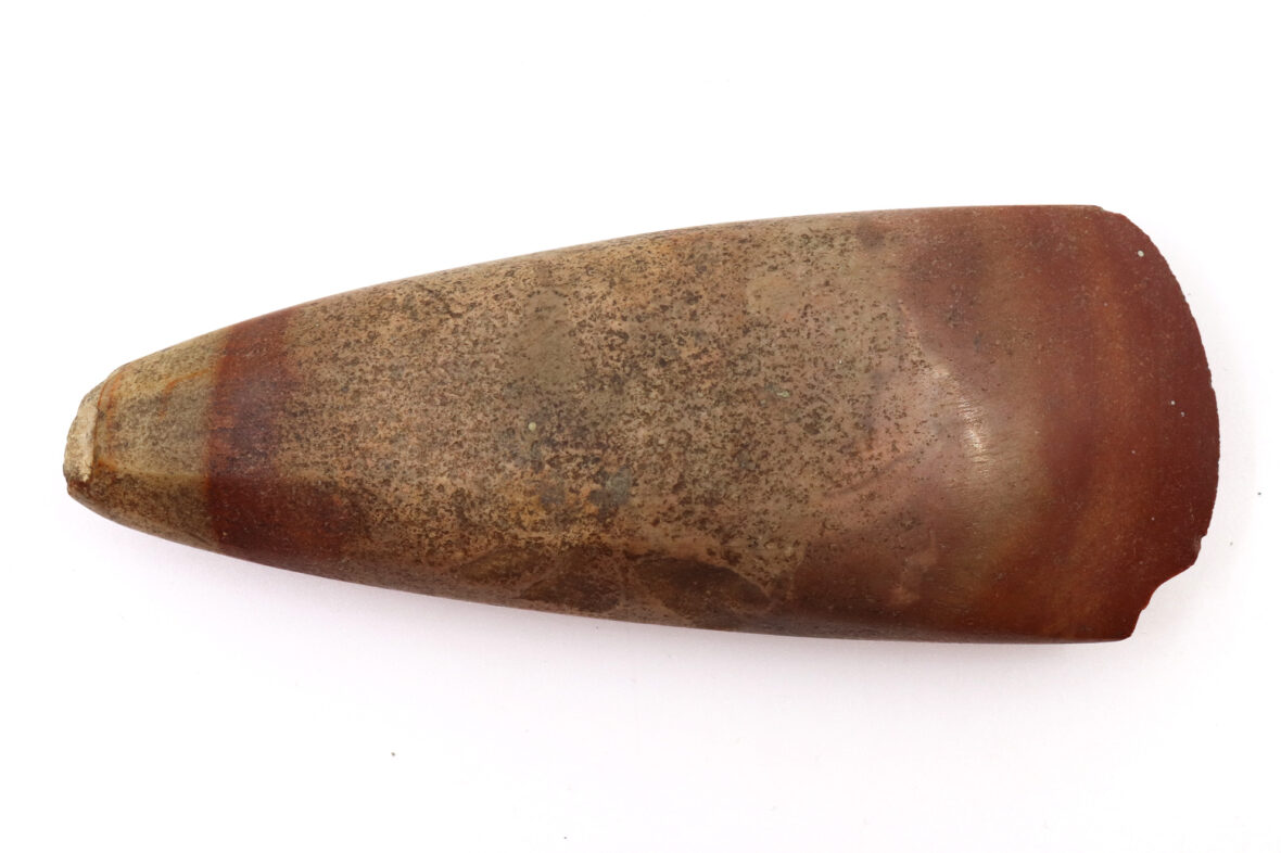 Hâche en pierre polie. (Éclat). Poids : 185,4 g