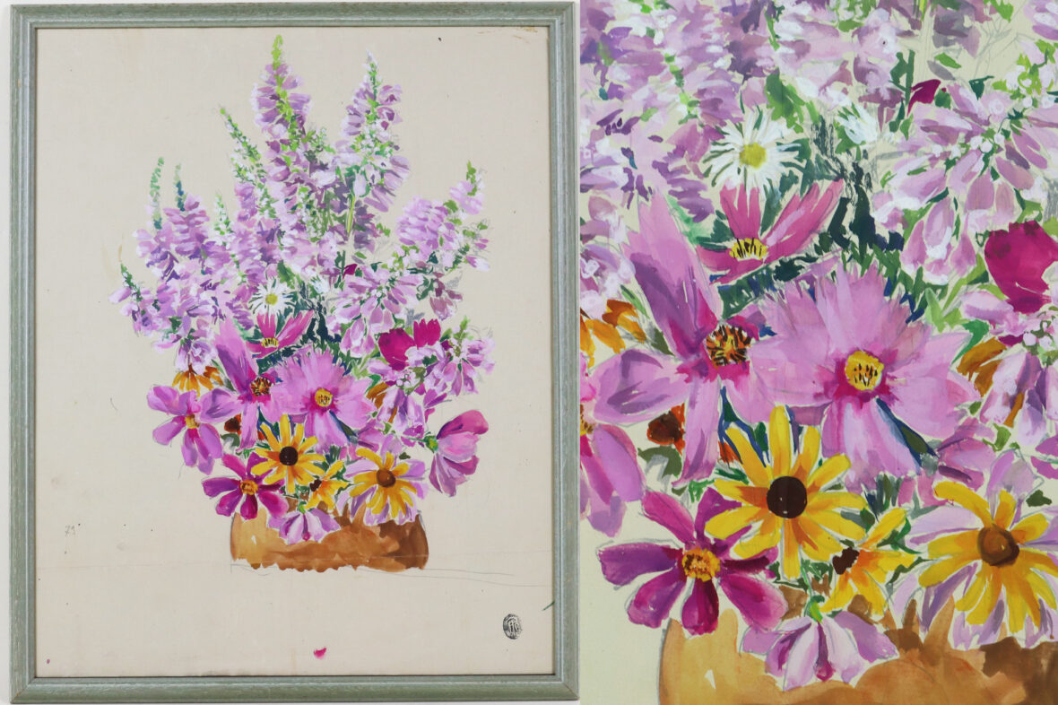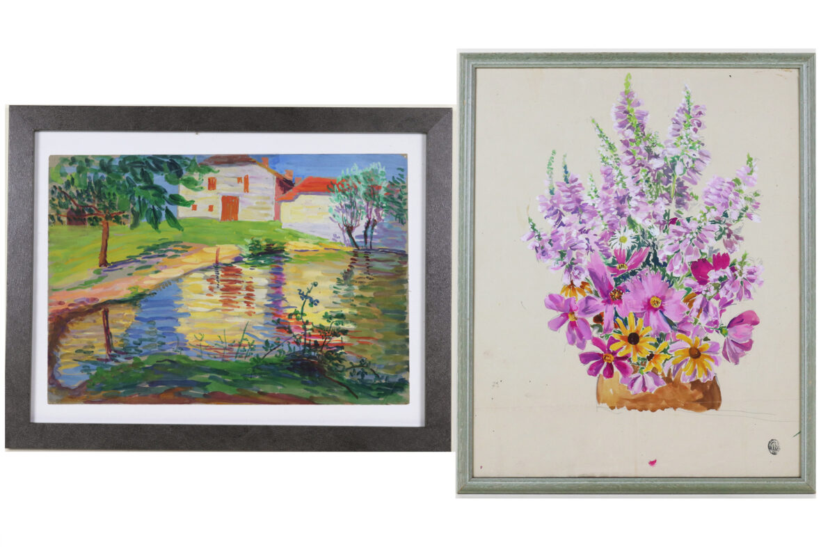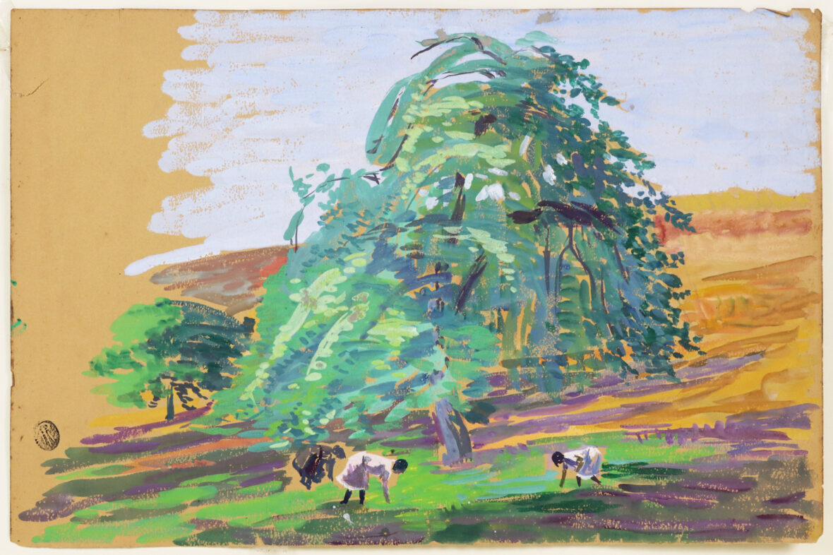 Gouache sur papier. Tampon en bas à gauche.