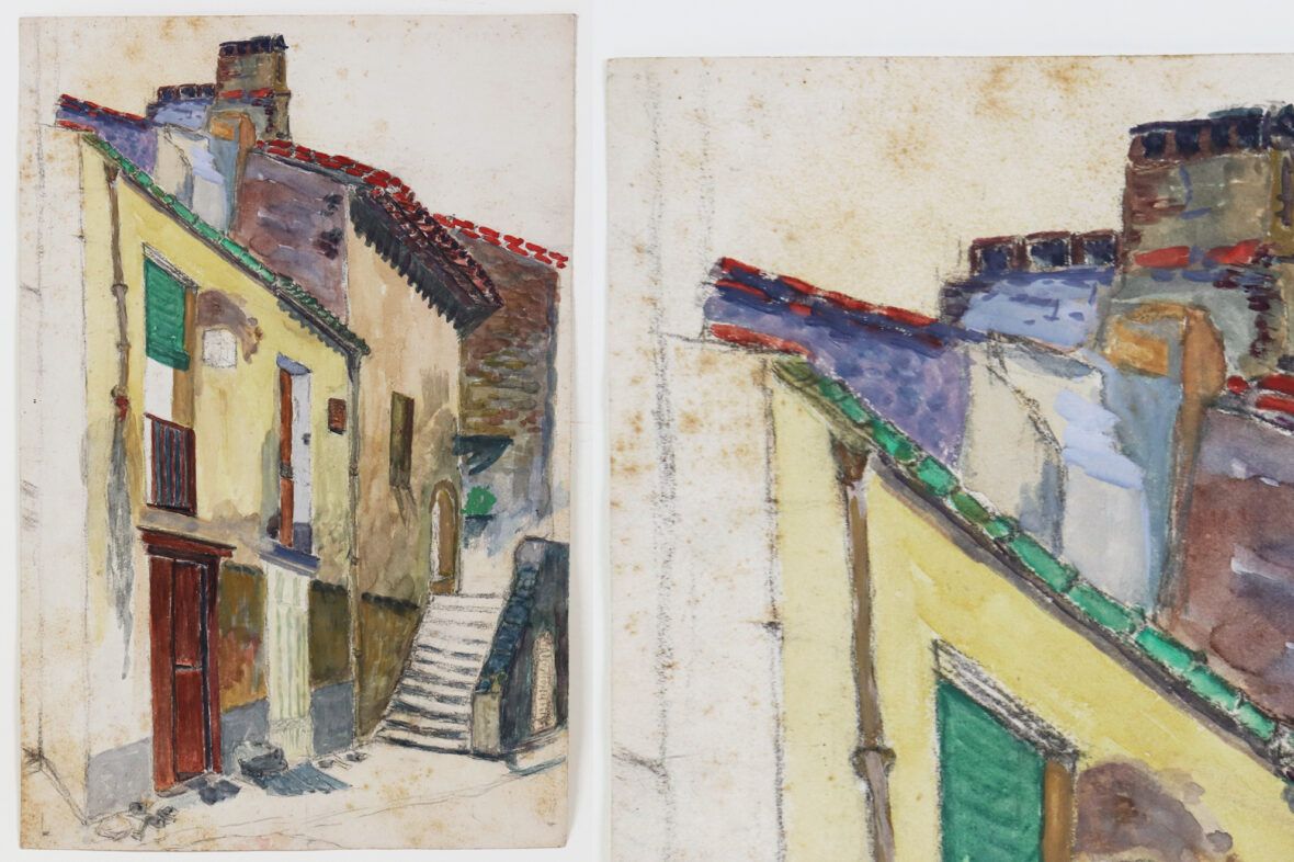 Crayon à papier et aquarelle.