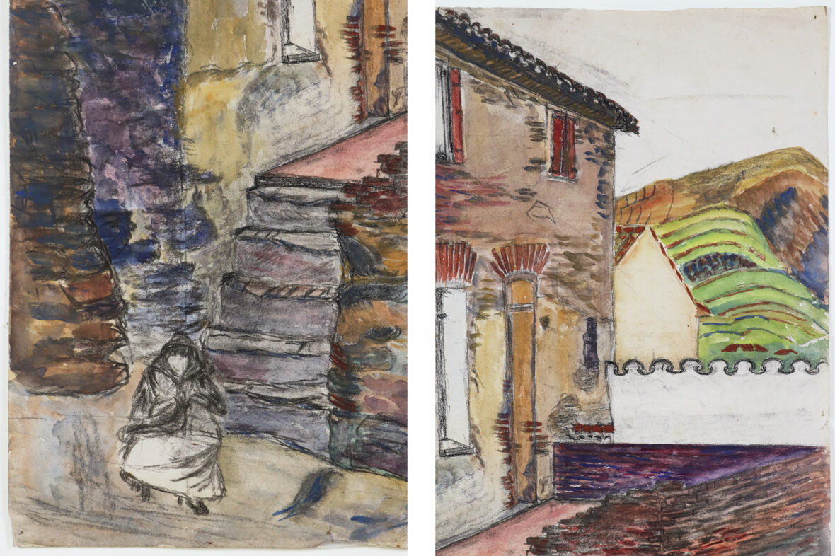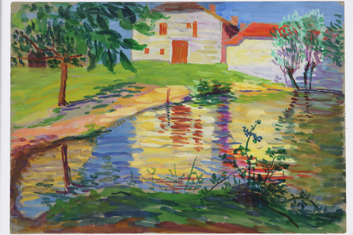 Crayons et gouache. Tampon en bas à droite. Daté? 73.