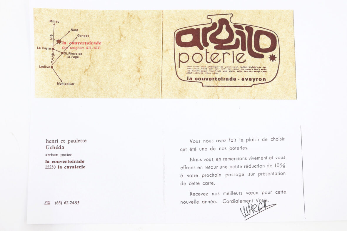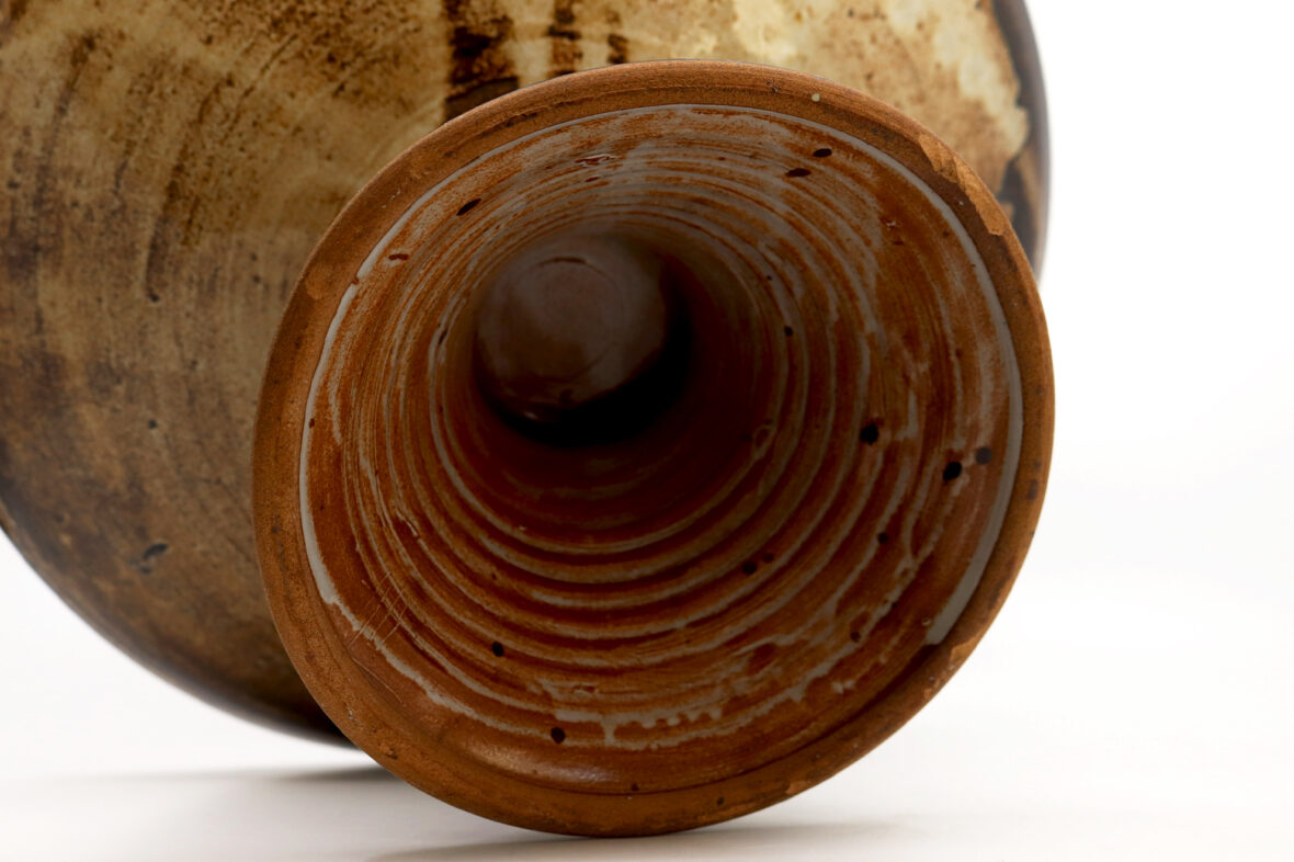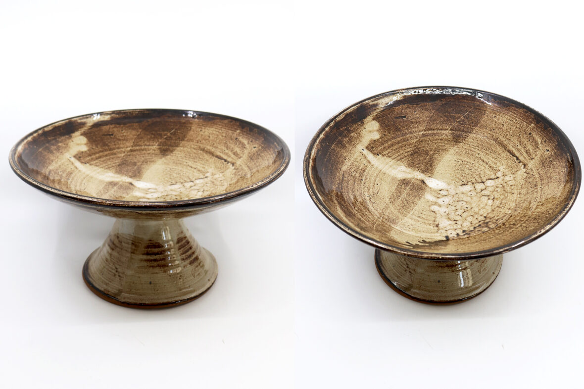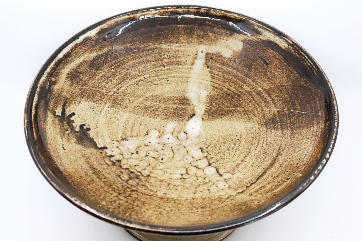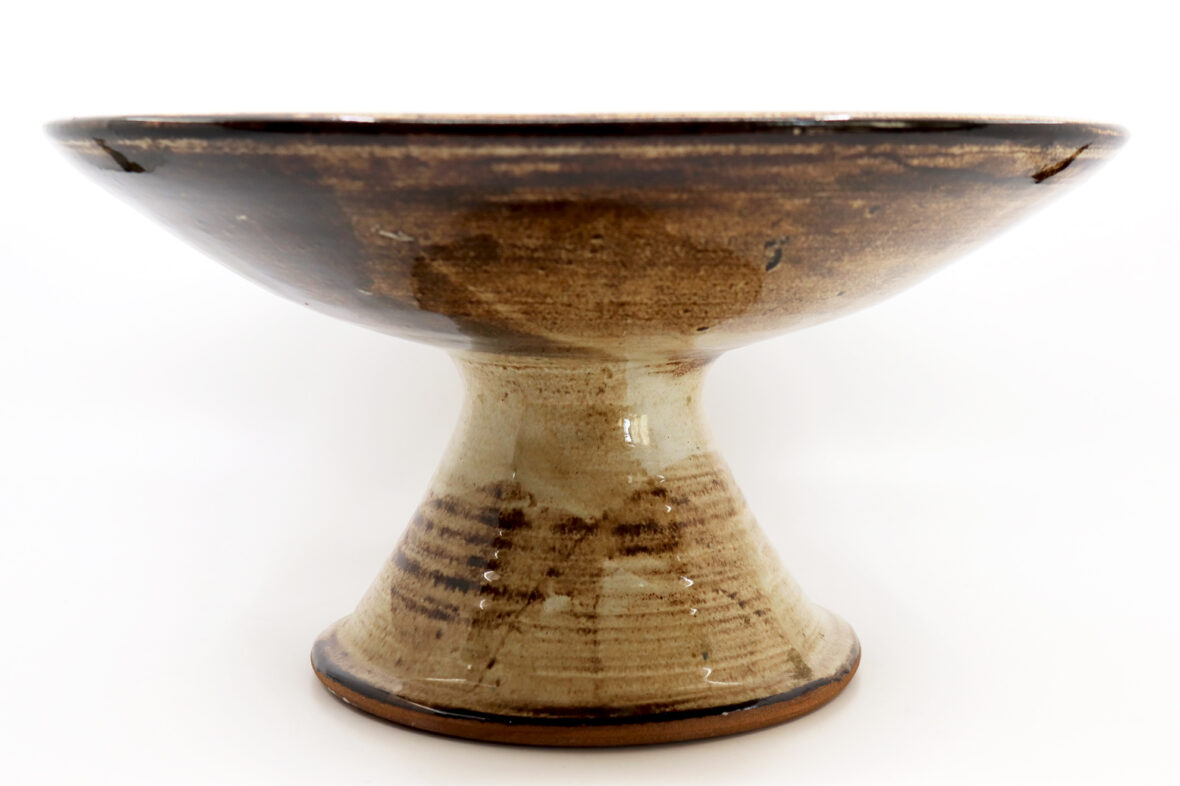 Importante coupe sur piédouche en terre cuite émaillée à décor en camaïeu brun. Monogrammé HU à l’intérieur du pied.
