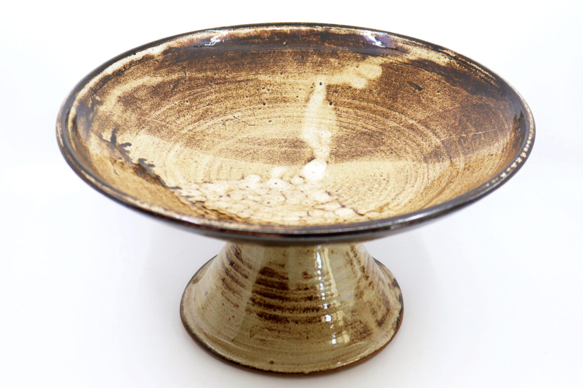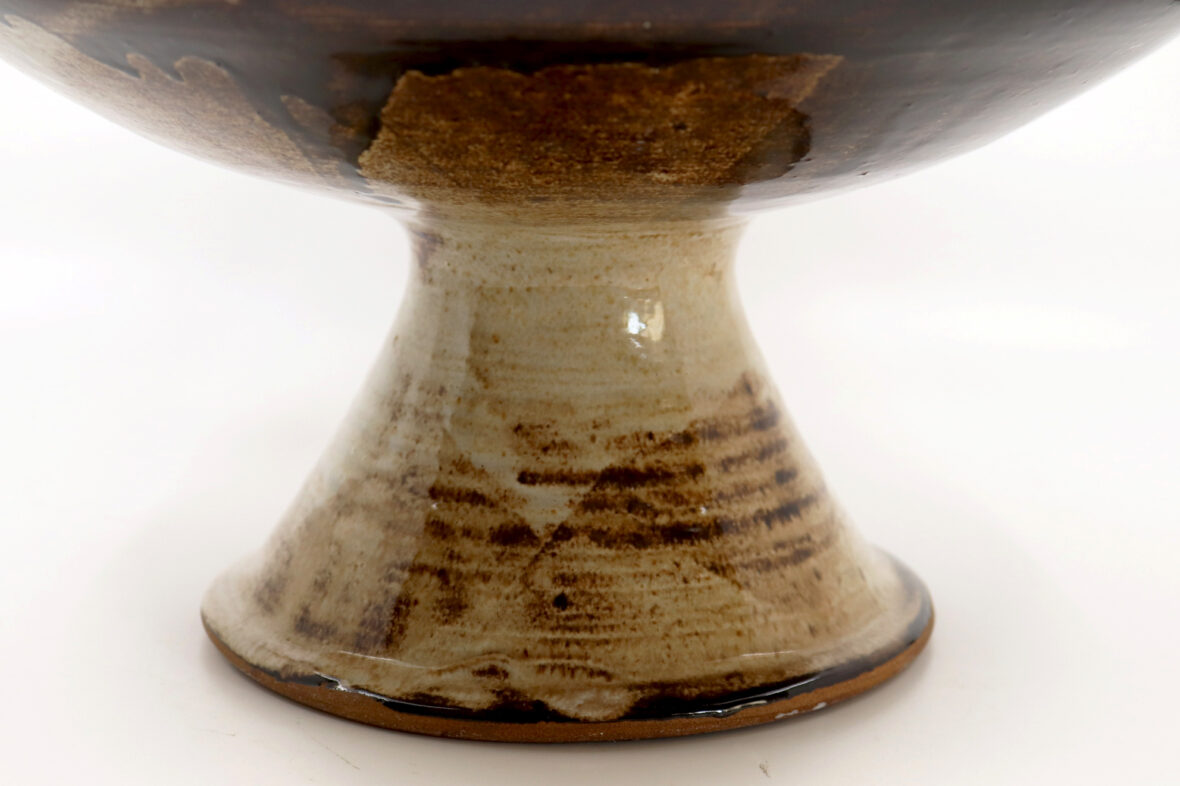 Importante coupe sur piédouche en terre cuite émaillée à décor en camaïeu brun. Monogrammé HU à l’intérieur du pied.