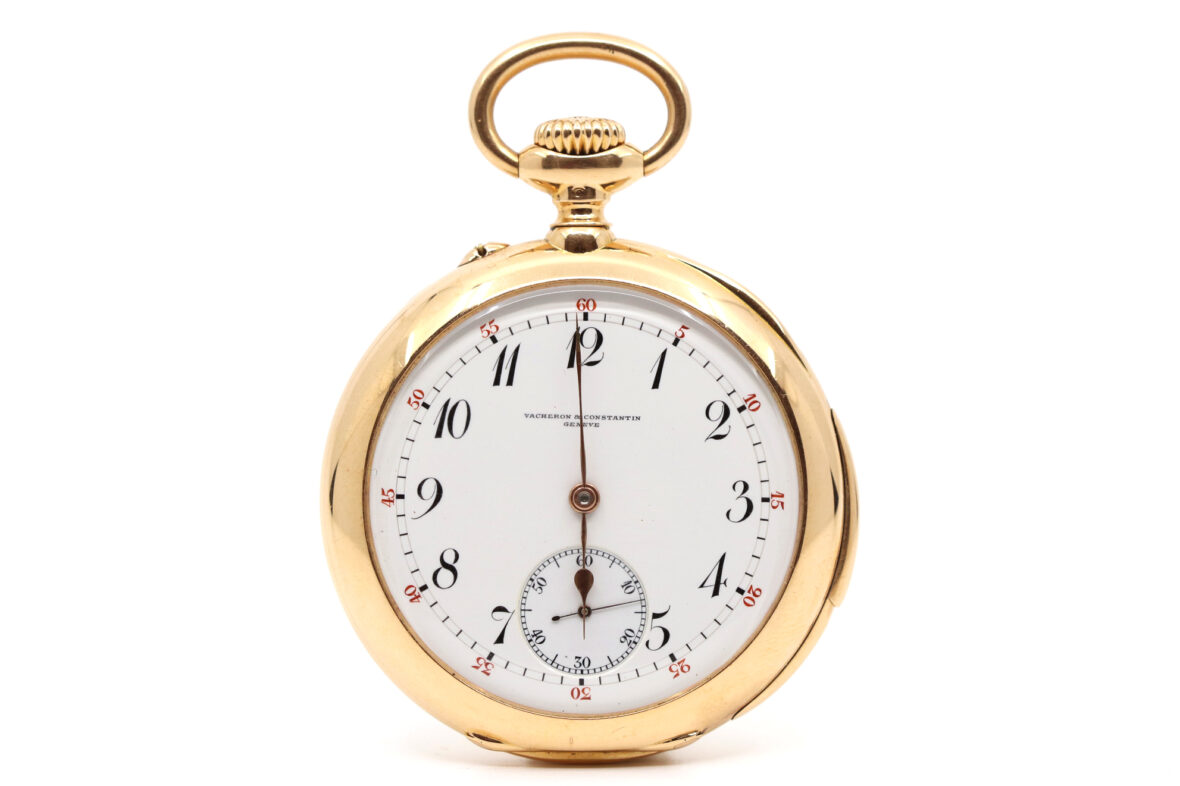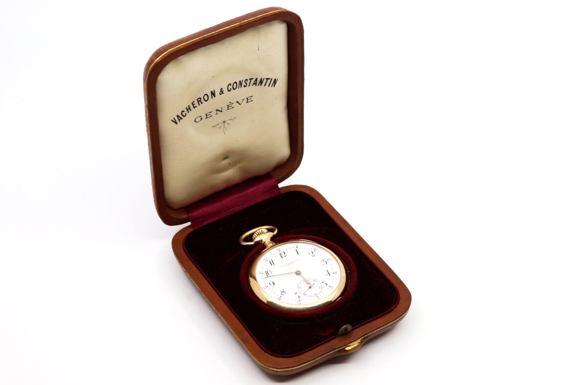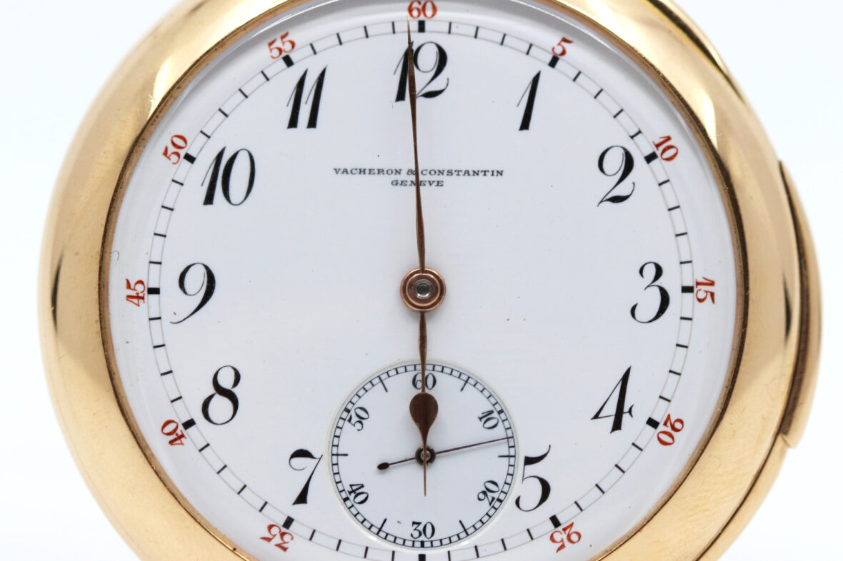Importante montre à gousset en or jaune chiffrée CL. Cadran émaillé blanc à chiffres arabes signé Vacheron & Constantin à Genève. Cuvette intérieure en or jaune. (Aiguille des heures cassée mais présente).