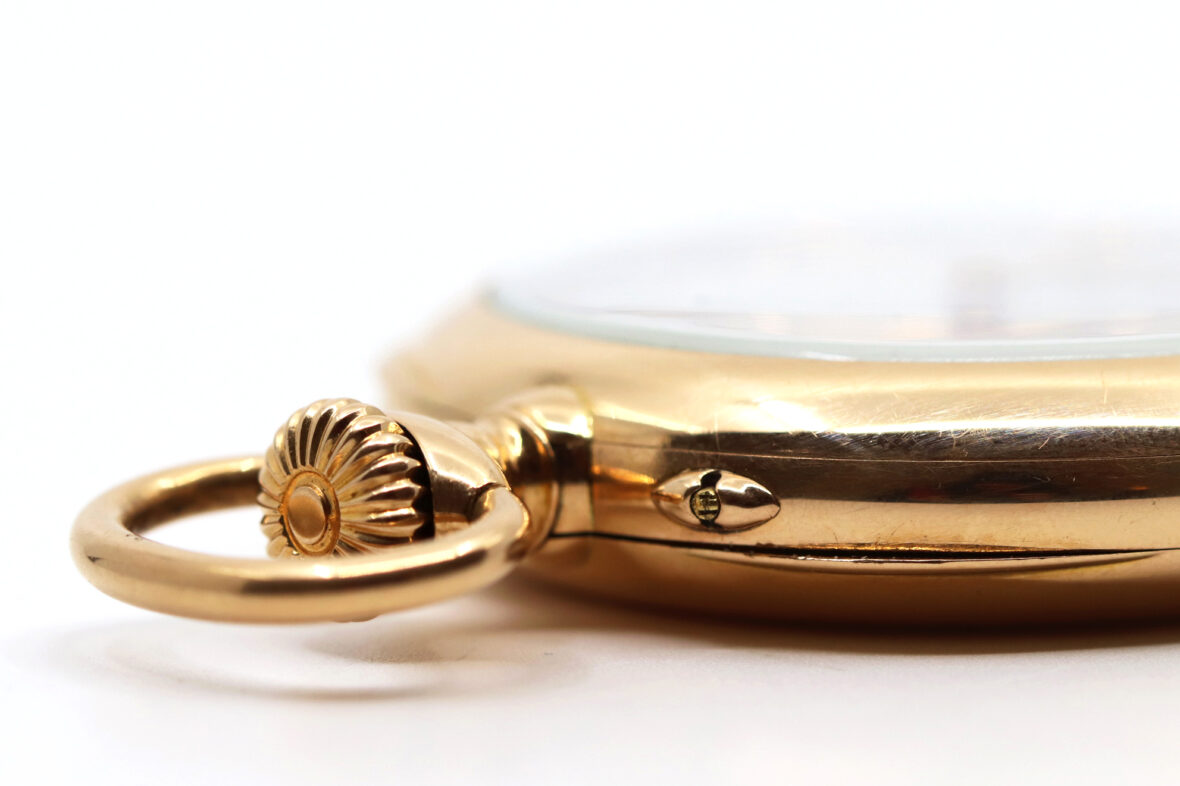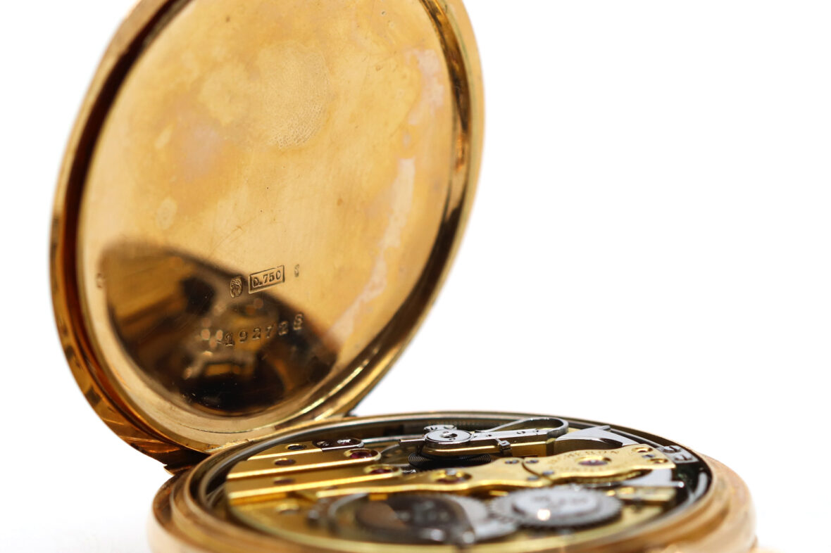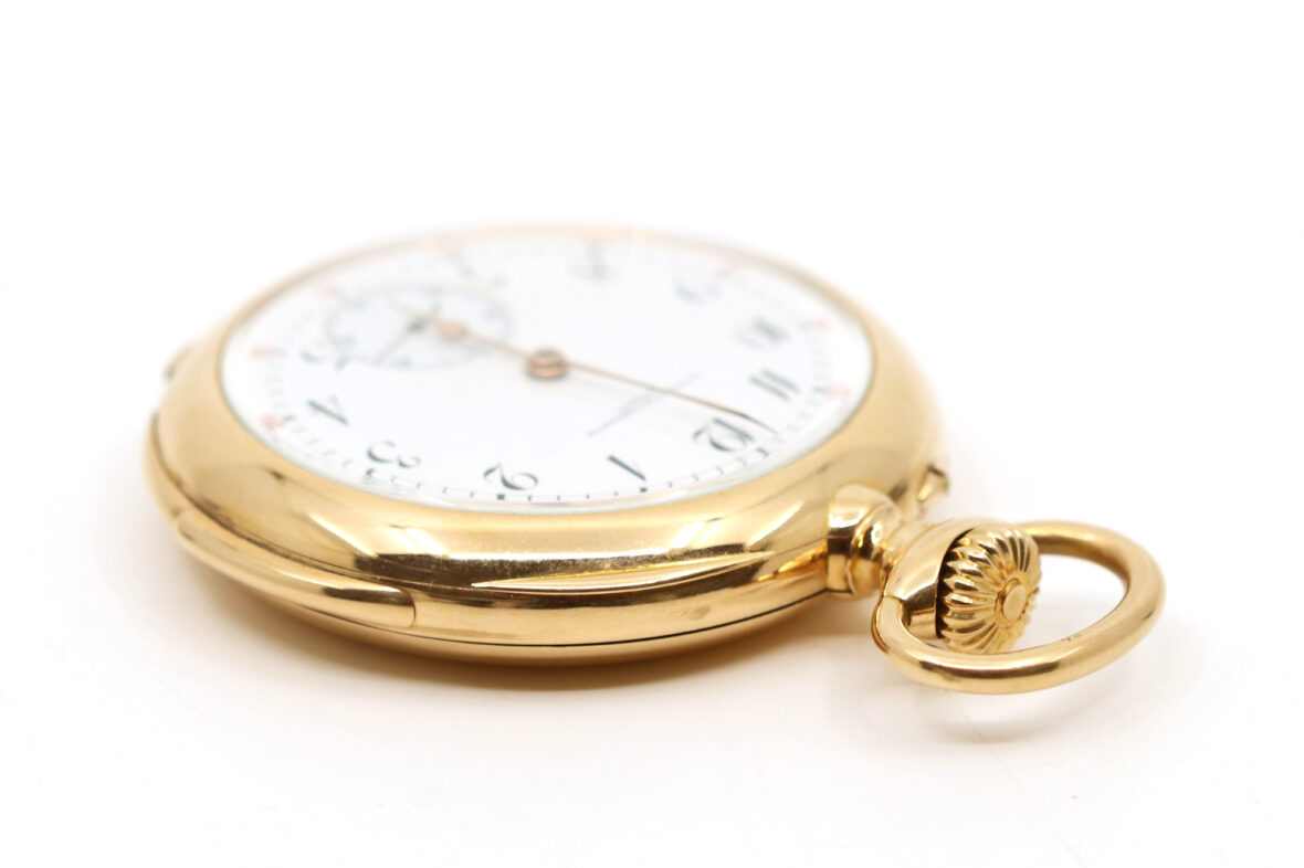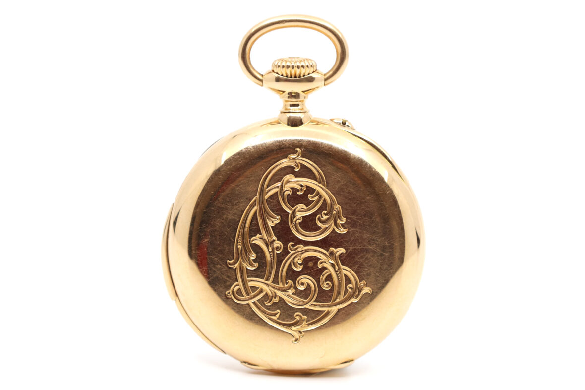 Importante montre à gousset en or jaune chiffrée CL. Cadran émaillé blanc à chiffres…