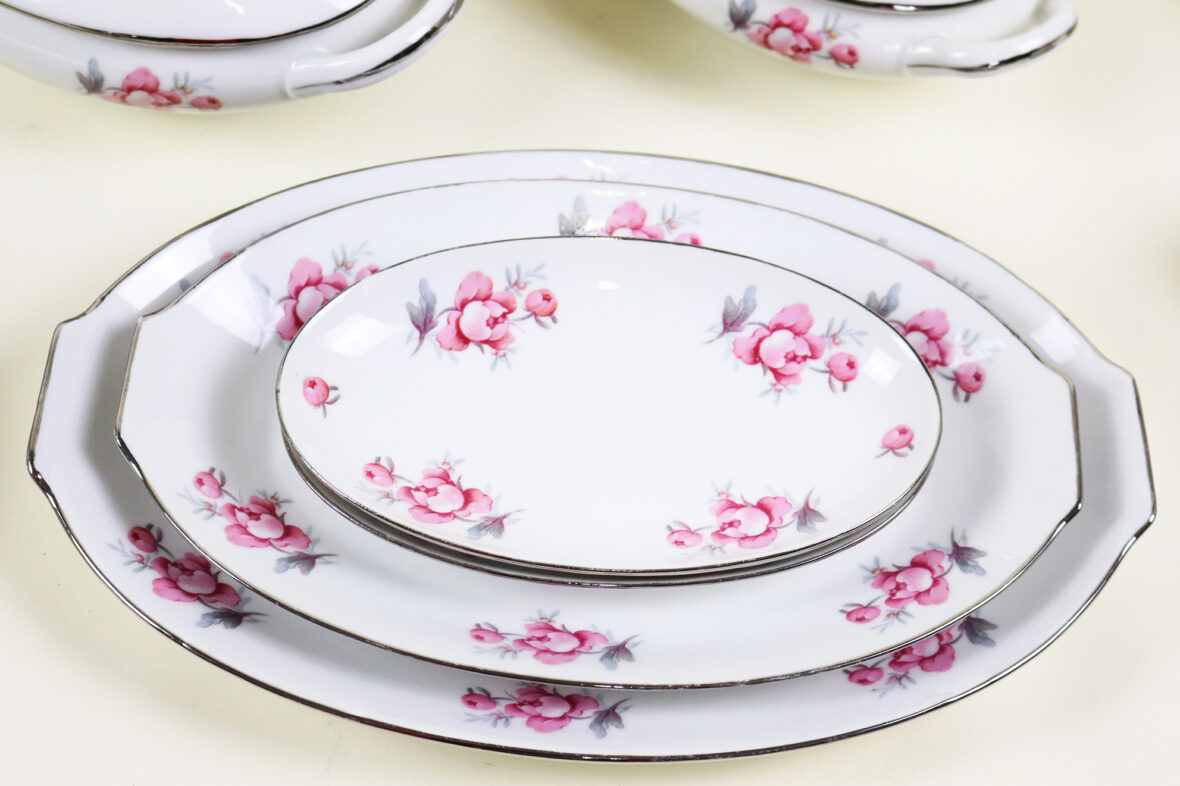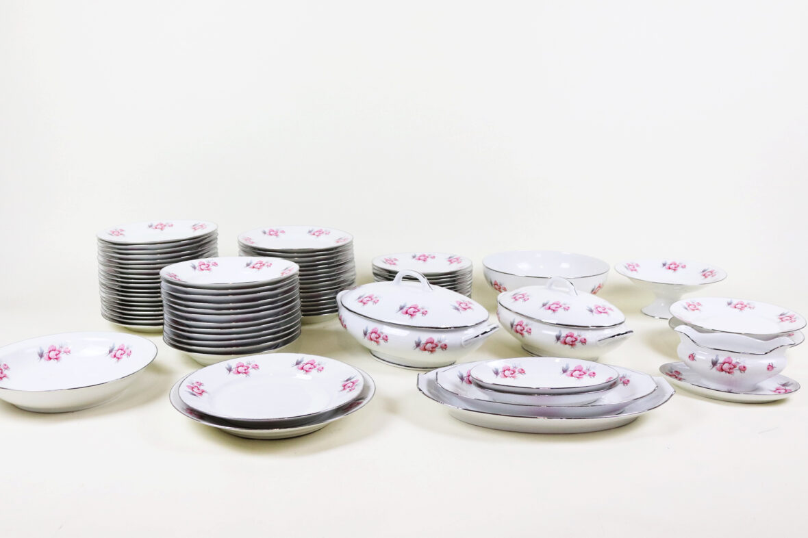 Importante partie de service de table en porcelaine à décor polychrome de fleurettes comprenant environ 73 pièces dont :