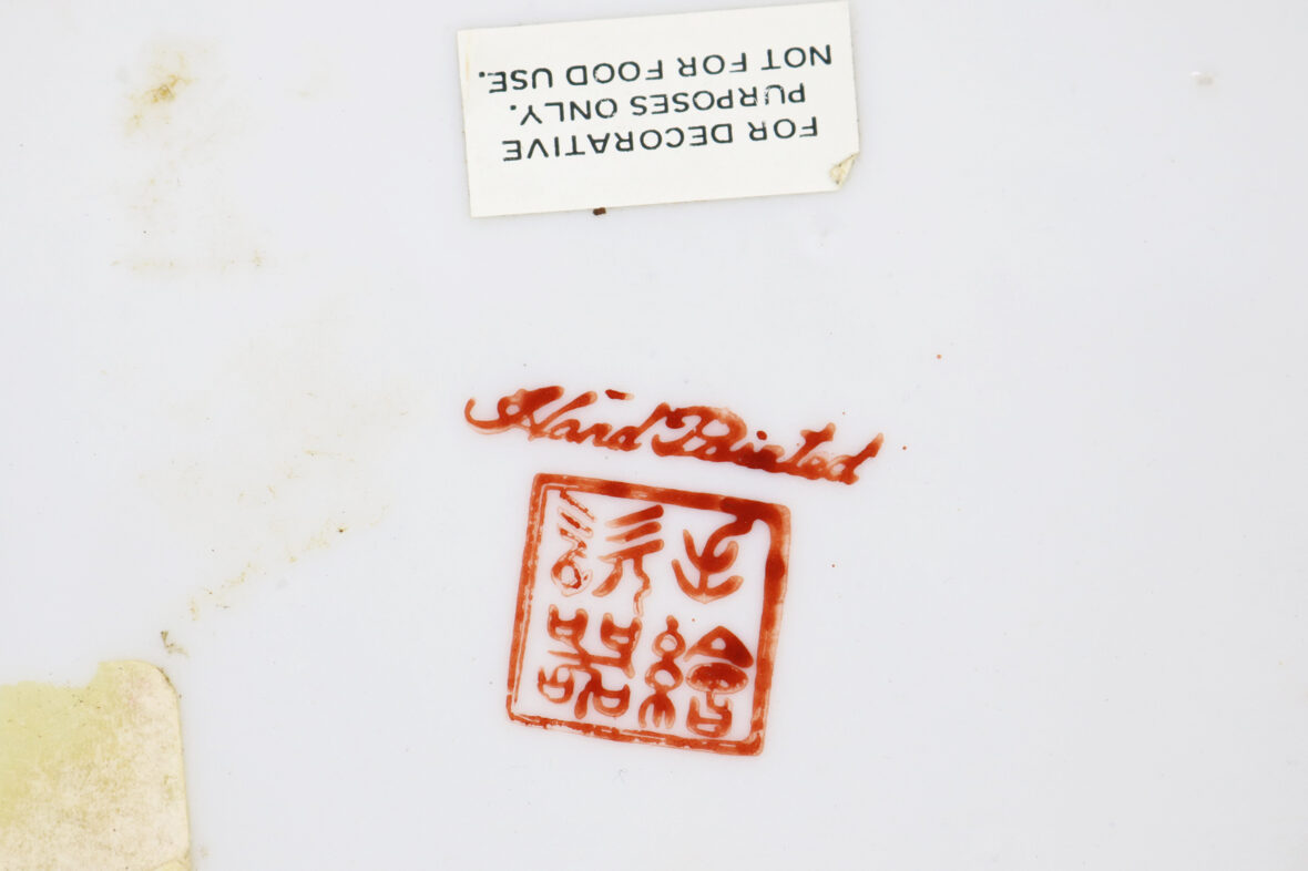 JAPON, XXe Plat carré à pans coupés en porcelaine Imari à décor de vases fleuris