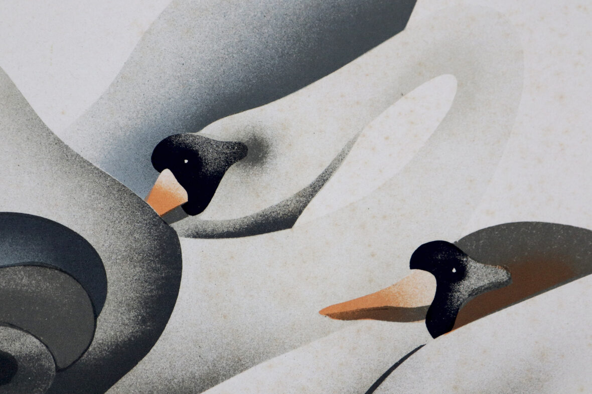 Jean-Paul DONADINI (1951) Couple de cygnes Lithographie en couleurs. Signé en bas…