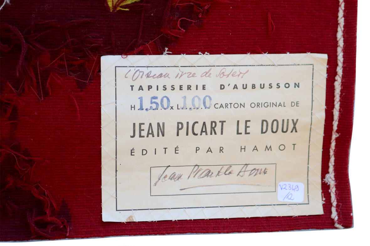 Jean PICART LE DOUX (1902-1982) et AUBUSSON L’oiseau ivre de soleil Tapisserie en…