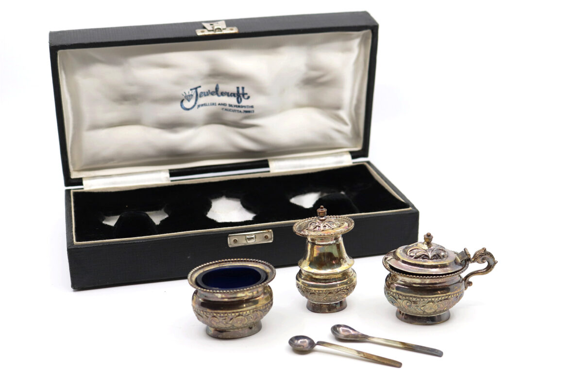 JEWELCRAFT Coffret en argent comprenant un saleron avec sa petite cuillère, un poivrier…