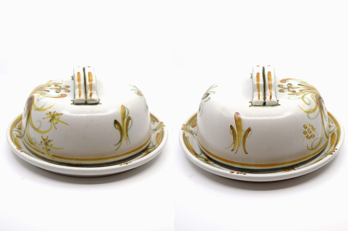 KERALUC à QUIMPER. Circa 1960-1970. Plateau à fromage et sa cloche en grès émaillé…