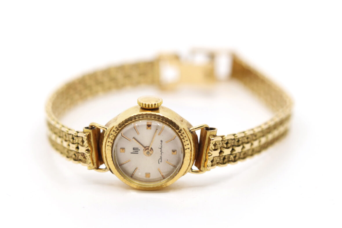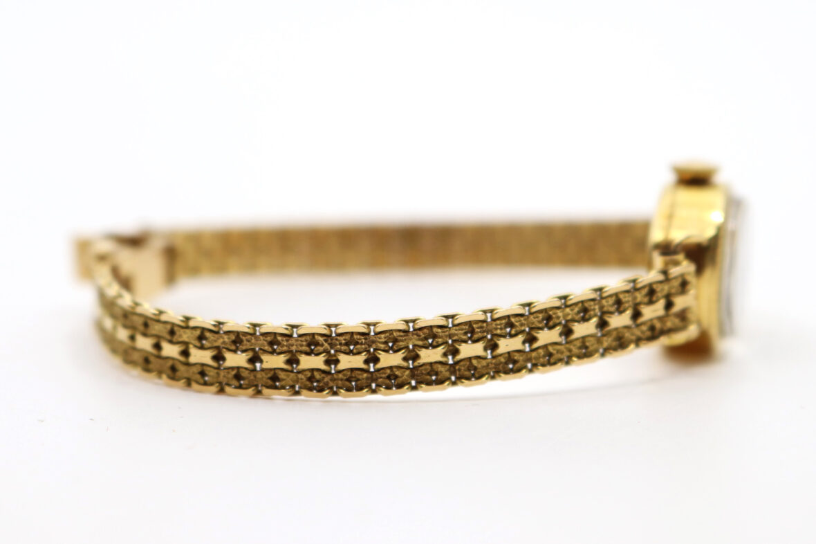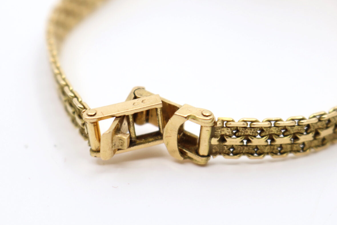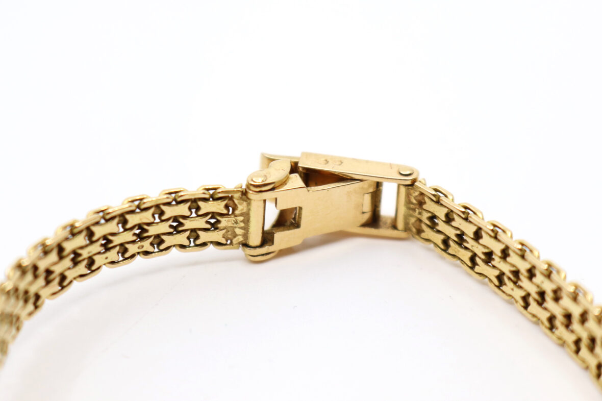 Montre de dame en or jaune modèle Dauphine, le bracelet à mailles tressées. Cadran à index bâtons.