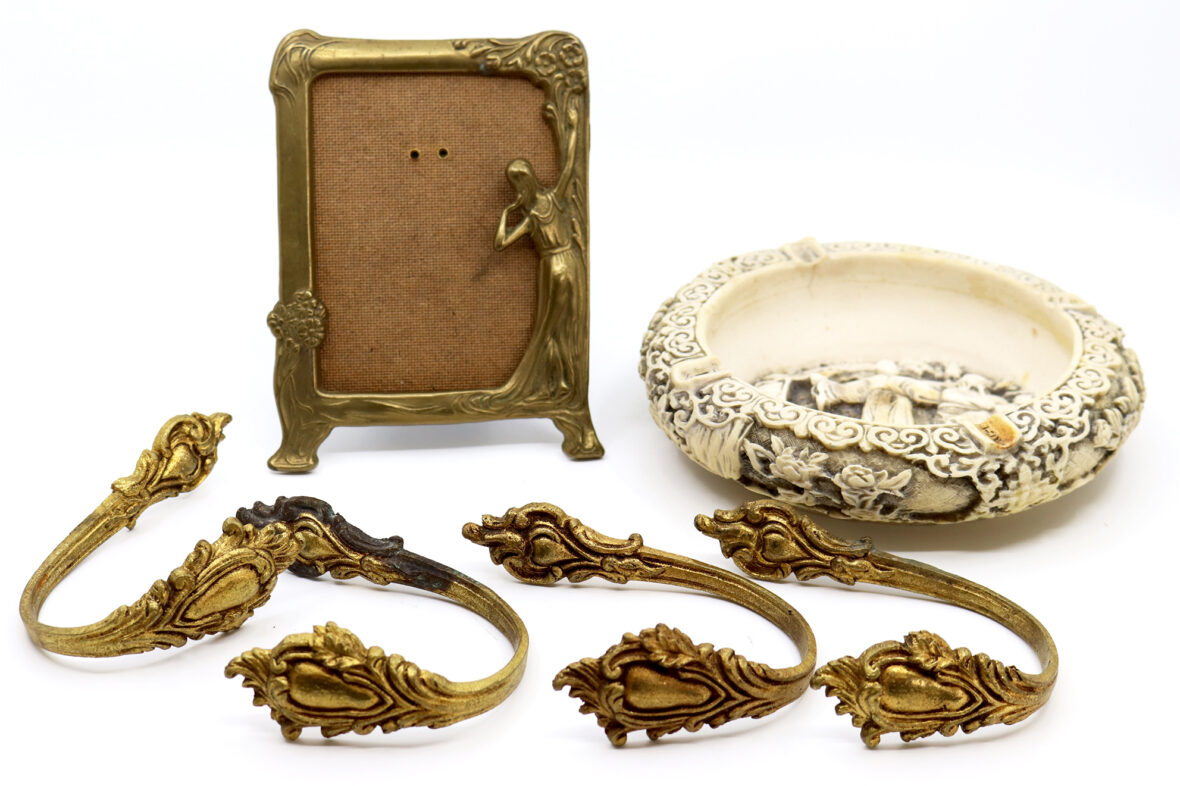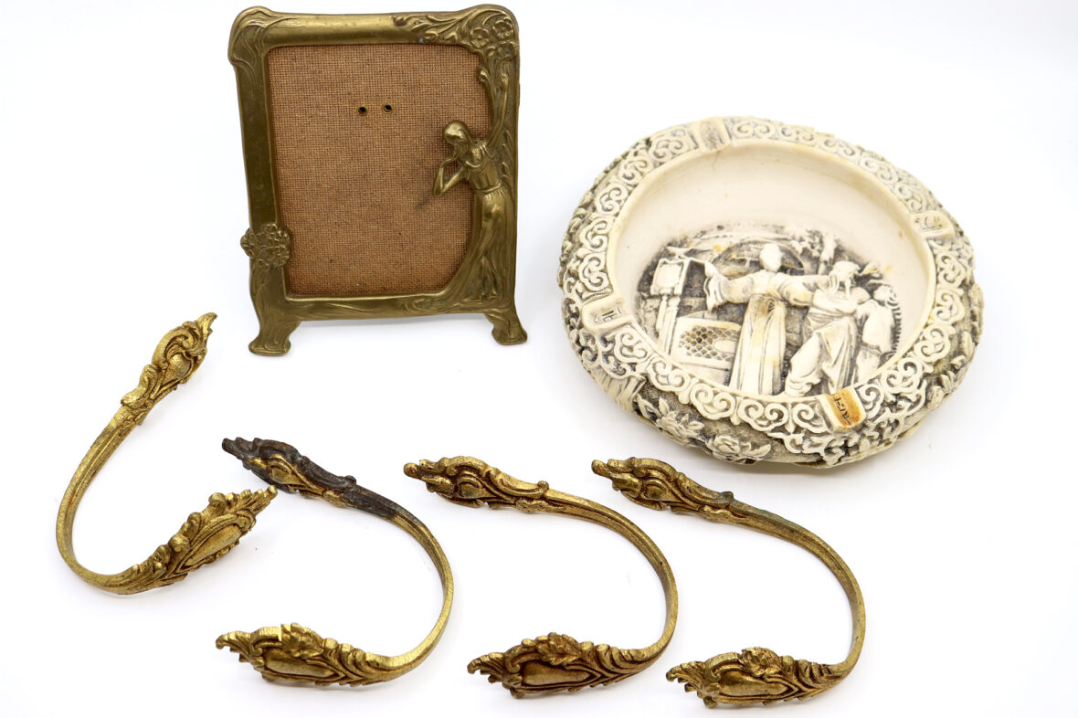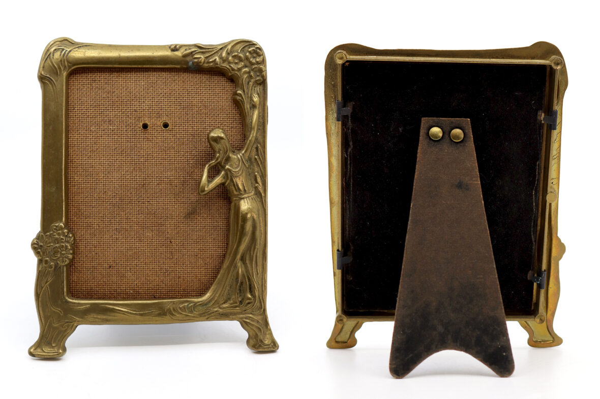 – un petit cadre à poser en bronze doré à décor de style art nouveau.