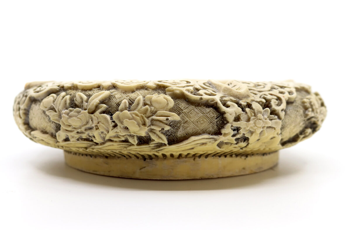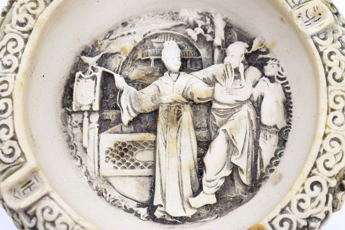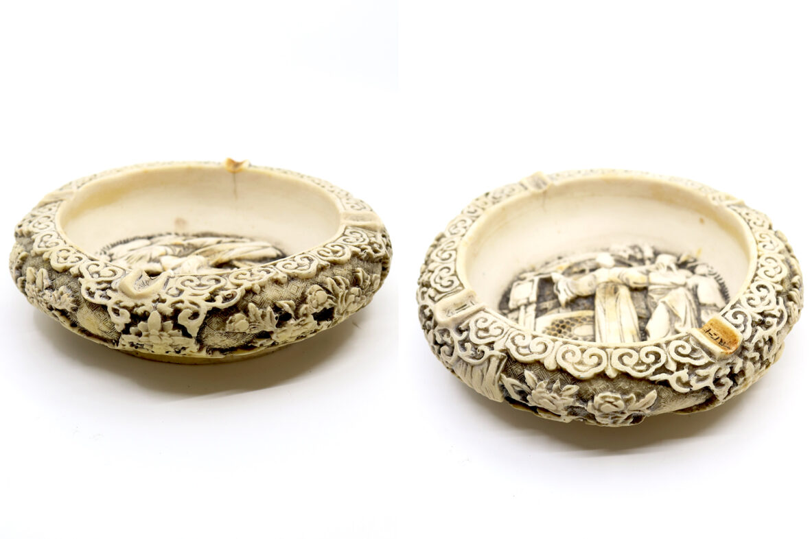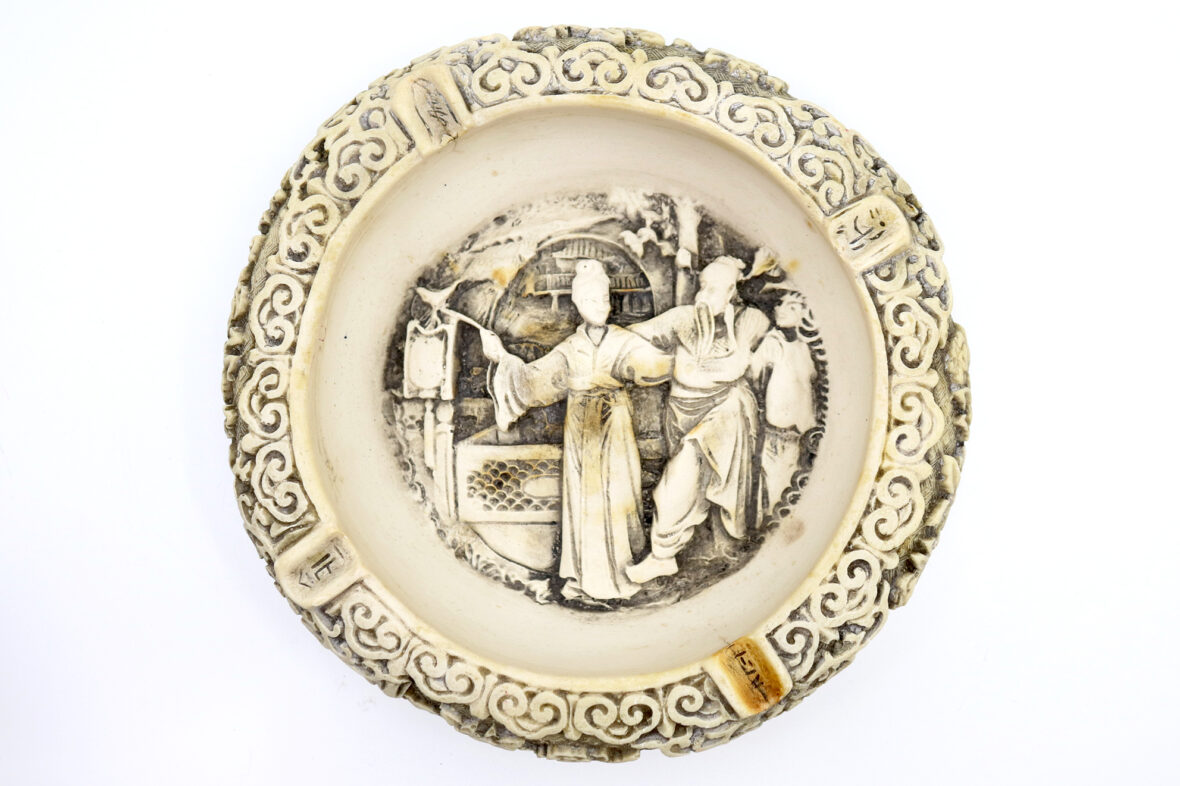 – un cendrier imitant l’ivoire à décor sculpté extrême-oriental.