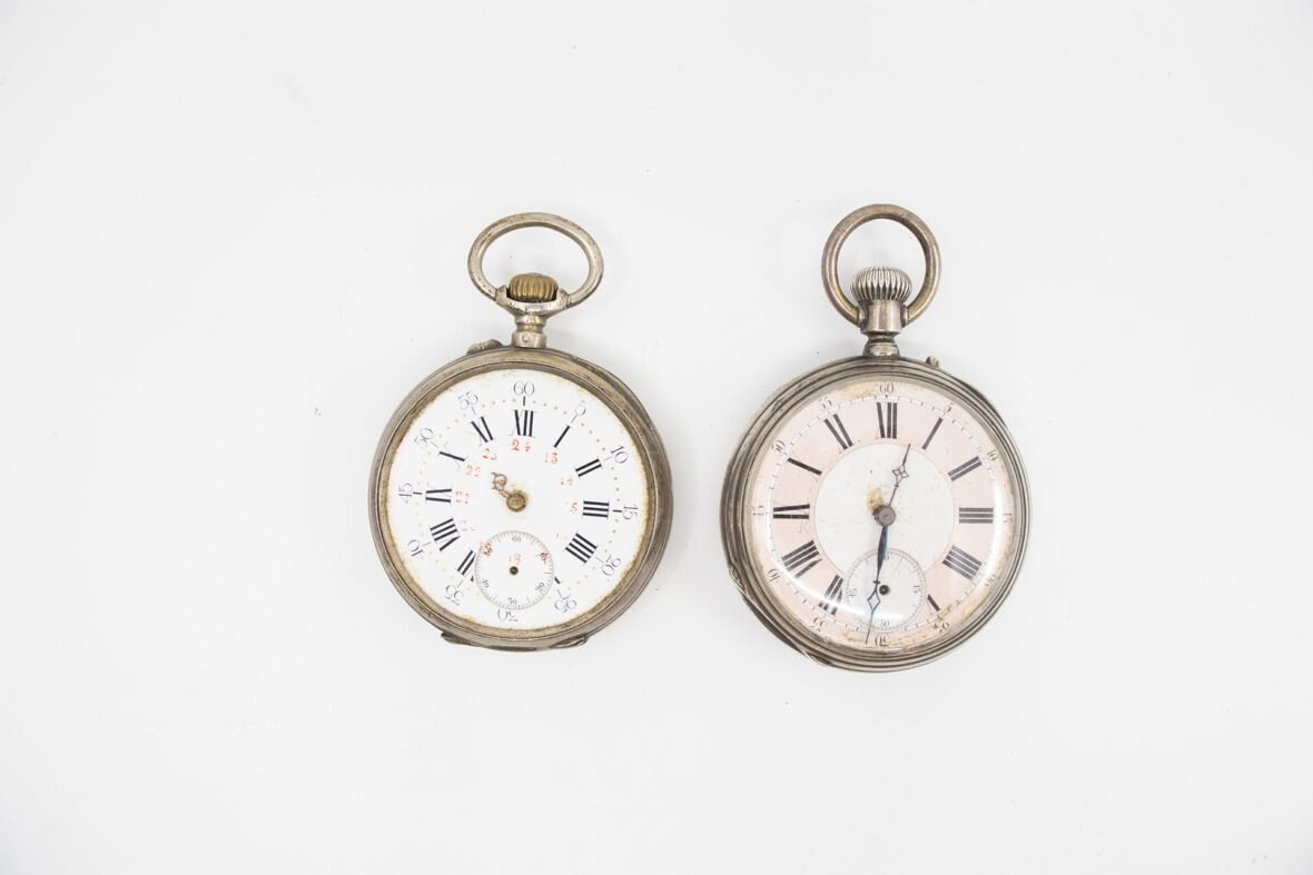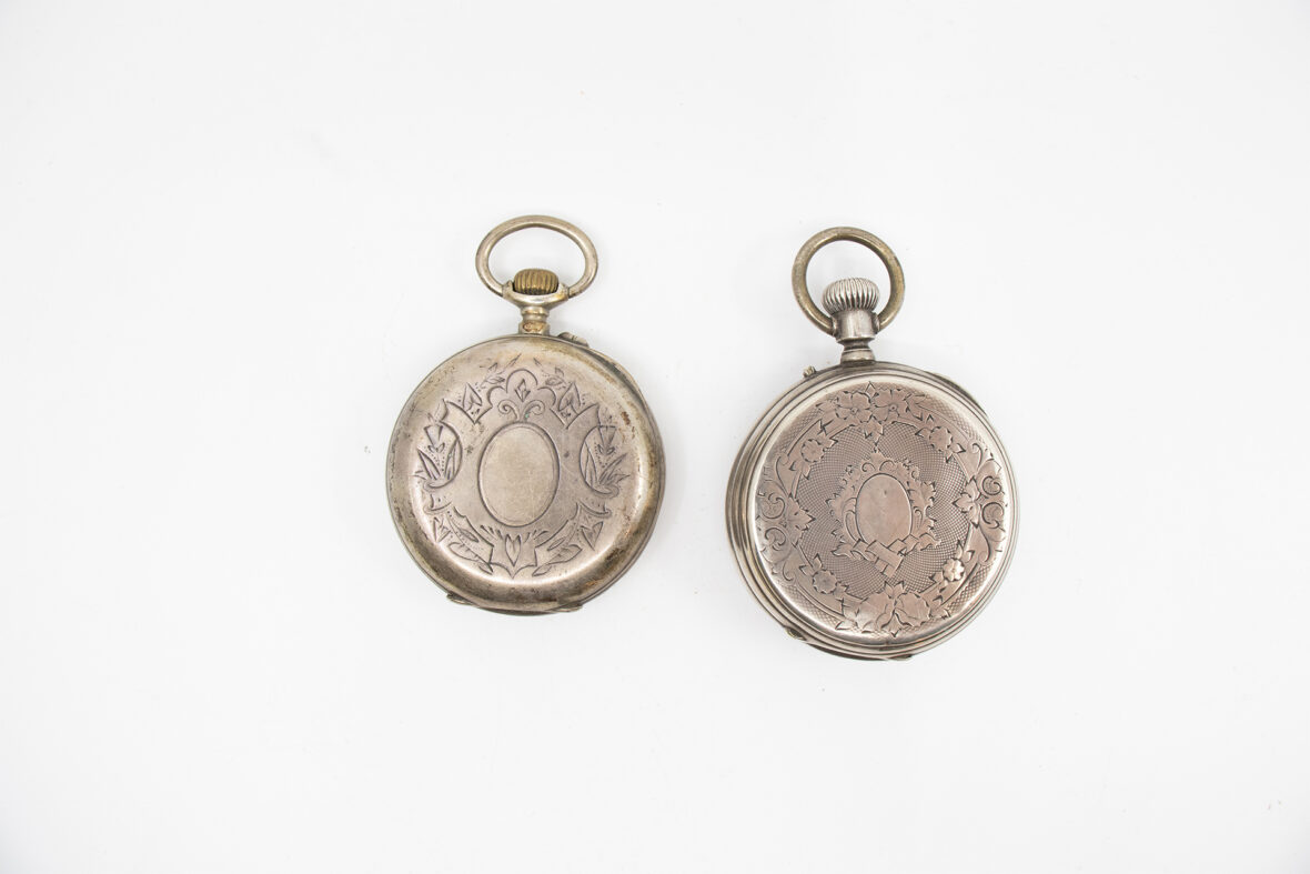 Lot de deux montres à gousset en argent, cadran émaillé à chiffres romains, trotteuse à 6h.
