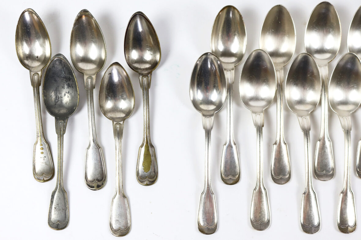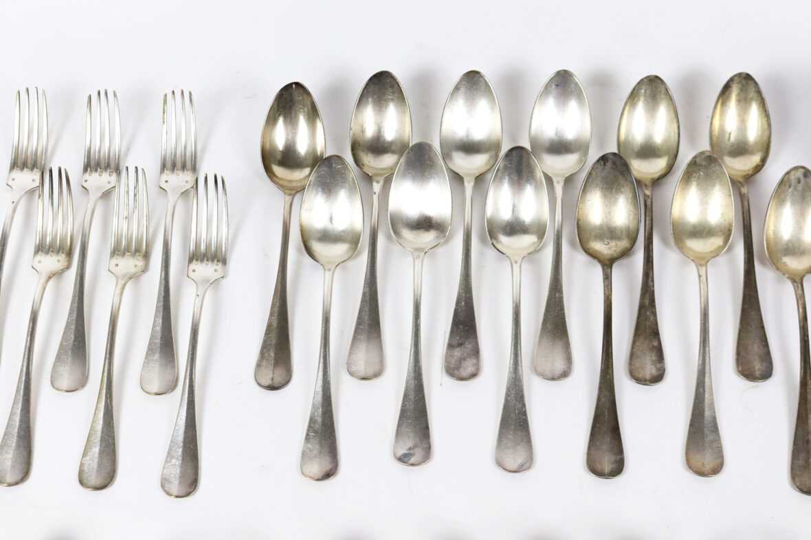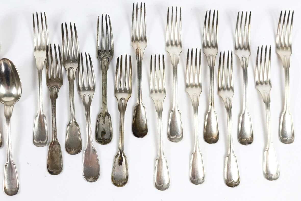 – onze grandes cuillères, quinze fourchettes et six petites cuillères