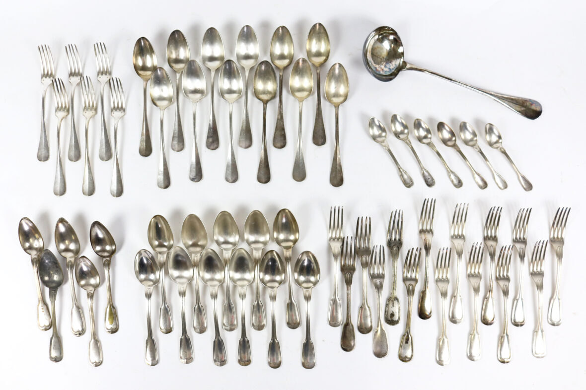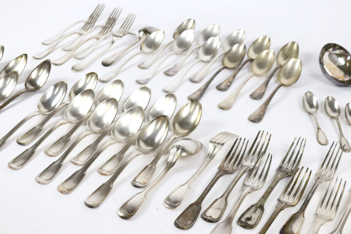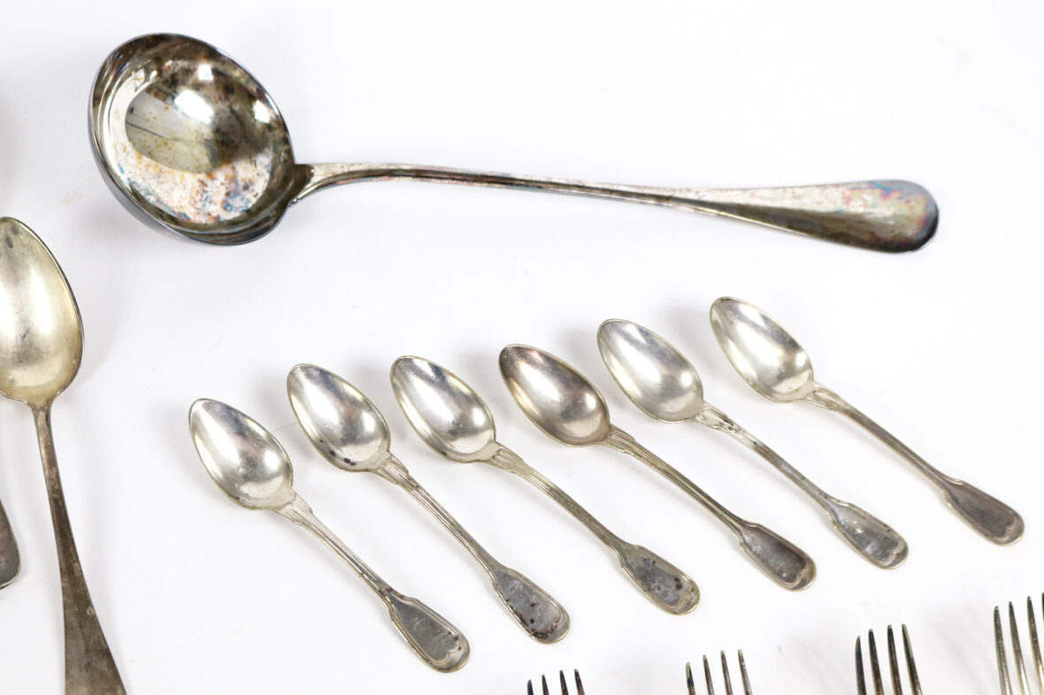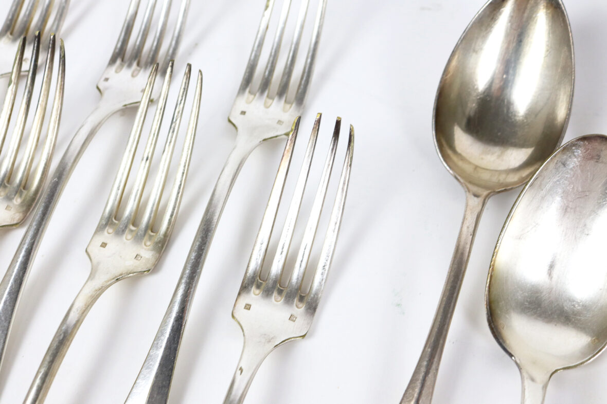– onze grandes cuillères, quinze fourchettes et six petites cuillères