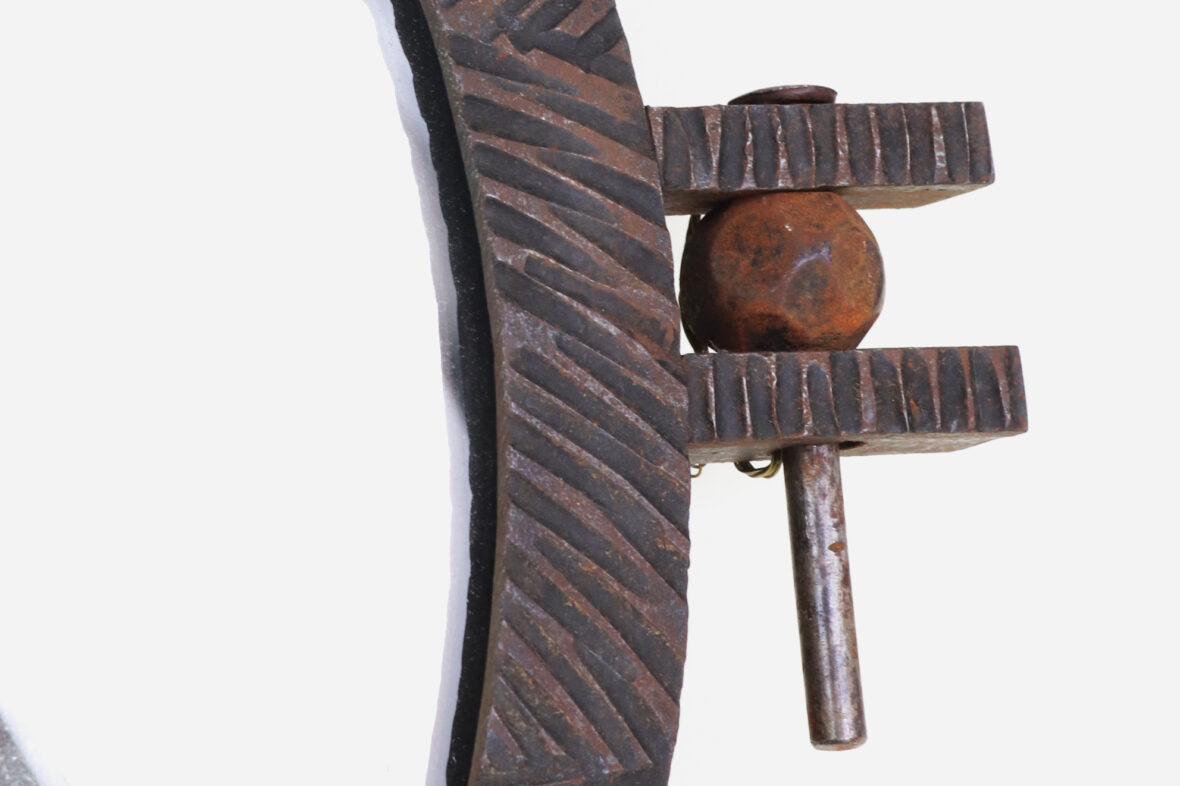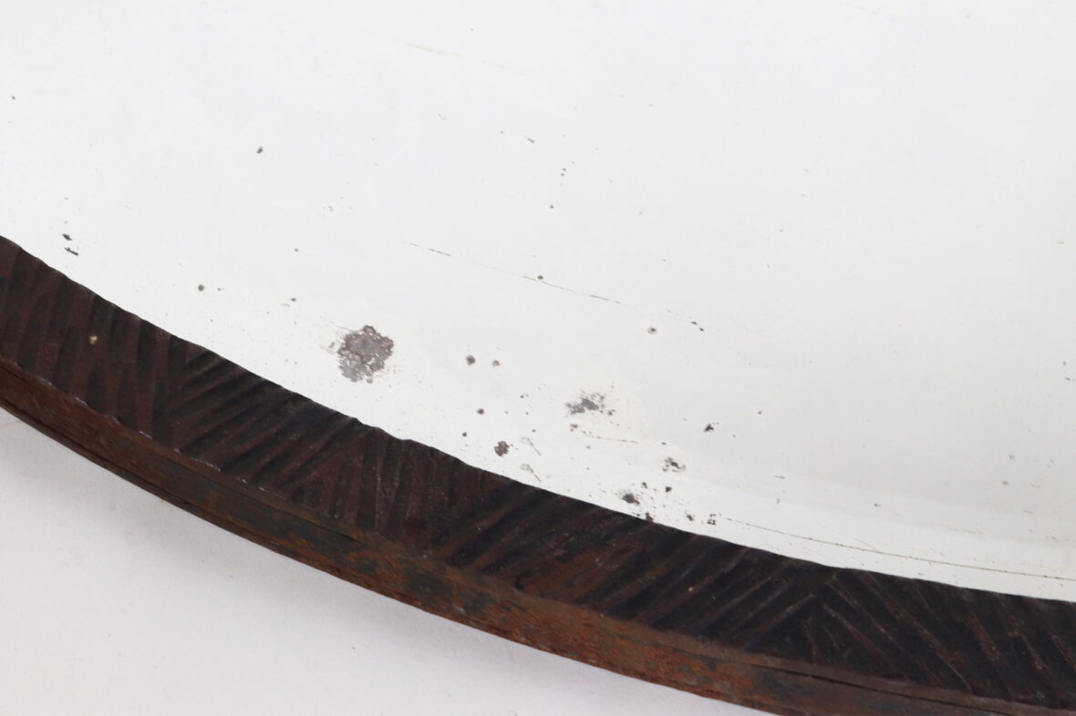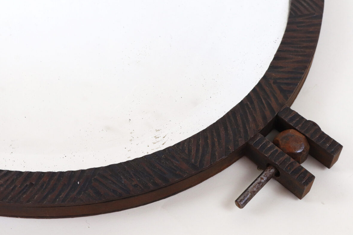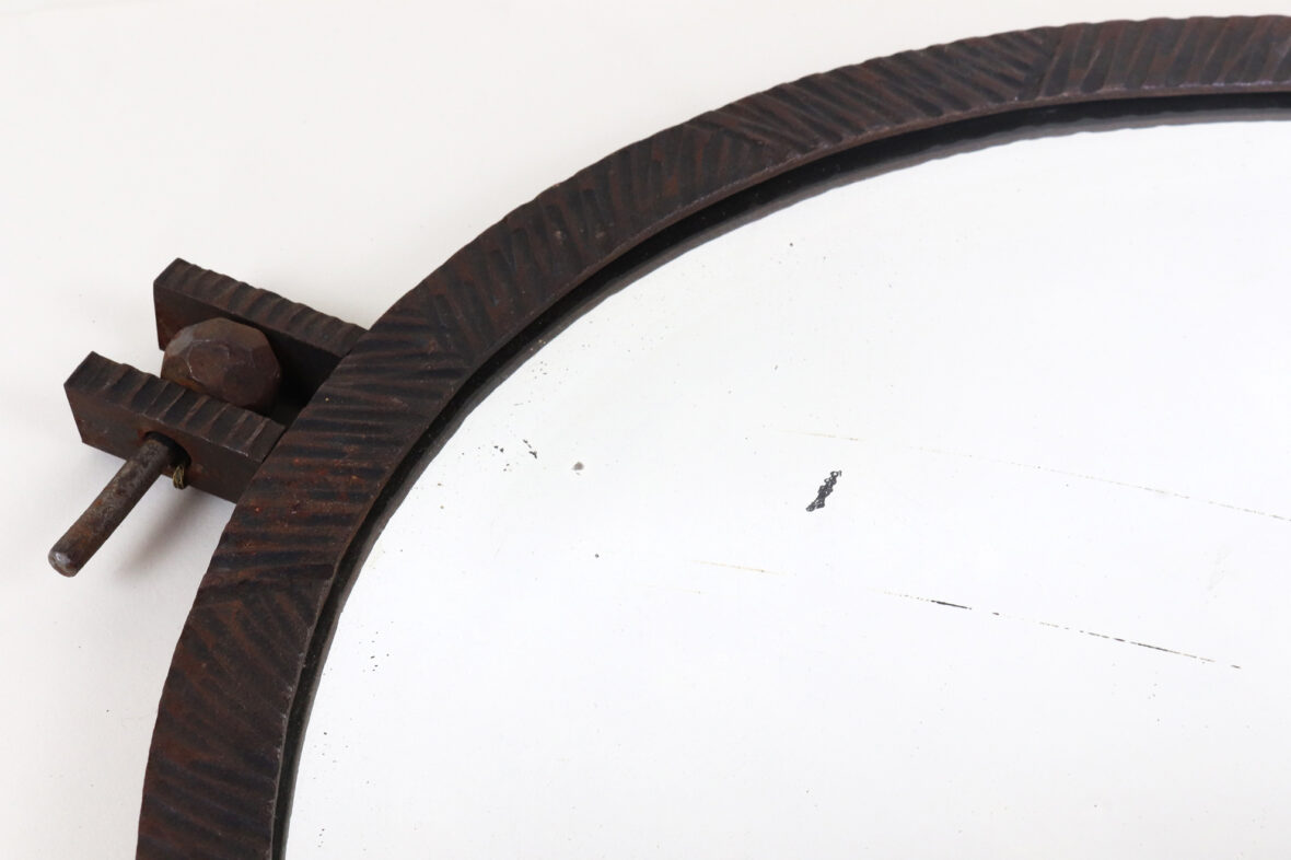Miroir ovale en fer forgé sommé d’un bouquet stylisé. Epoque Art déco.