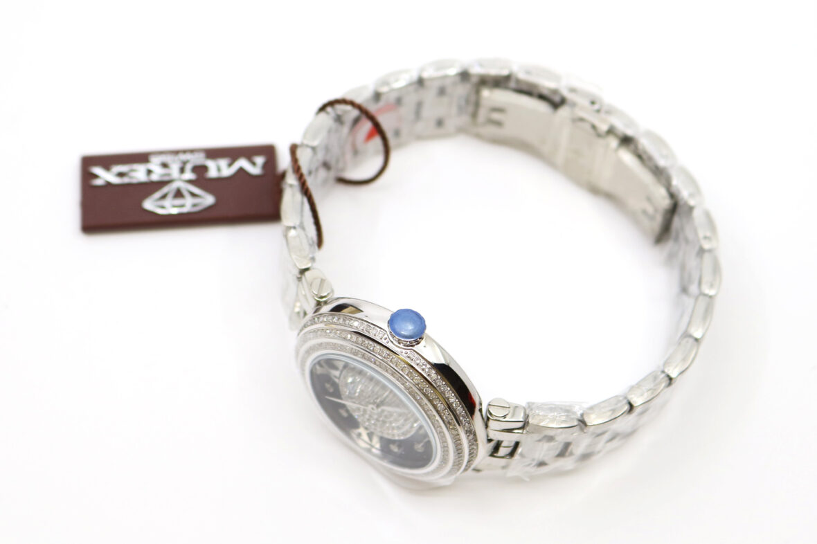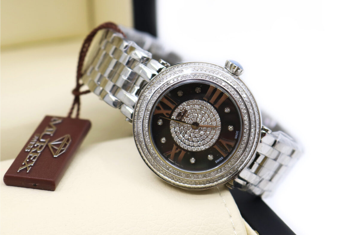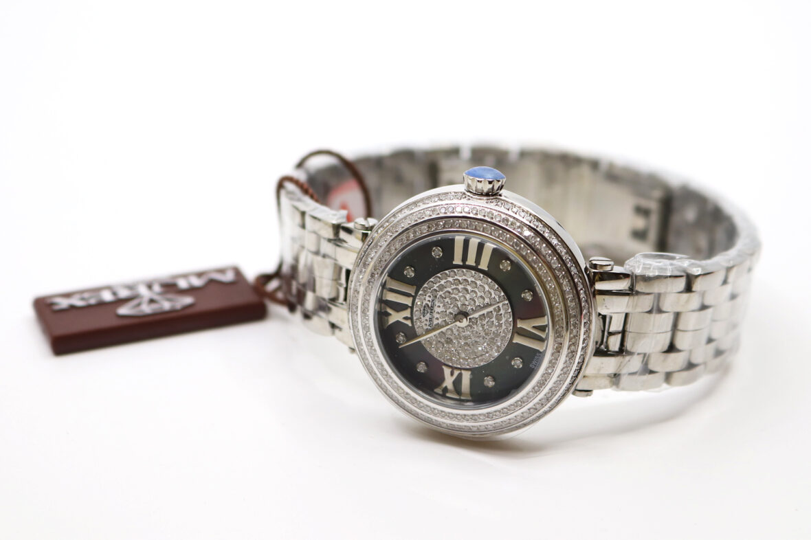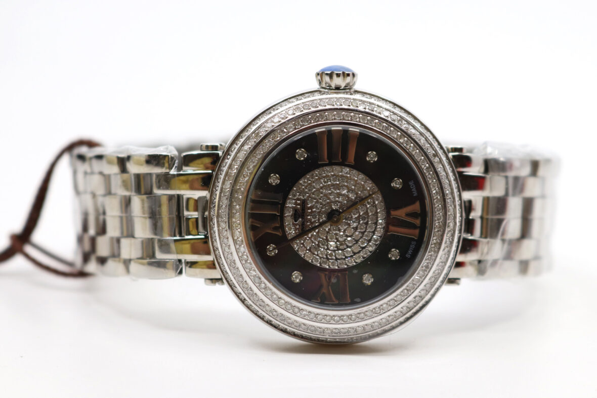 Montre bracelet de dame en acier, la lunette et le cadran sertis de 335 brillants (1,97 carats).