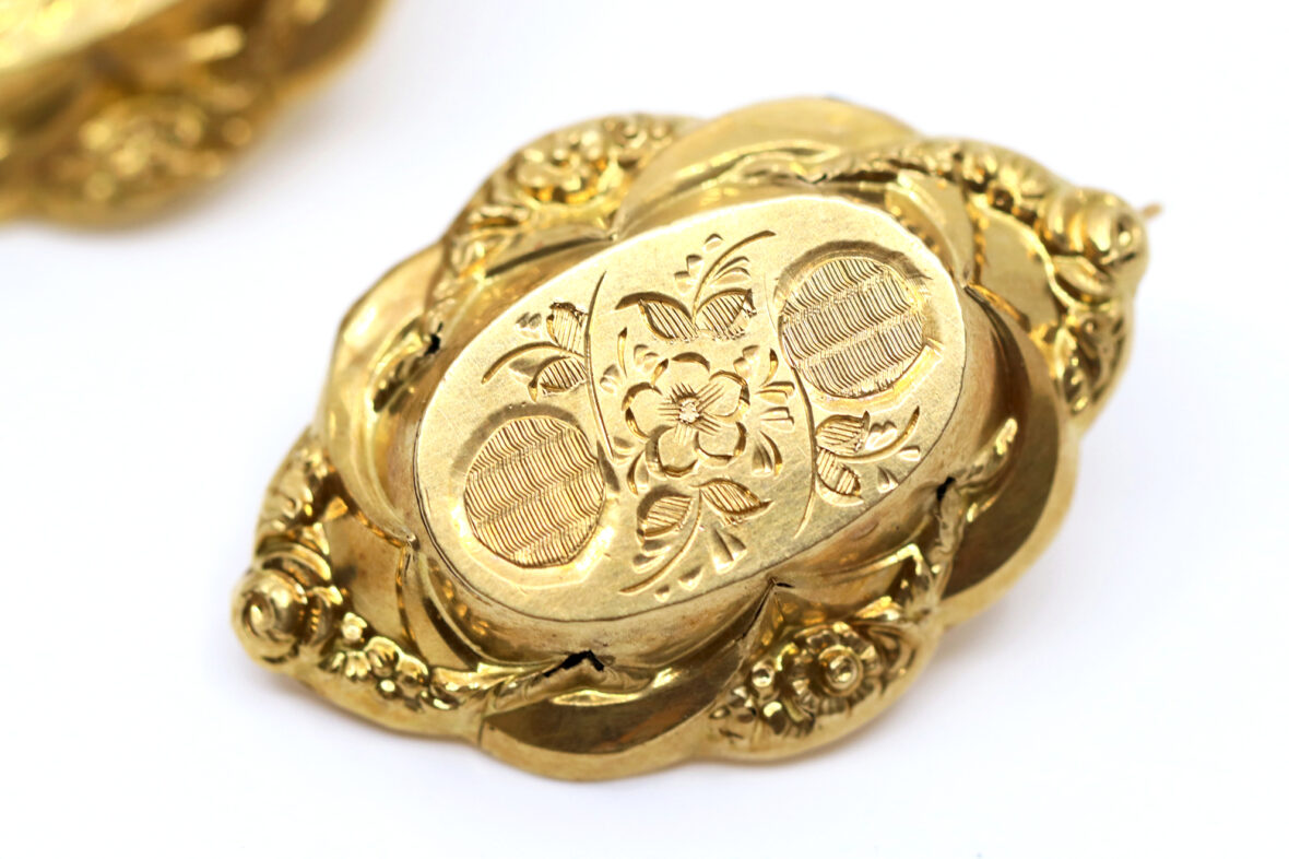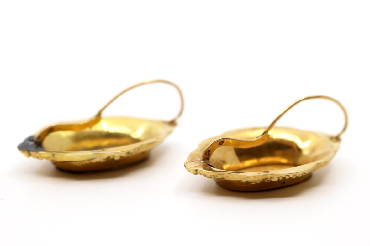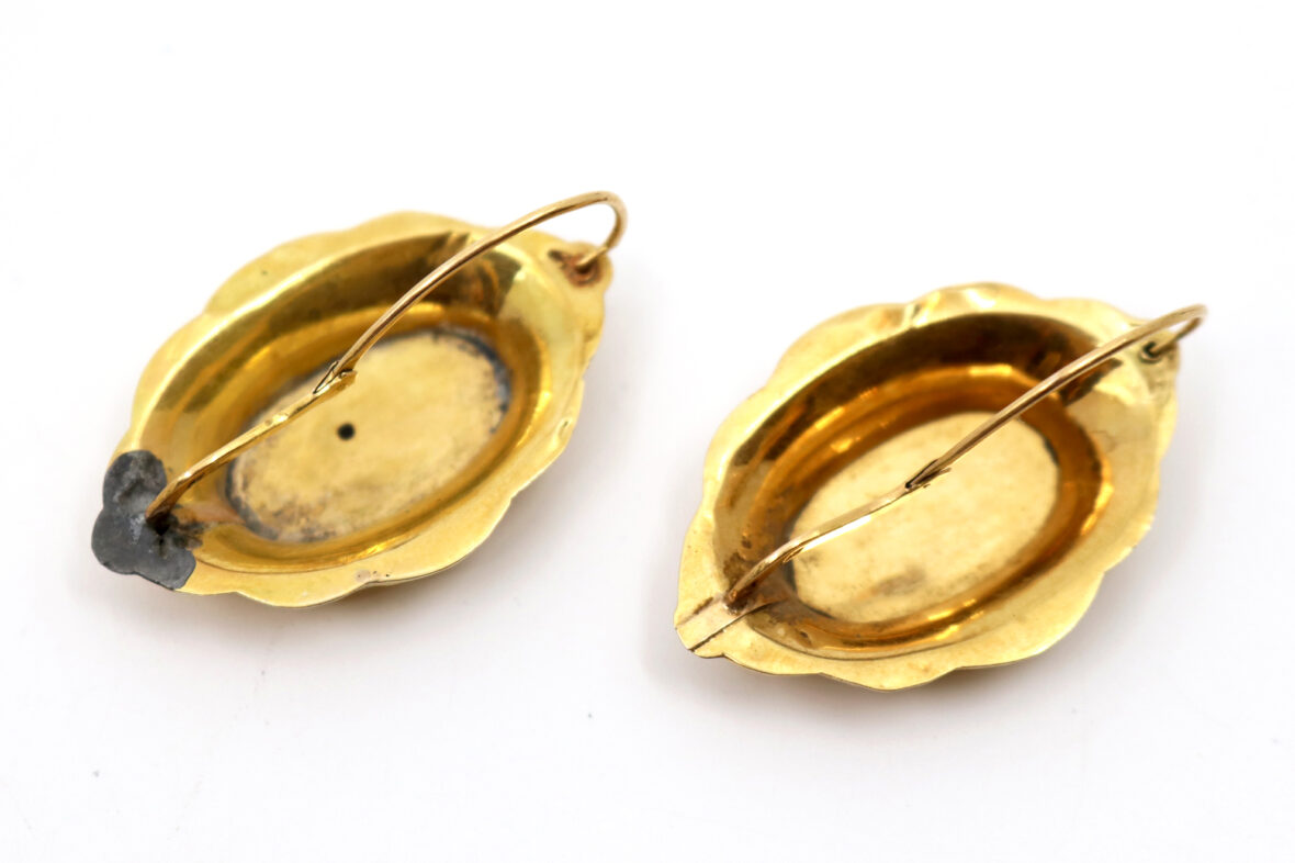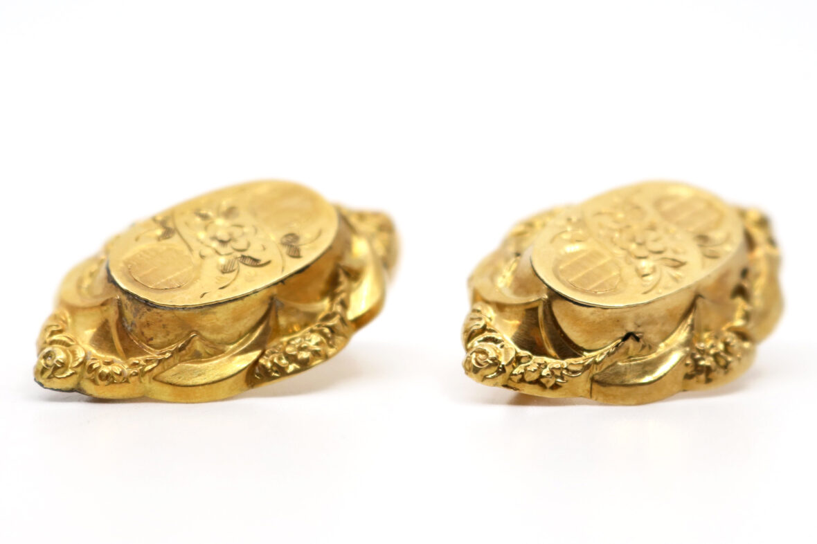 Paire de boucle d’oreilles en or jaune à décor de guilrandes fleuries.