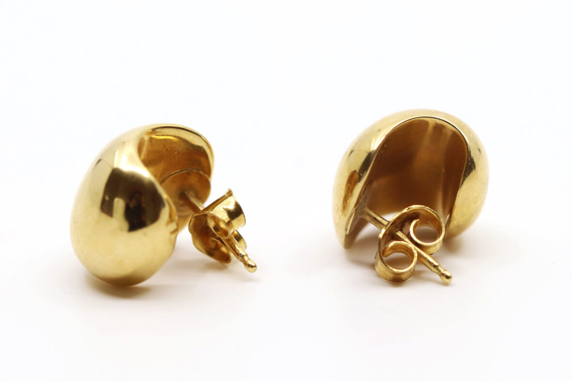 Paire de boucles d’oreille en or jaune bombée. Poids : 2,1 g
