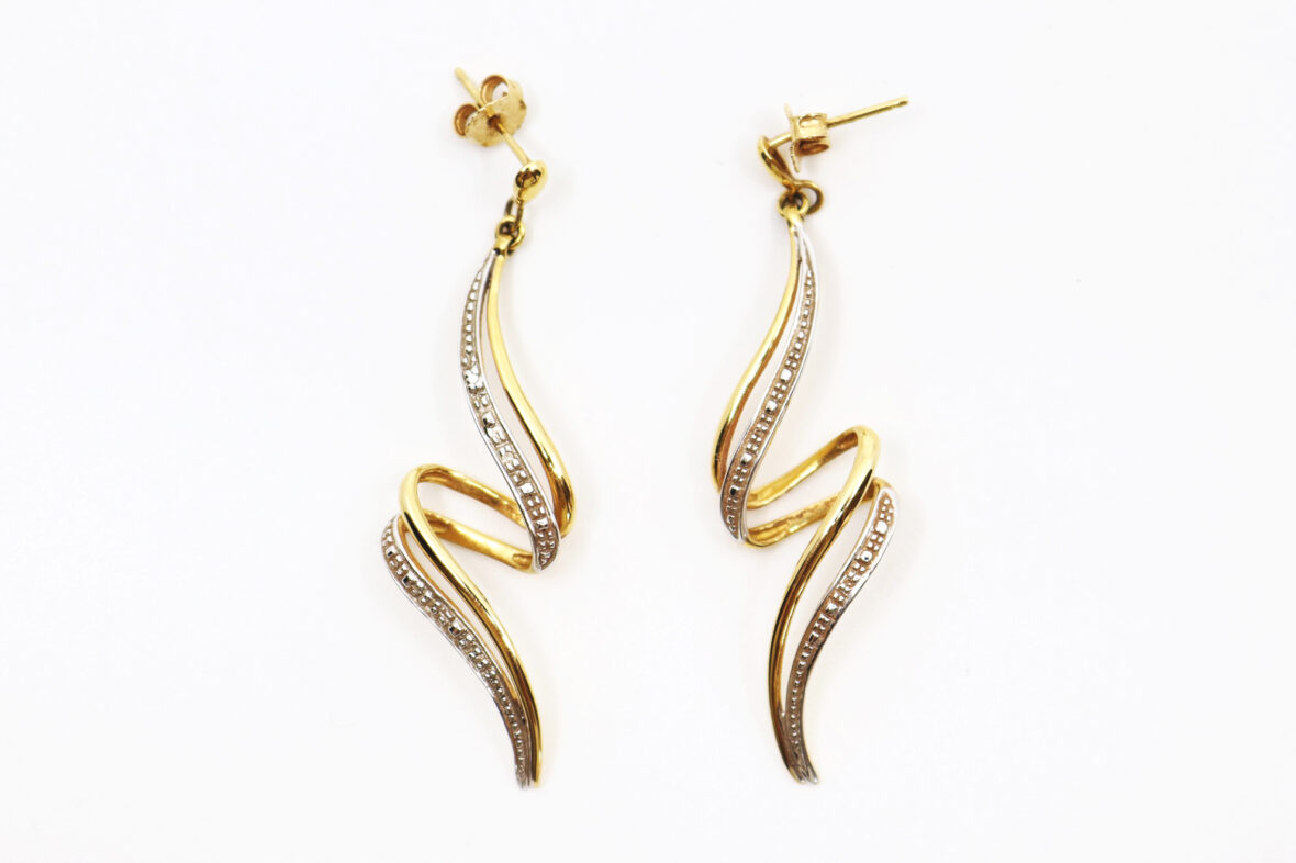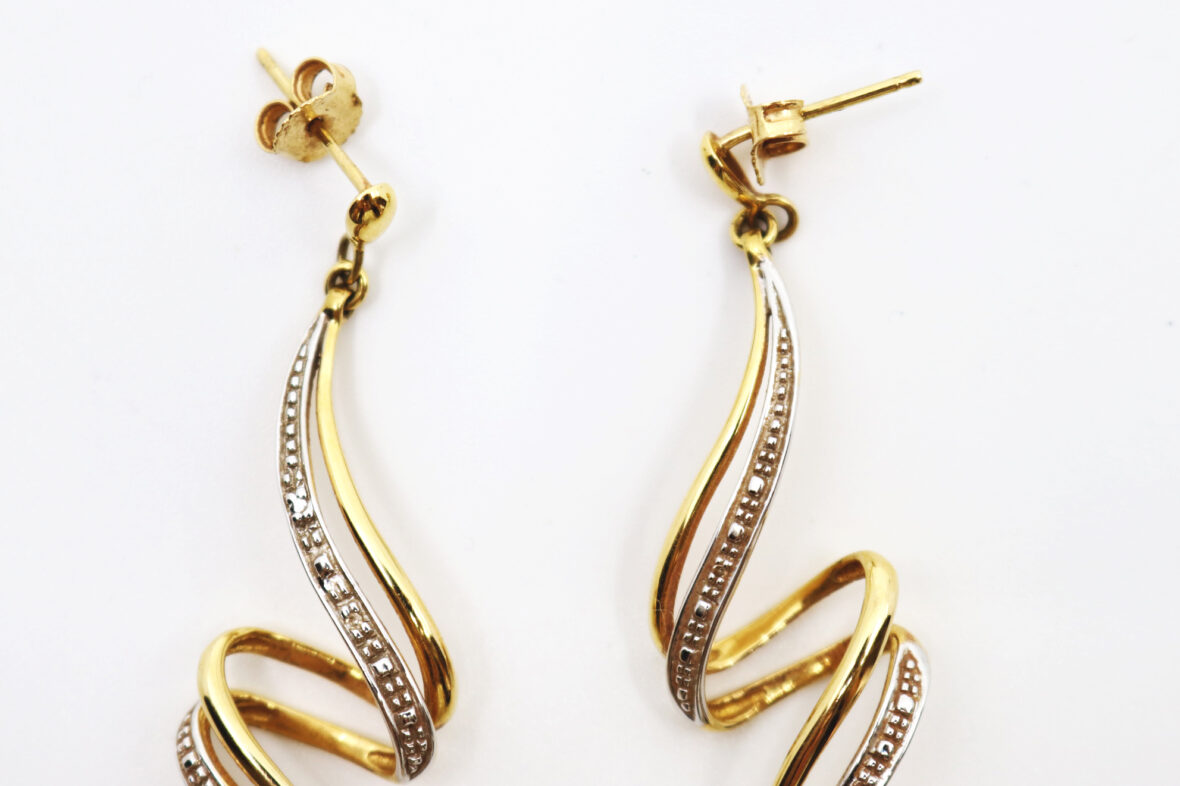 Paire de boucles d’oreilles en or jaune et gris. Poids : 4,8 g