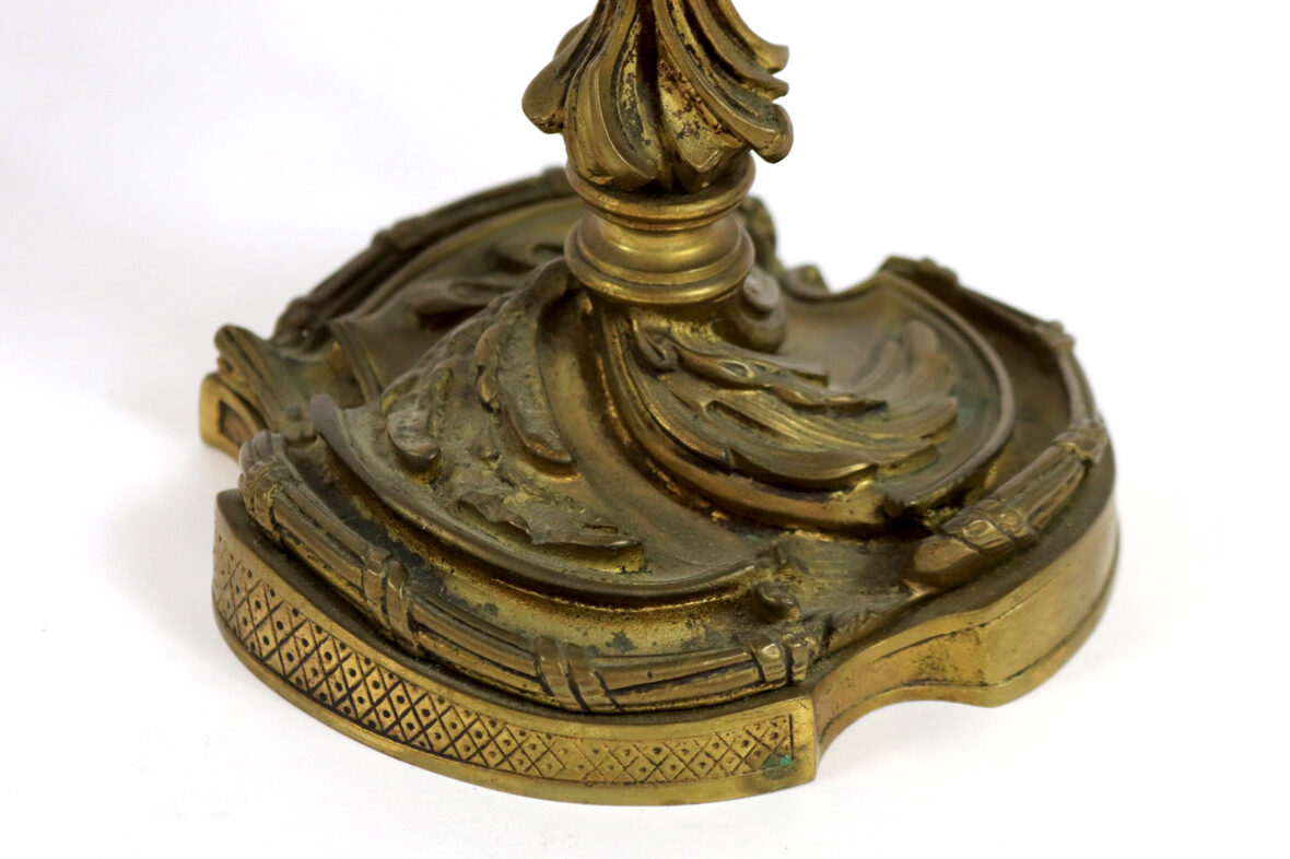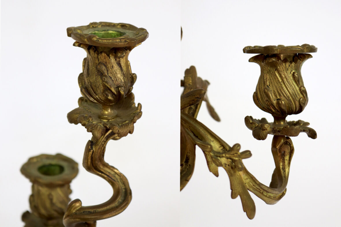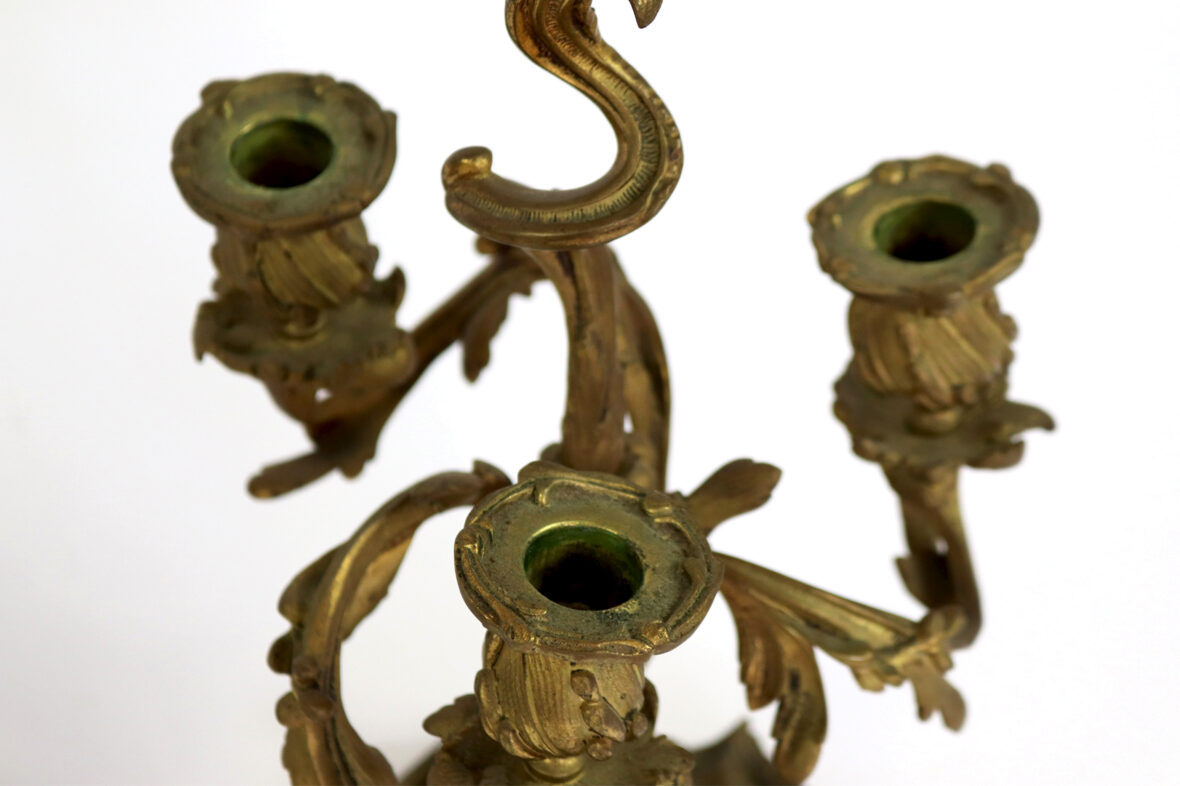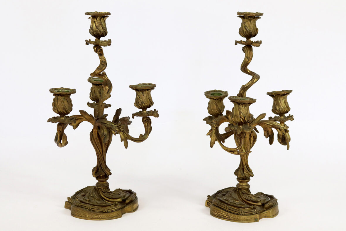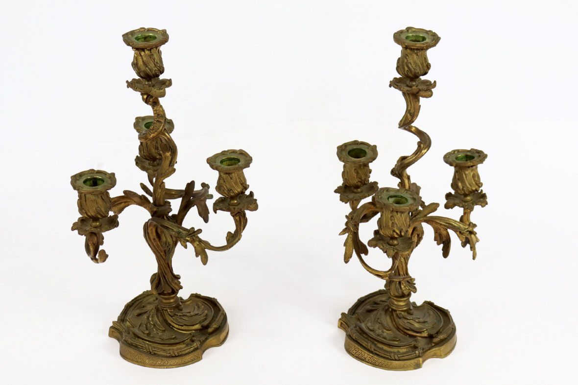 Paire de chandeliers en bronze doré à quatre bras de lumière.