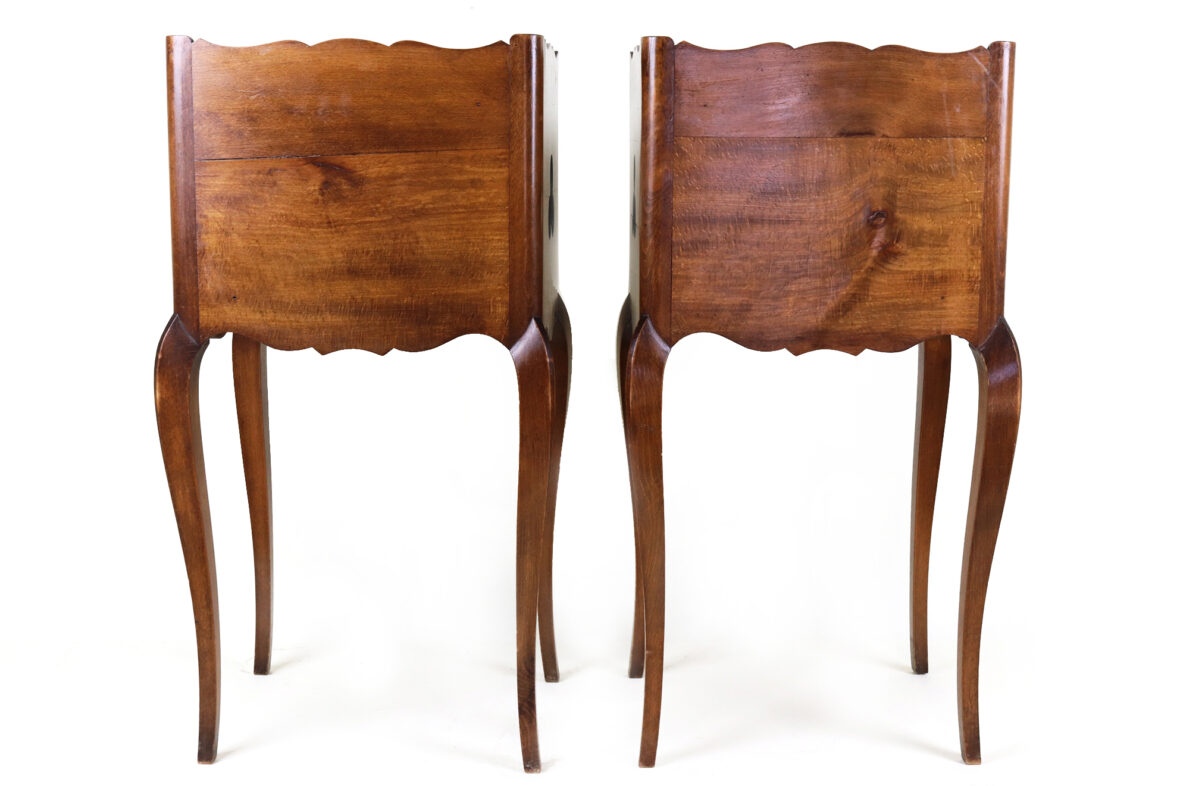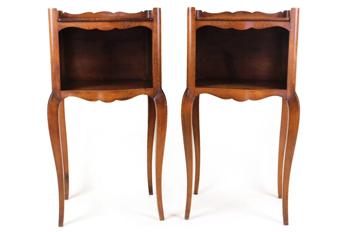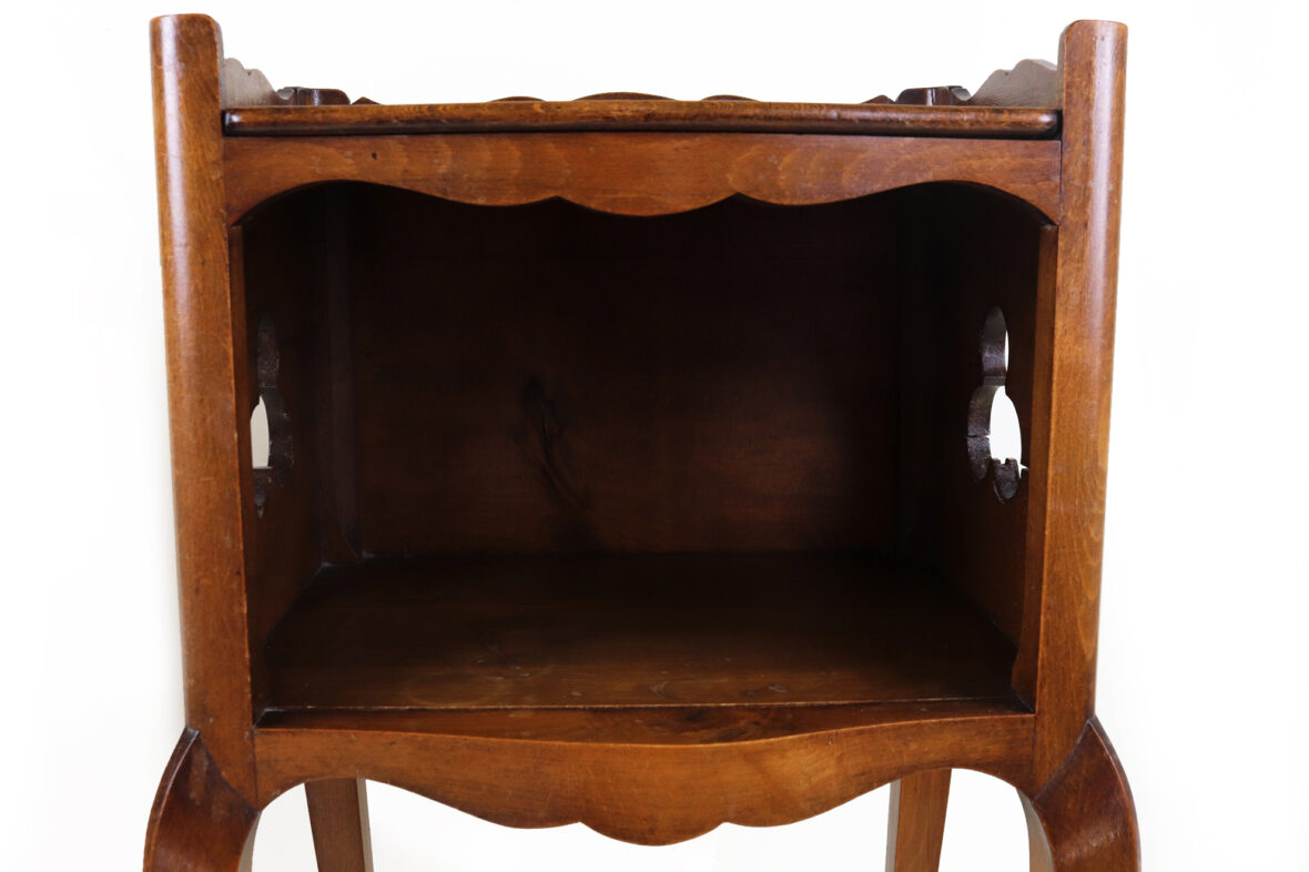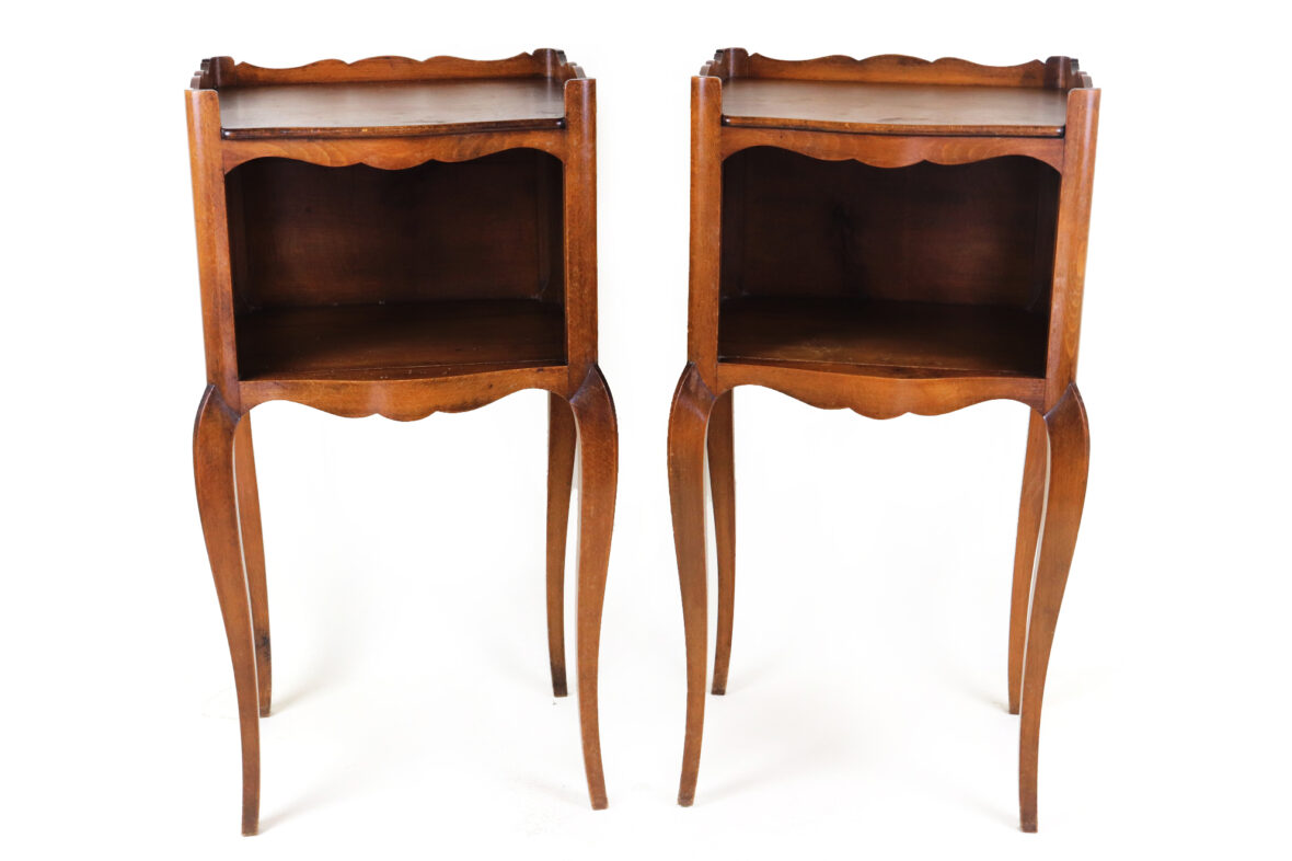 Paire de chevets en bois naturel à décor ajouré d’un trèfle sur les côtés, pieds cambrés.