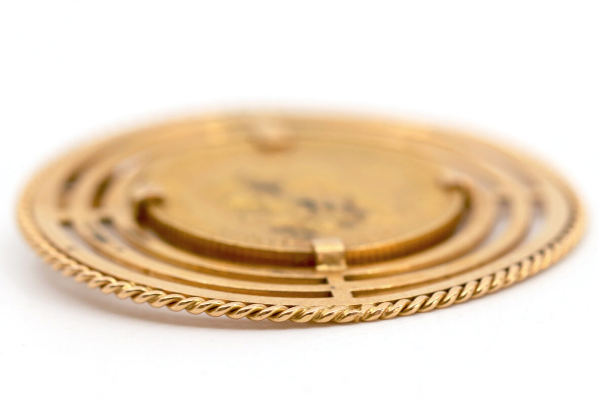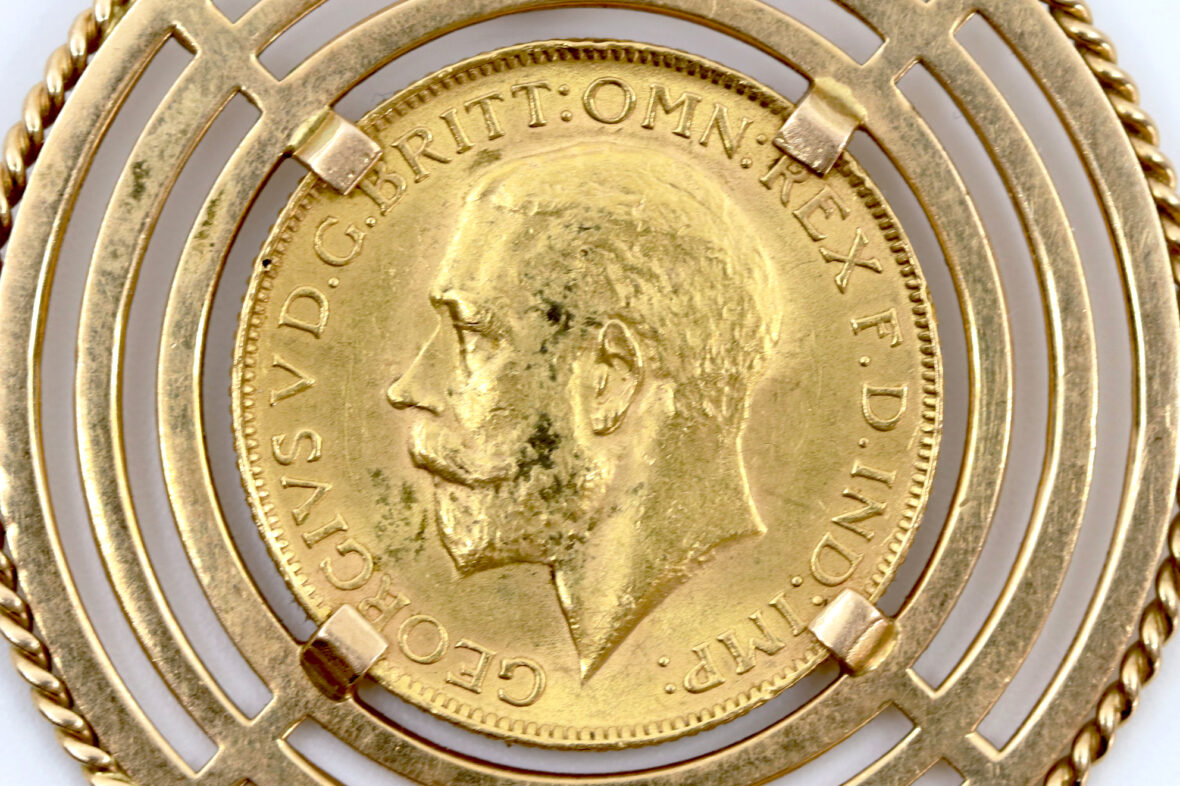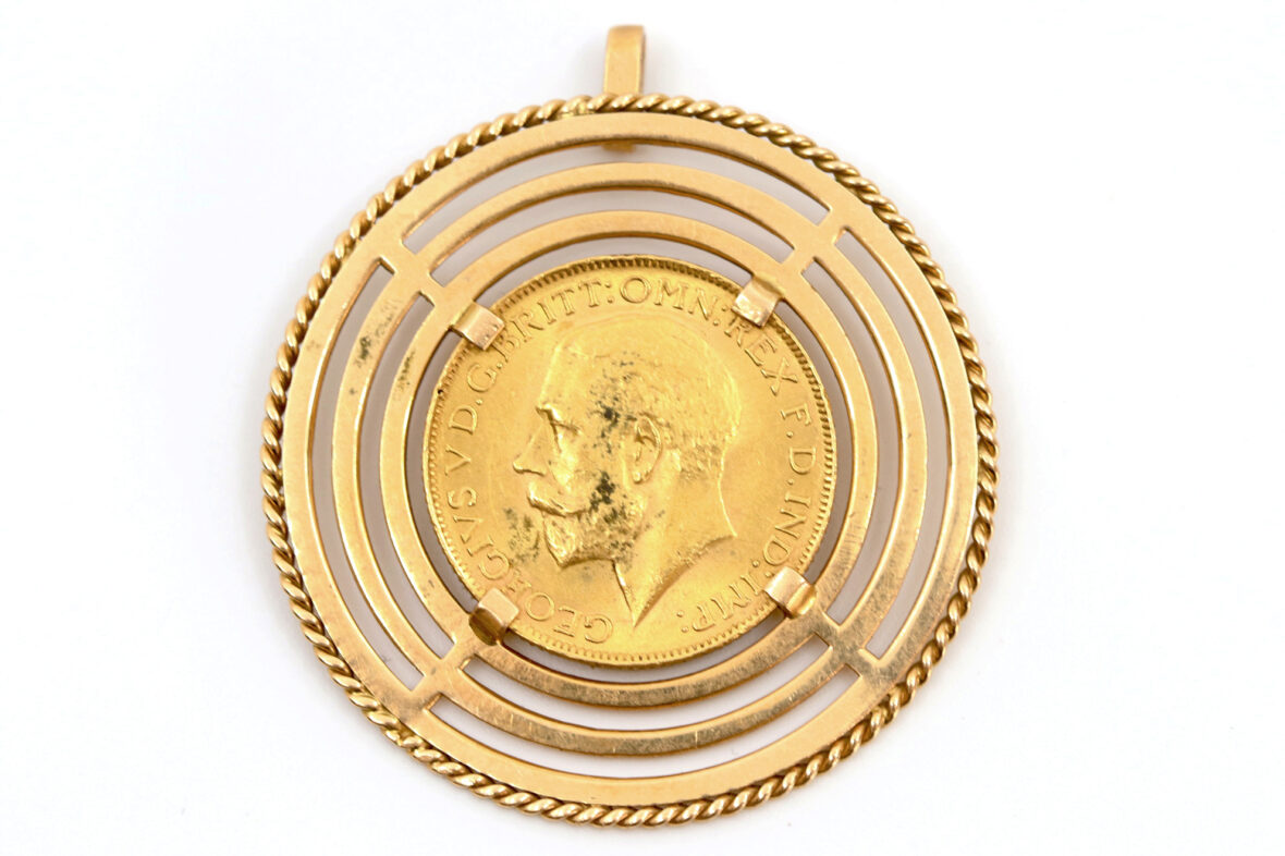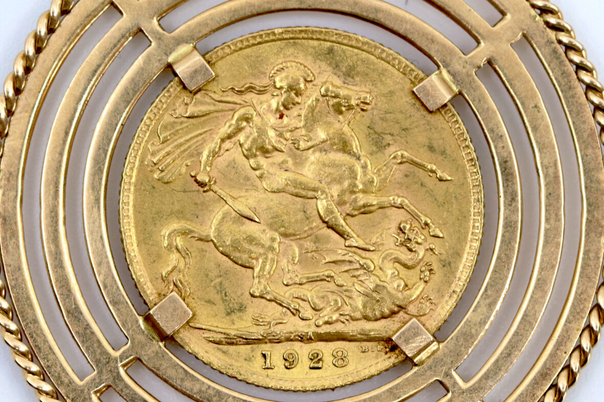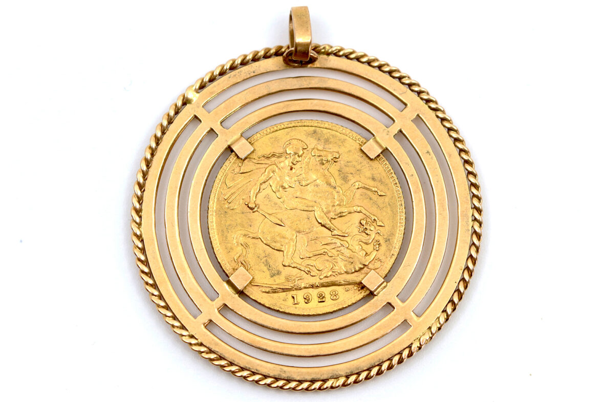 Pendentif en or jaune serti d’un Souverain George V en or daté 1928.