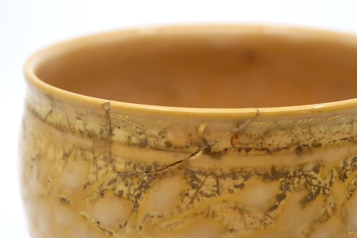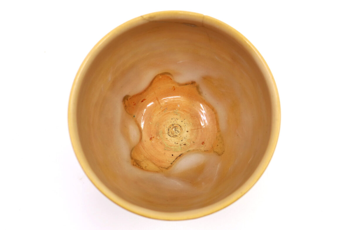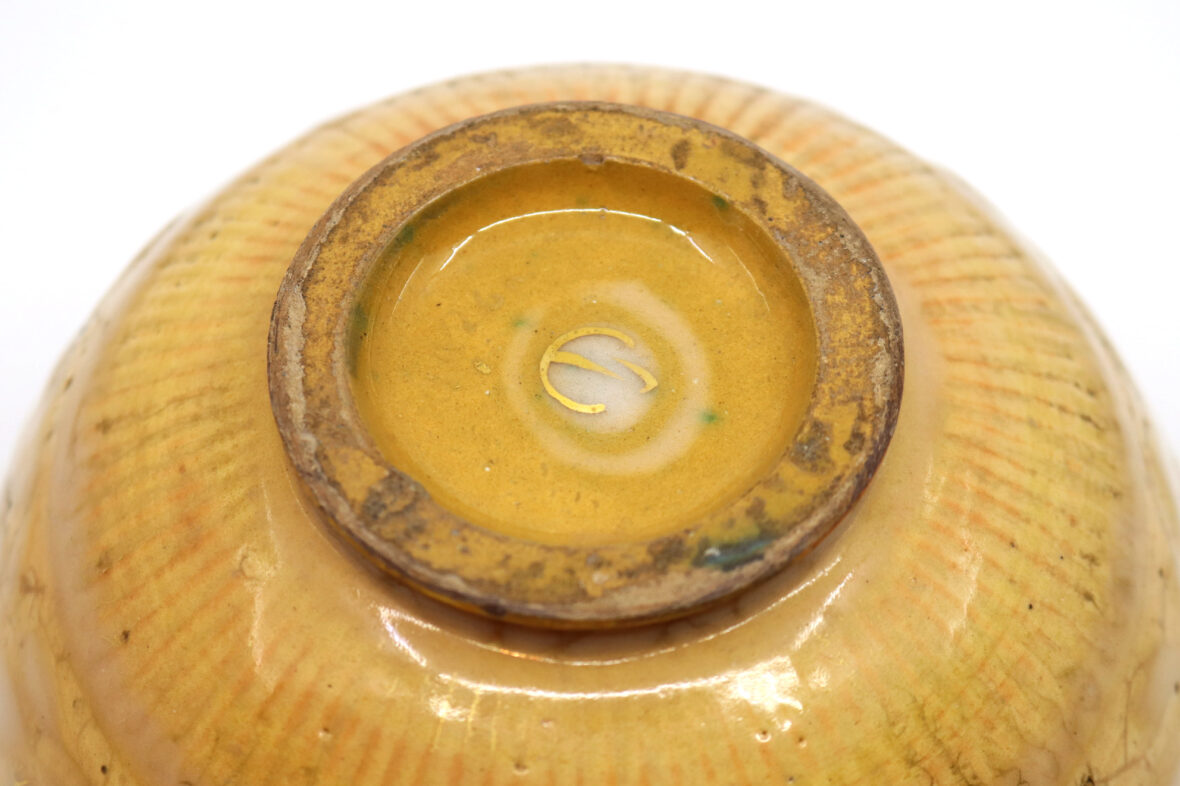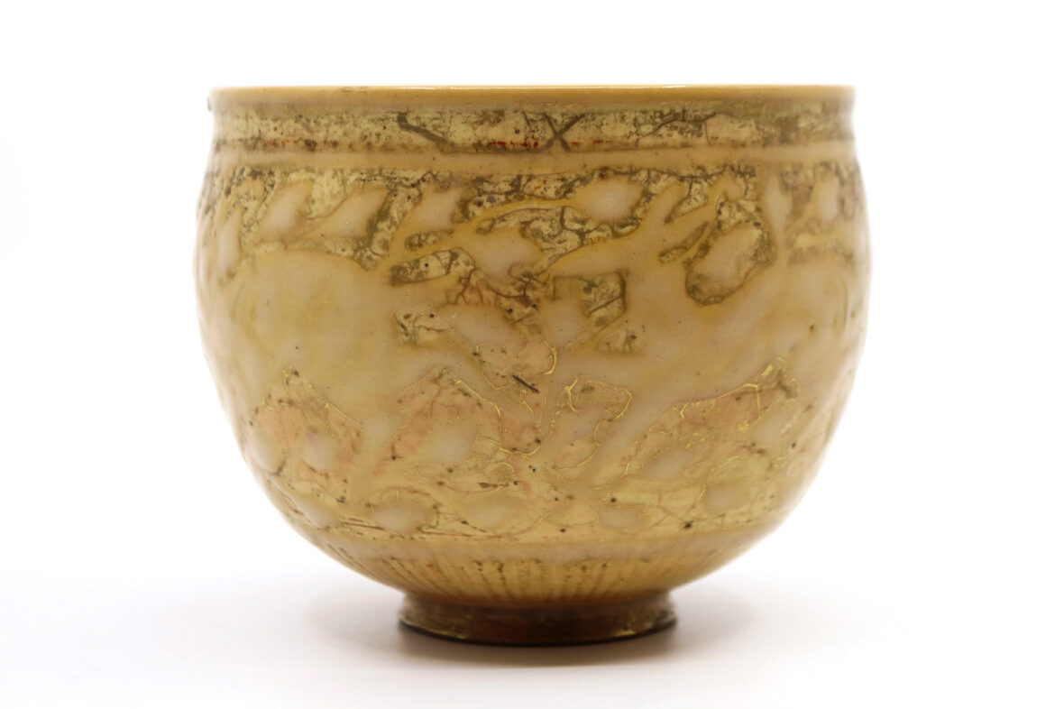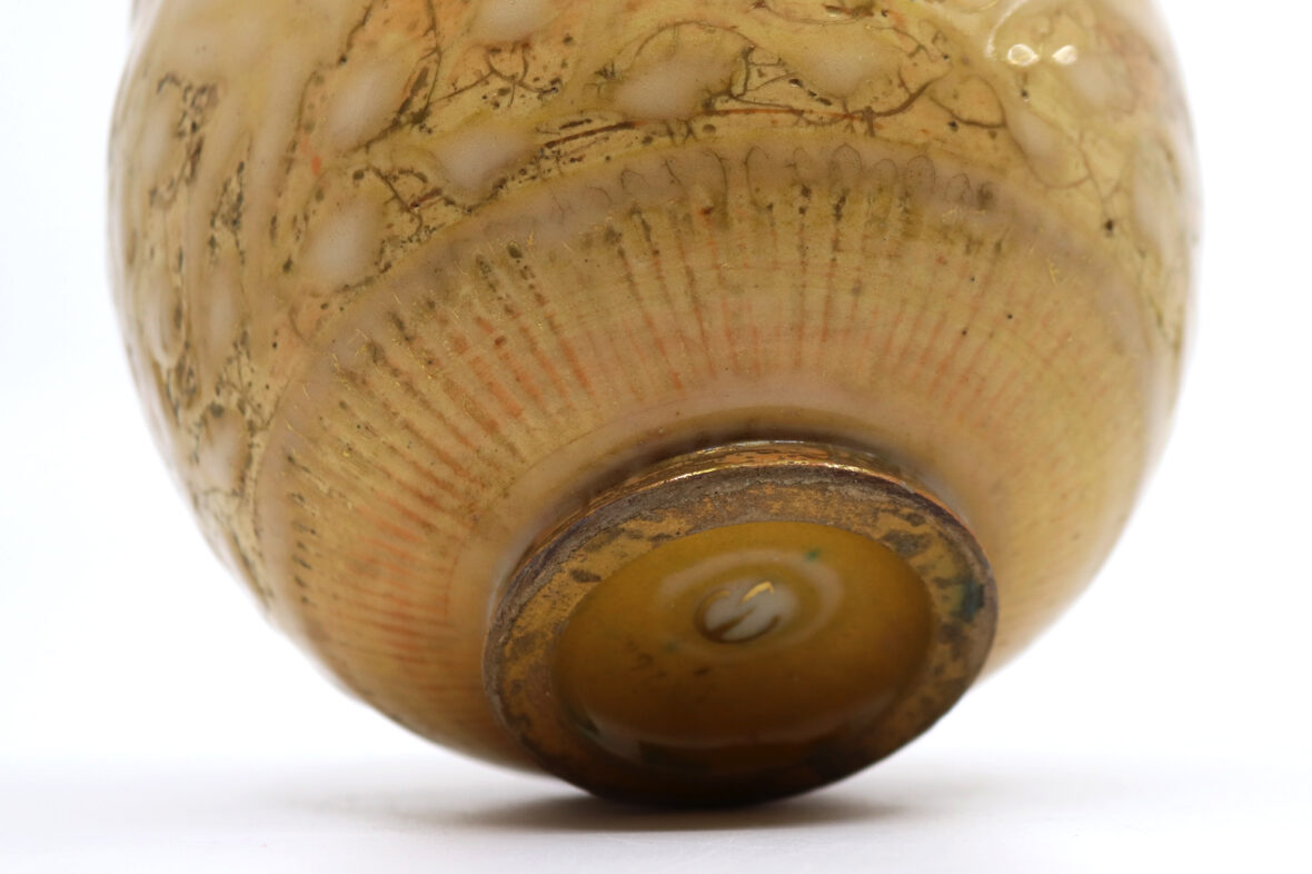 Petit cache-pot en céramique émaillée à décor irisé et rehauts de dorure.