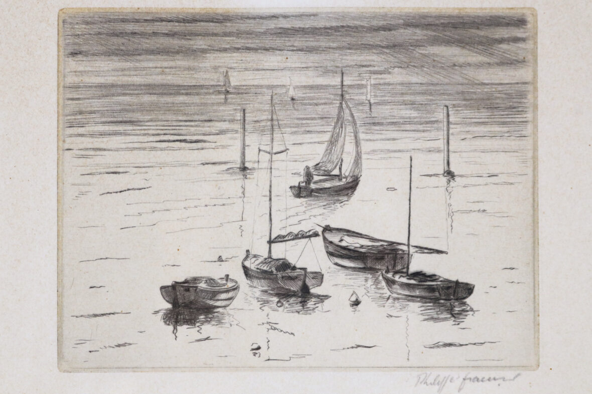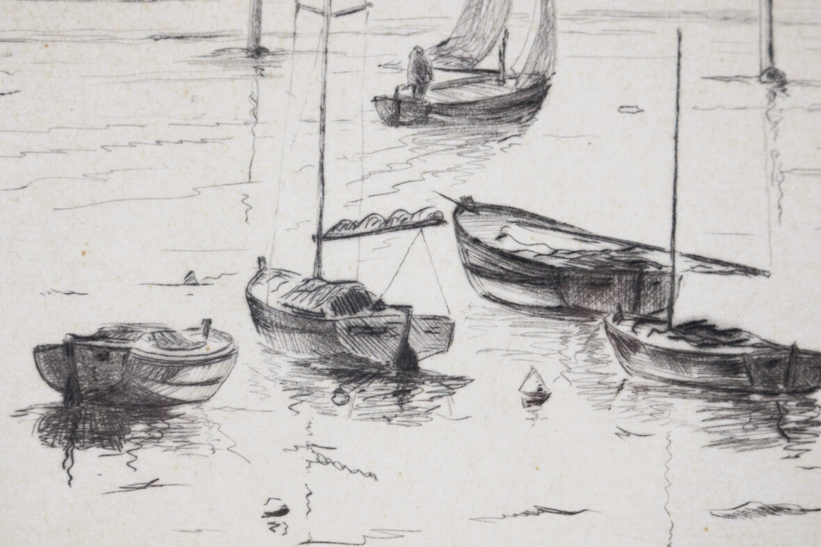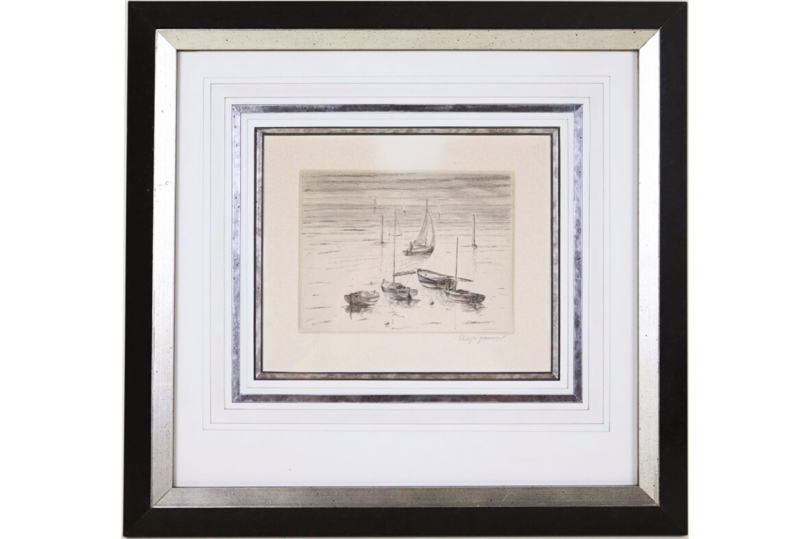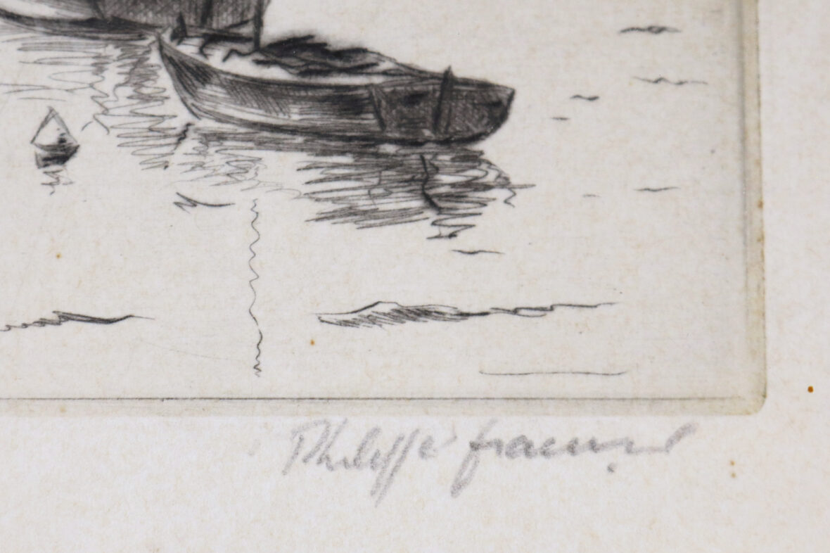 Pointe sèche. Signée en bas à droite.