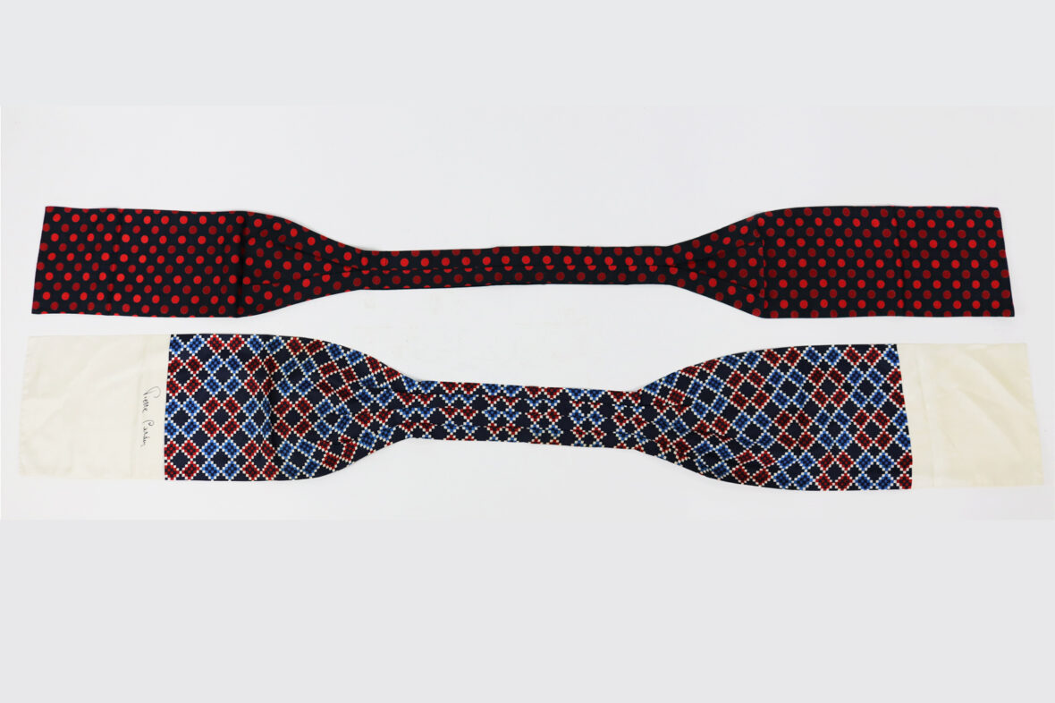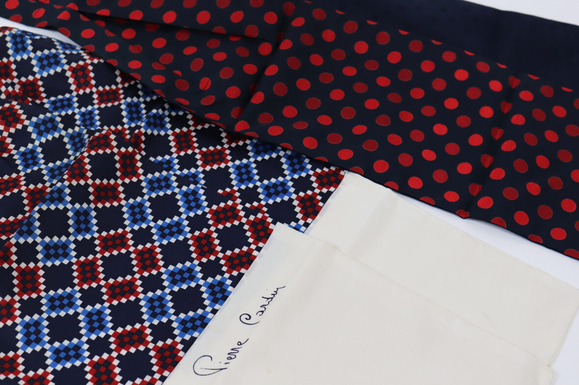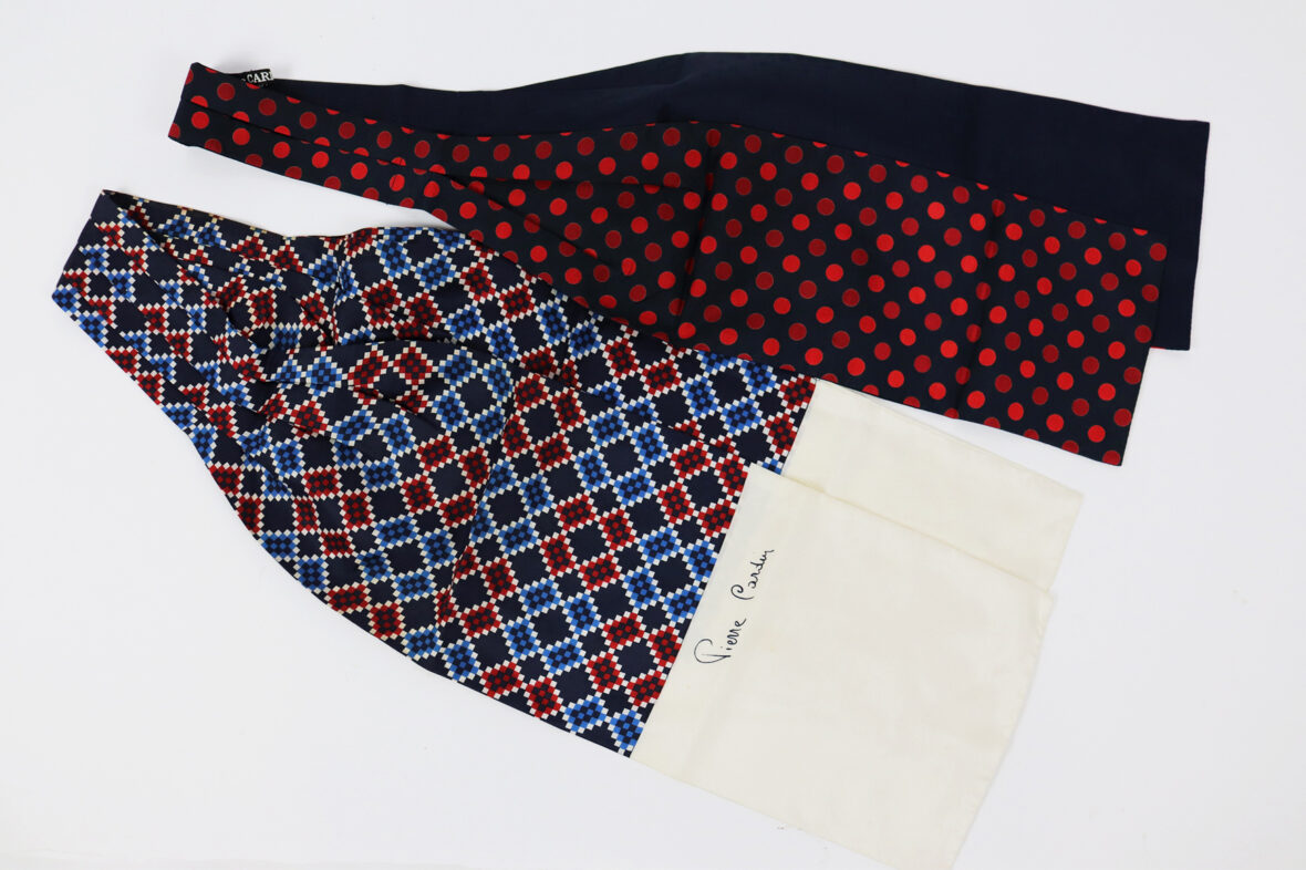 PIERRE CARDIN Ensemble de deux lavallières en soie. Long. : 133 et 137 cm
