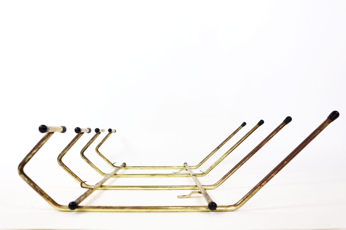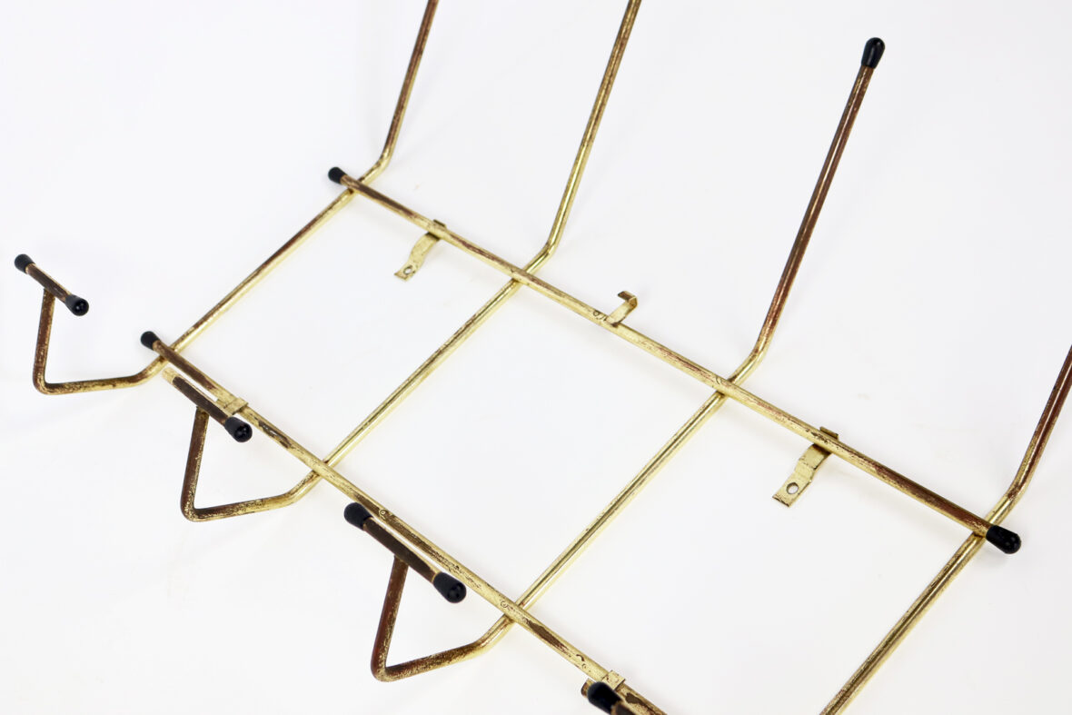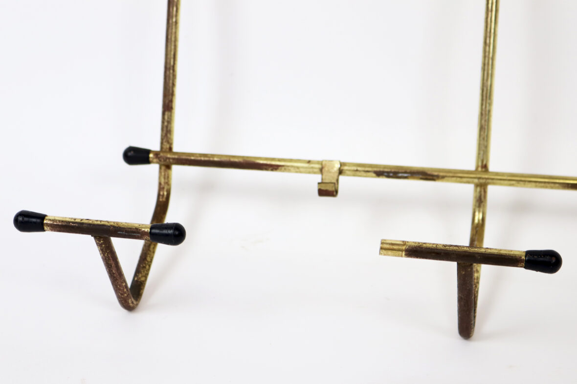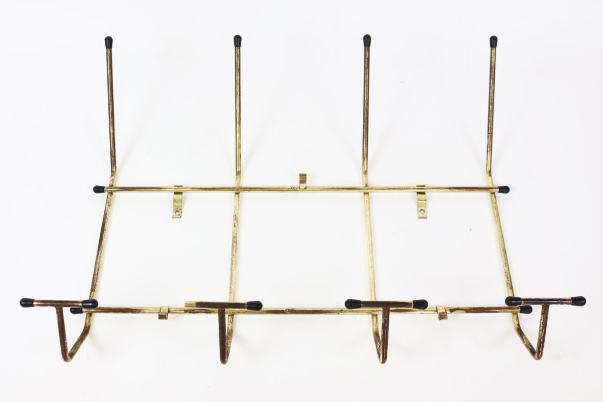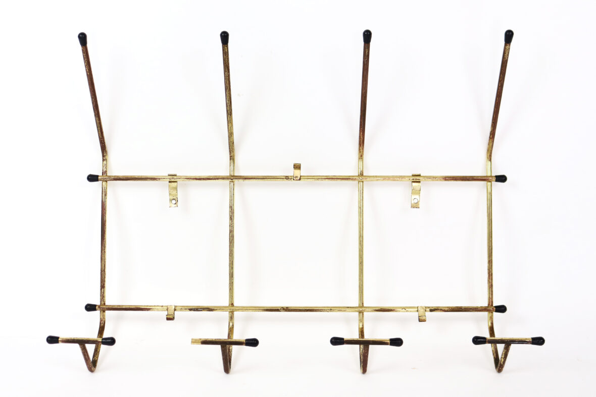 Porte-manteaux mural en métal doré formé de huit patères. XXe.