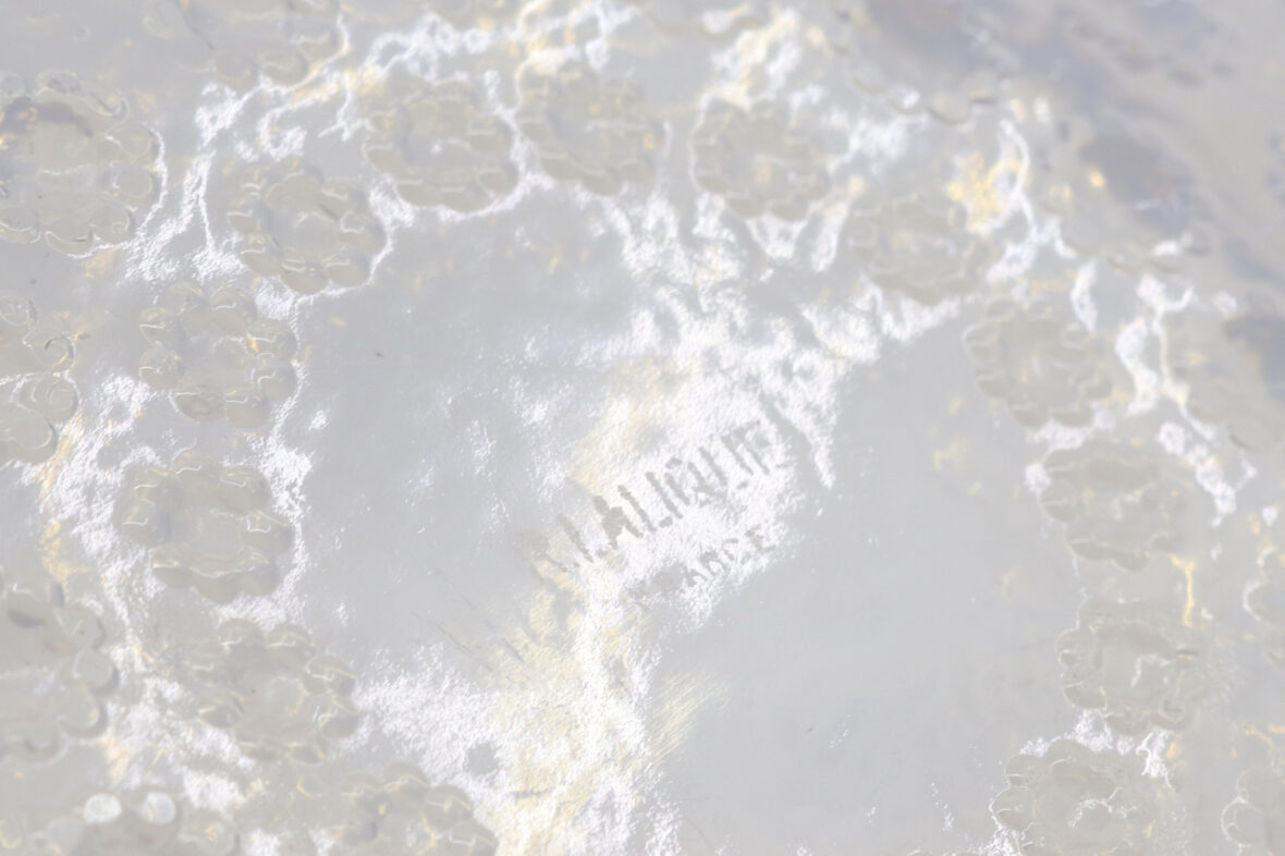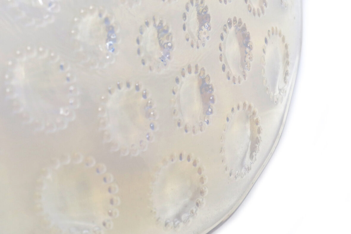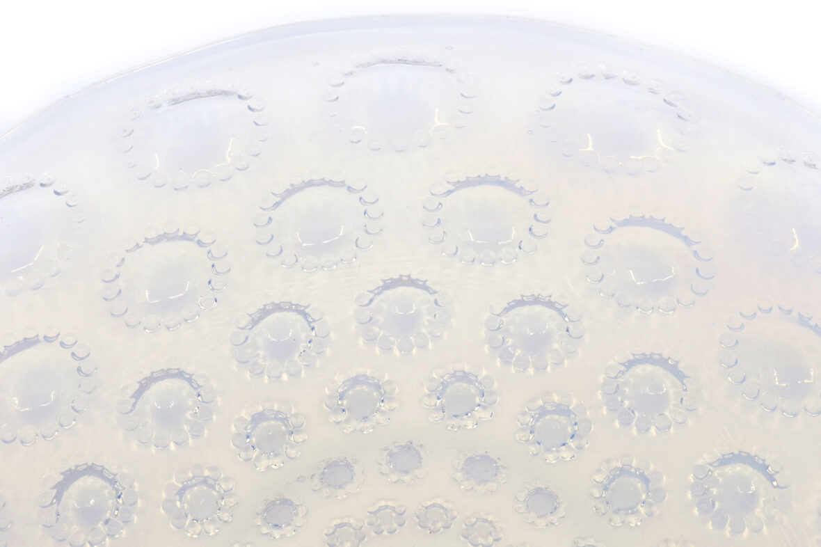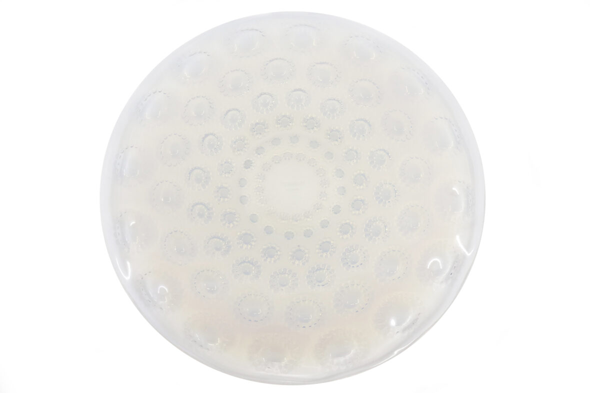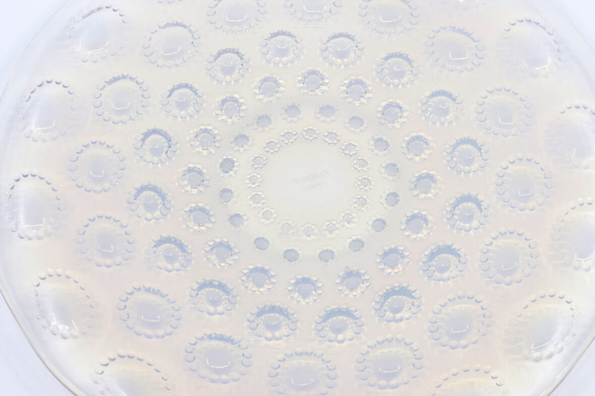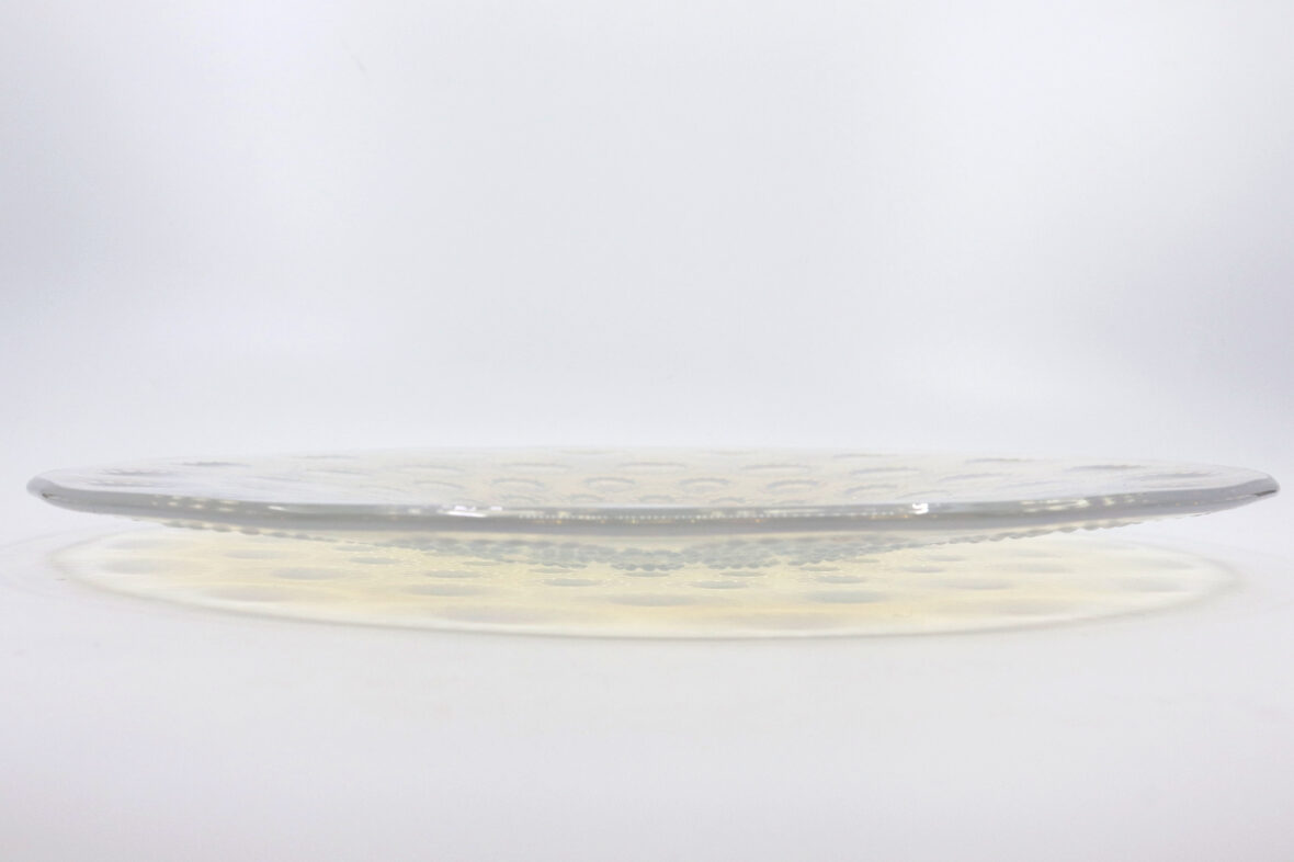 Plat rond modèle Aster en verre opalescent. Signé.