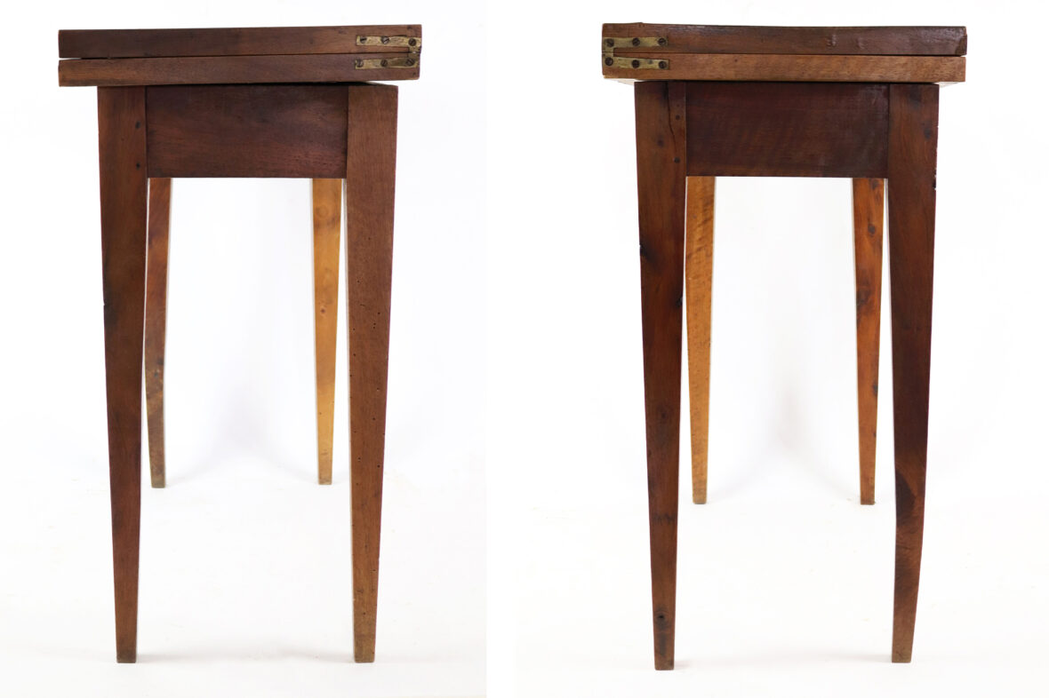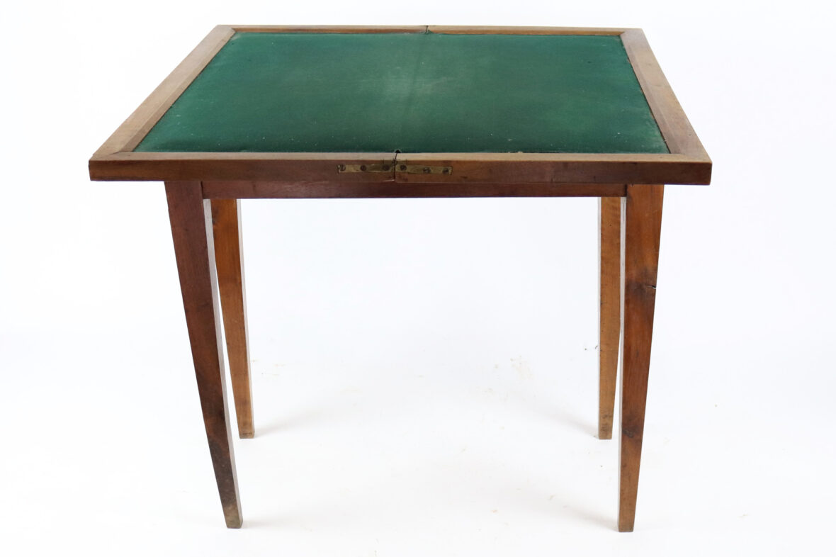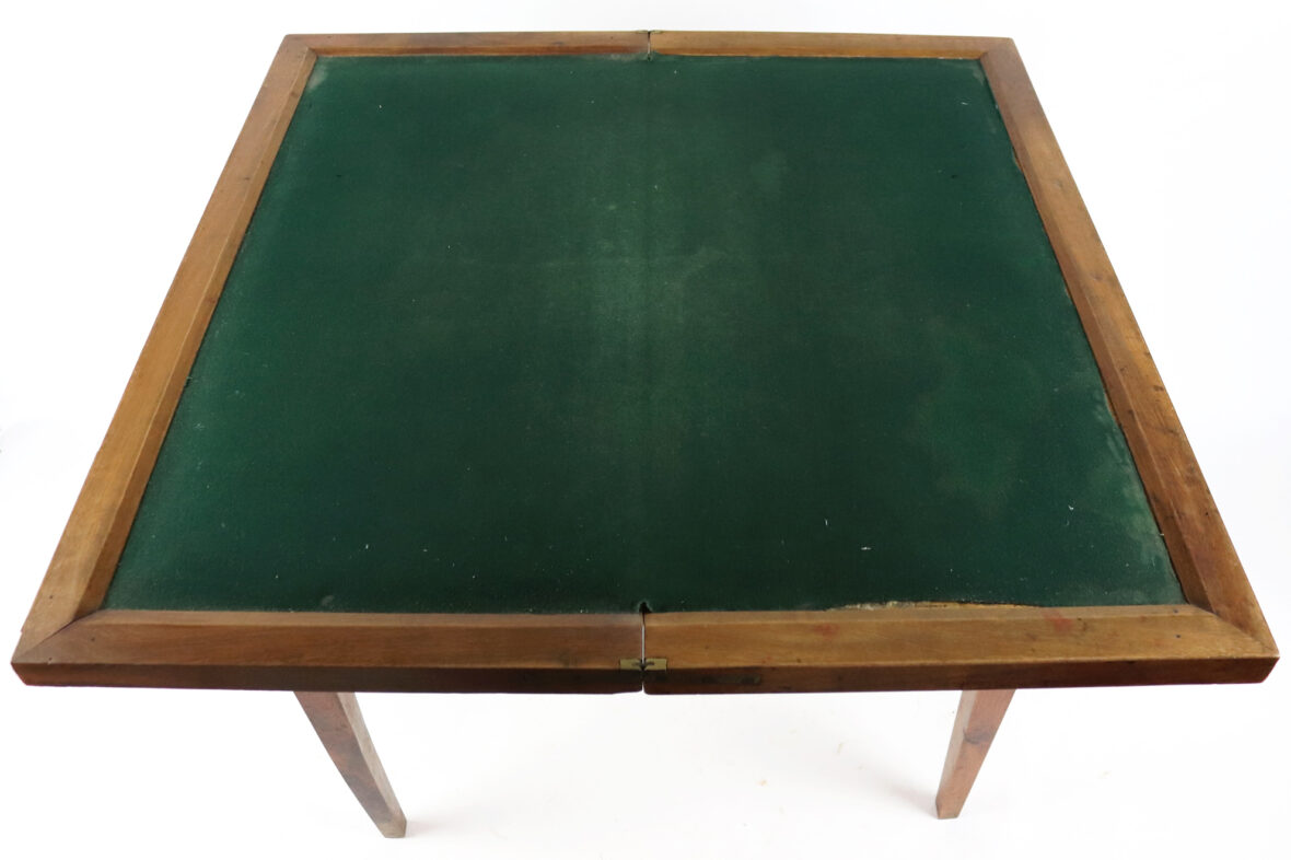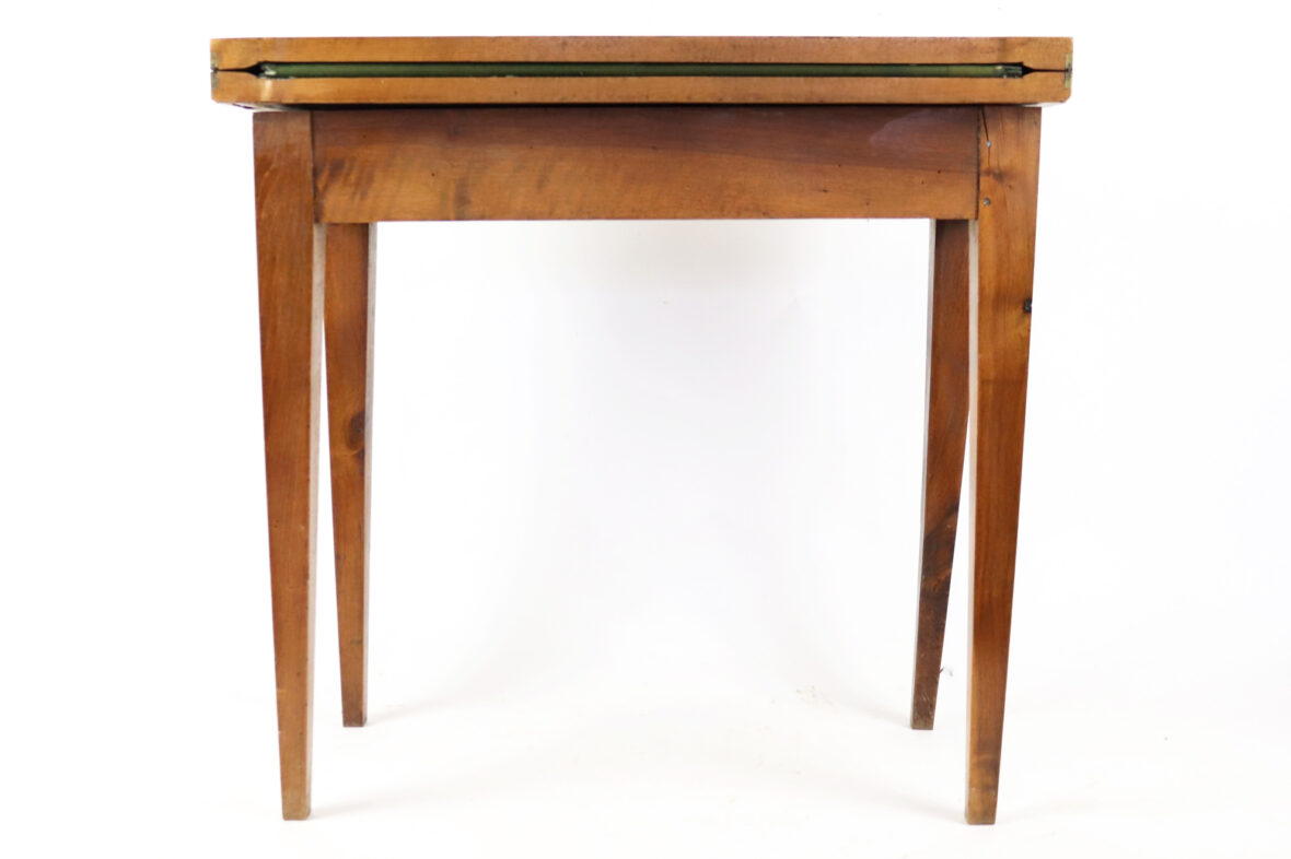 Table à jeux de style Louis XVI en bois de placage, piètement gaine.