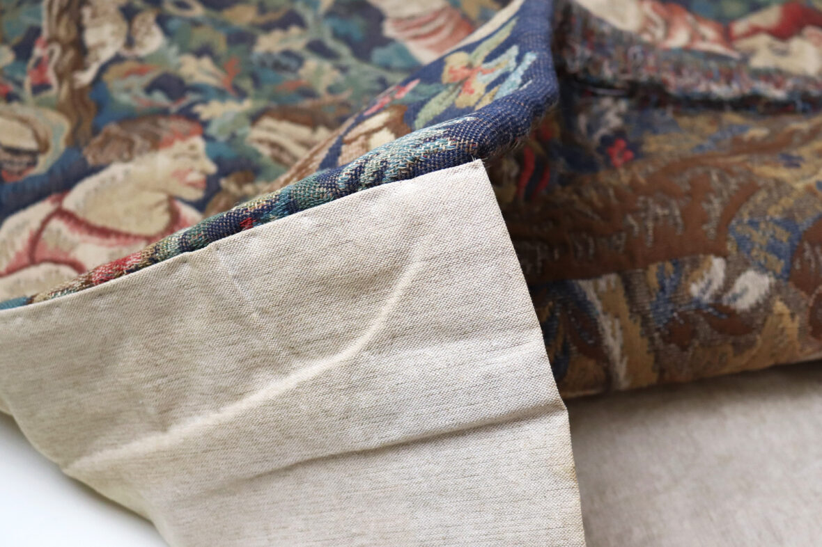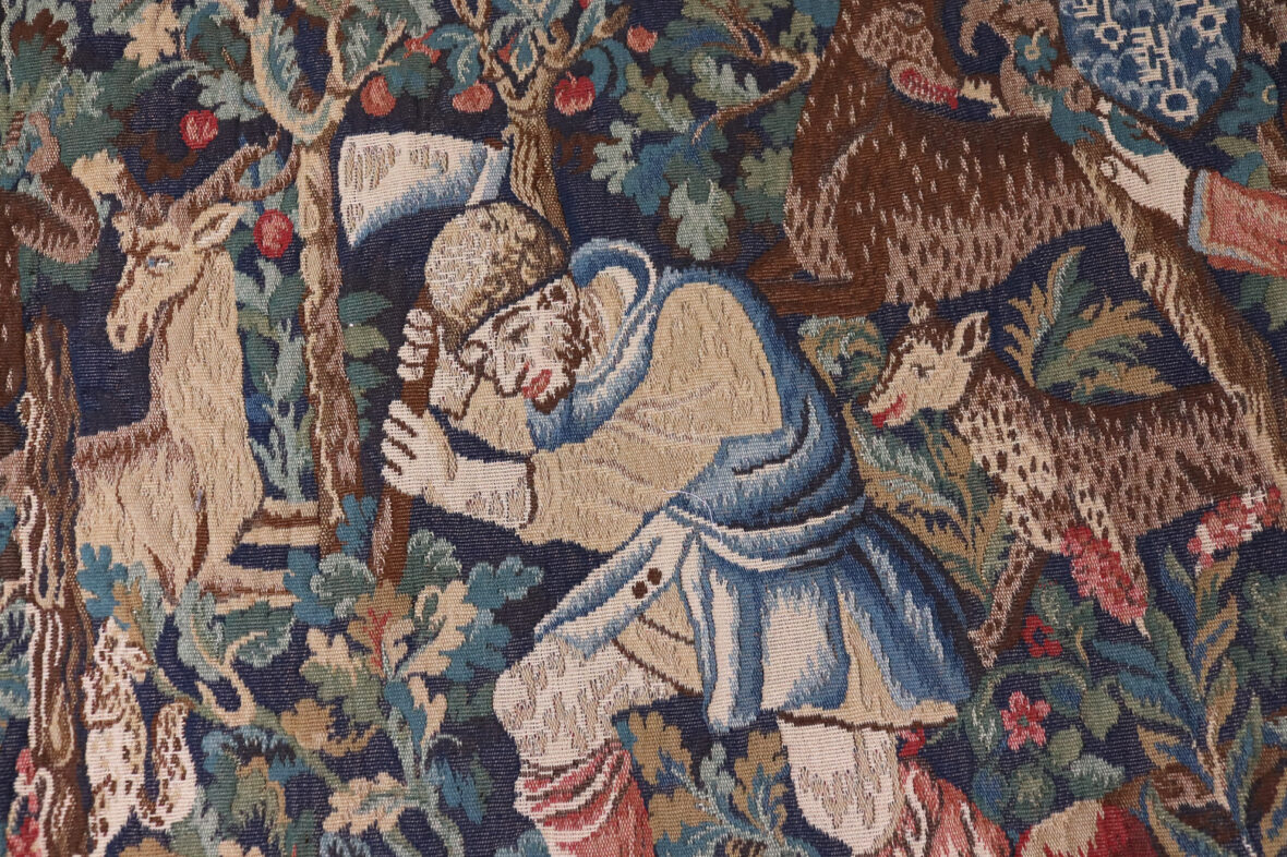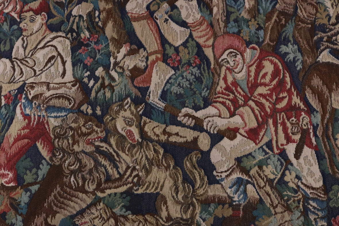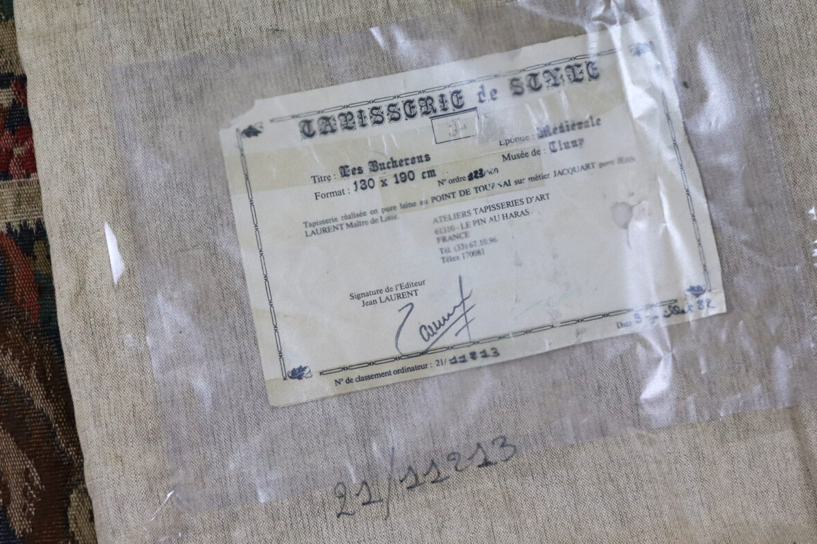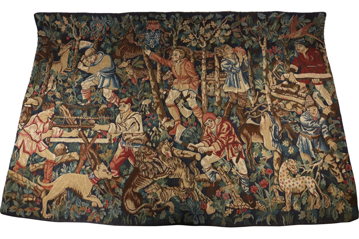 Tapisserie mécanique représentant « Les bûcherons » d’après une tapisserie du XVIIIe siècle conservée au Musée de Cluny.