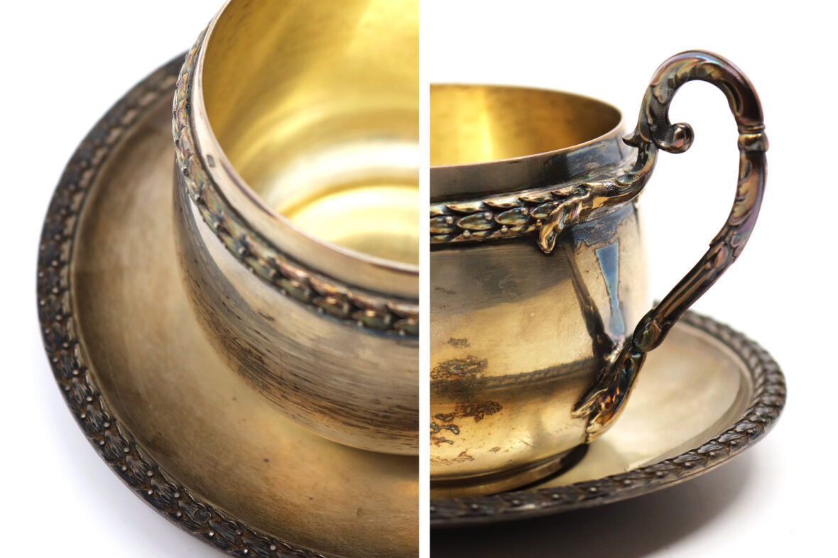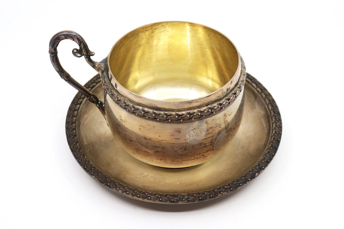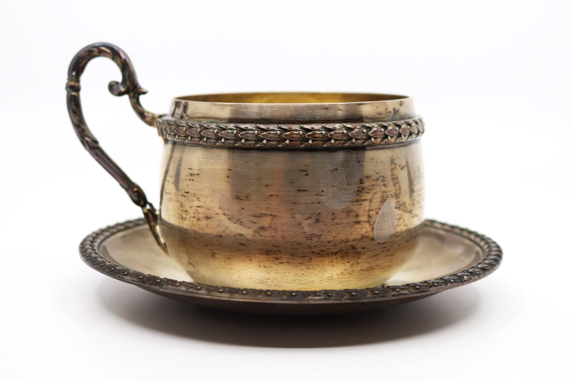 Tasse et sa sous-tasse en argent à décor de guirlande de laurier.