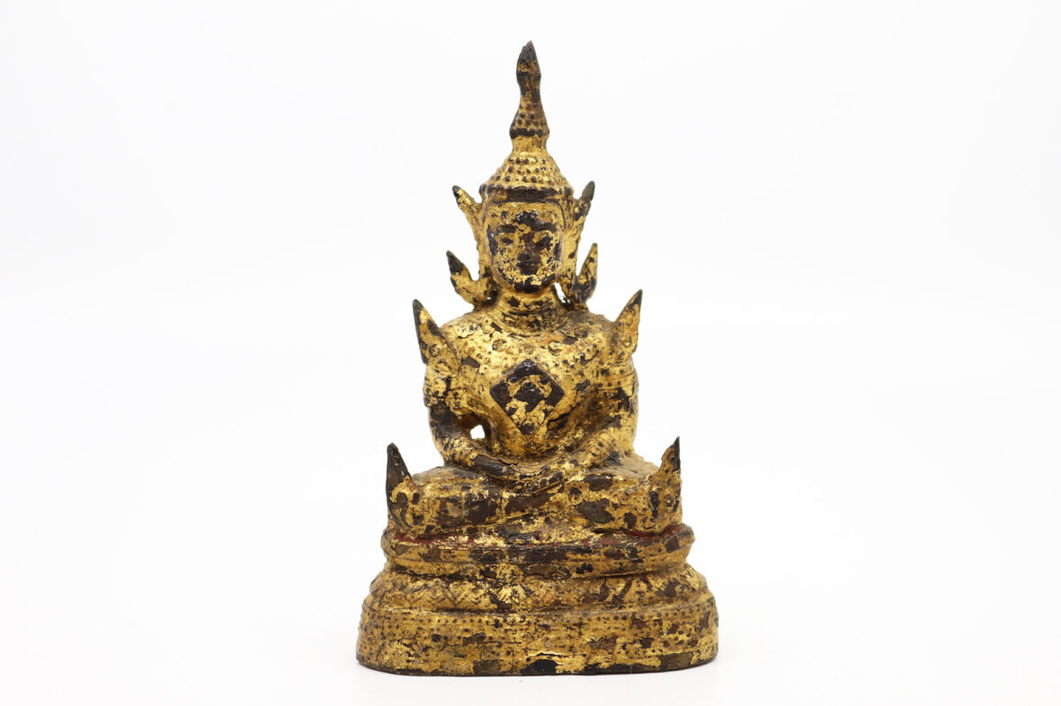 THAÏLANDE, Période Rattanakosin Petit bouddah en bronze doré Haut. : 11,4 cm