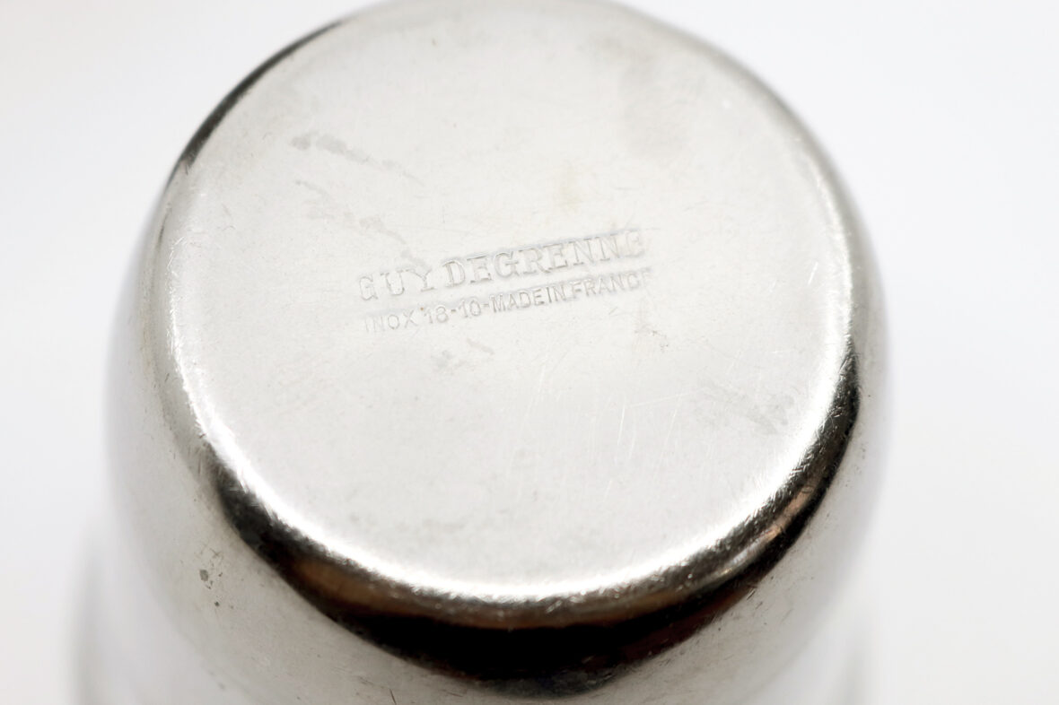 On y joint une timbale de forme tulipe en inox Guy Degrenne.